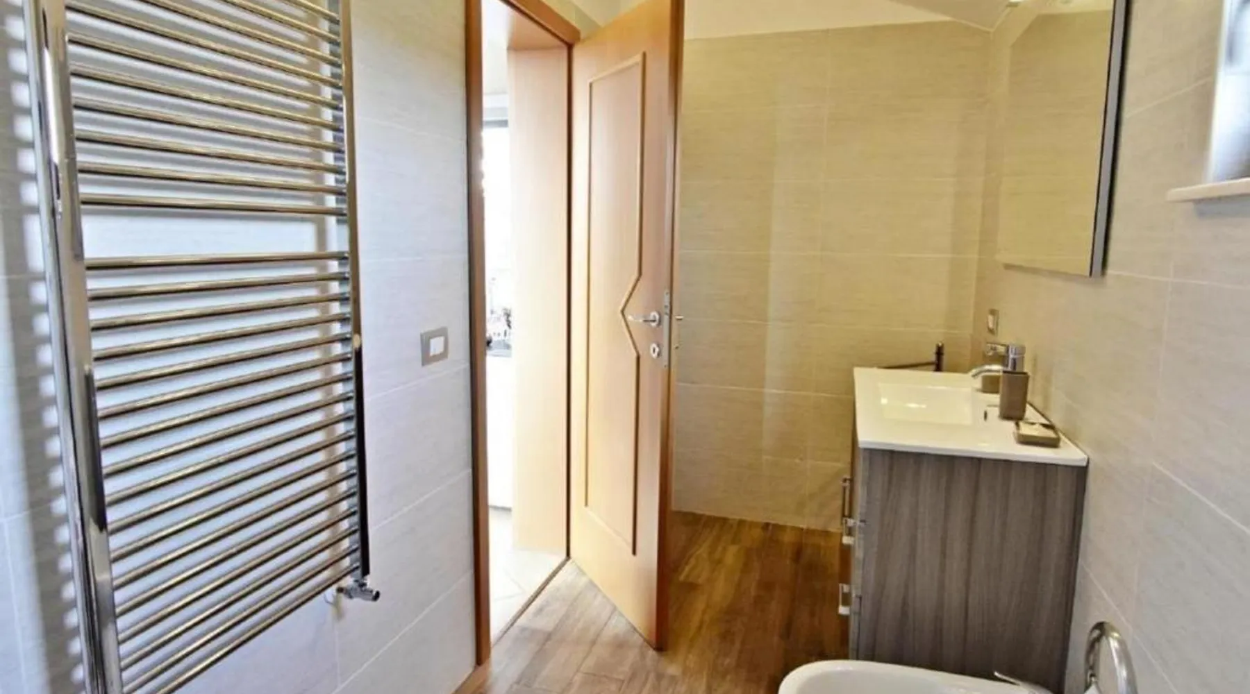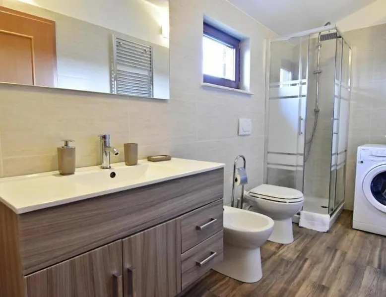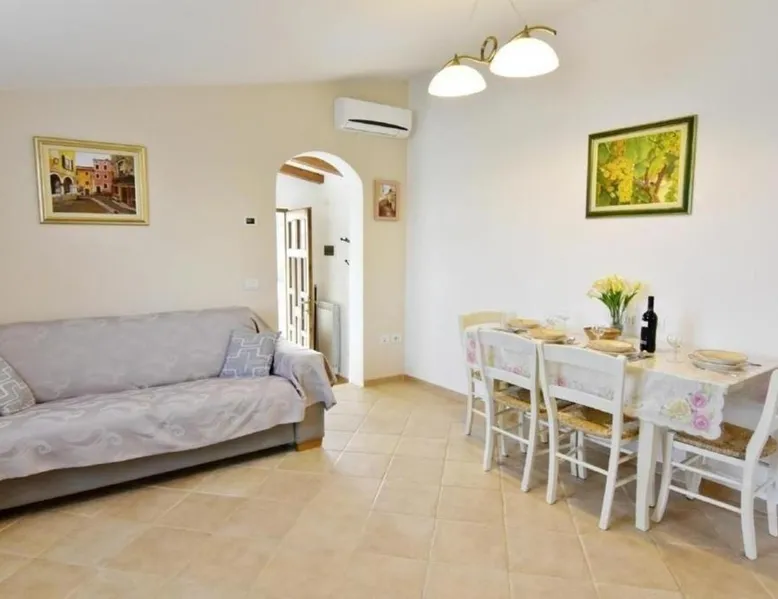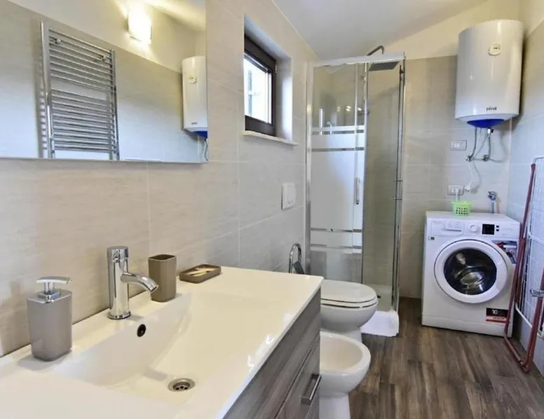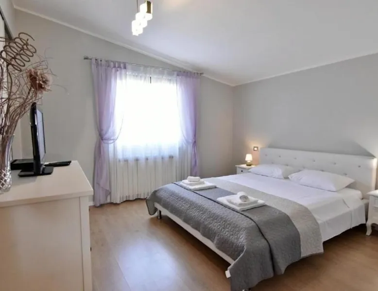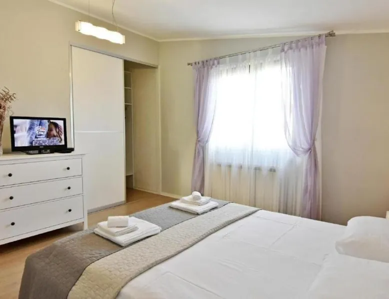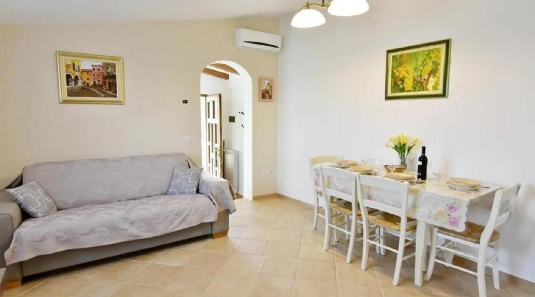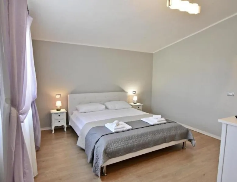Modern Comforts: Neue Wohnung in Valica mit Terrasse in Umag offers a terrace and free WiFi. The apartment includes air-conditioning, a kitchenette, and a private bathroom with a shower. Convenient Amenities: Guests can enjoy sea views, a coffee machine, refrigerator, electric kettle, and TV. Free on-site private parking is available. Local Attractions: Aquapark Istralandia is 11 mi away, San Giusto Castle 26 mi, Piazza Unità d'Italia and Trieste Port 27 mi, and Sečovlje Salina Nature Park 8.7 mi. The apartment's kitchenette, which features a refrigerator and an electric kettle, is available for cooking and storing food. This air-conditioned apartment includes a TV with satellite channels, a private bathroom as well as a terrace with sea views.