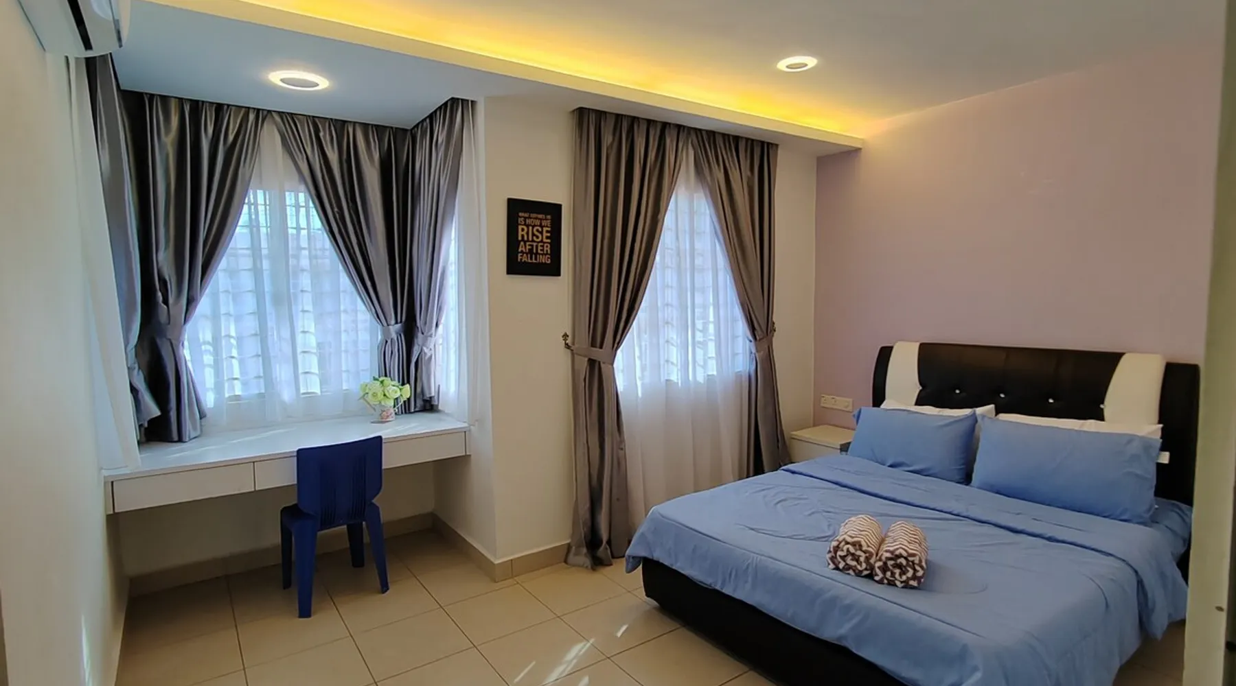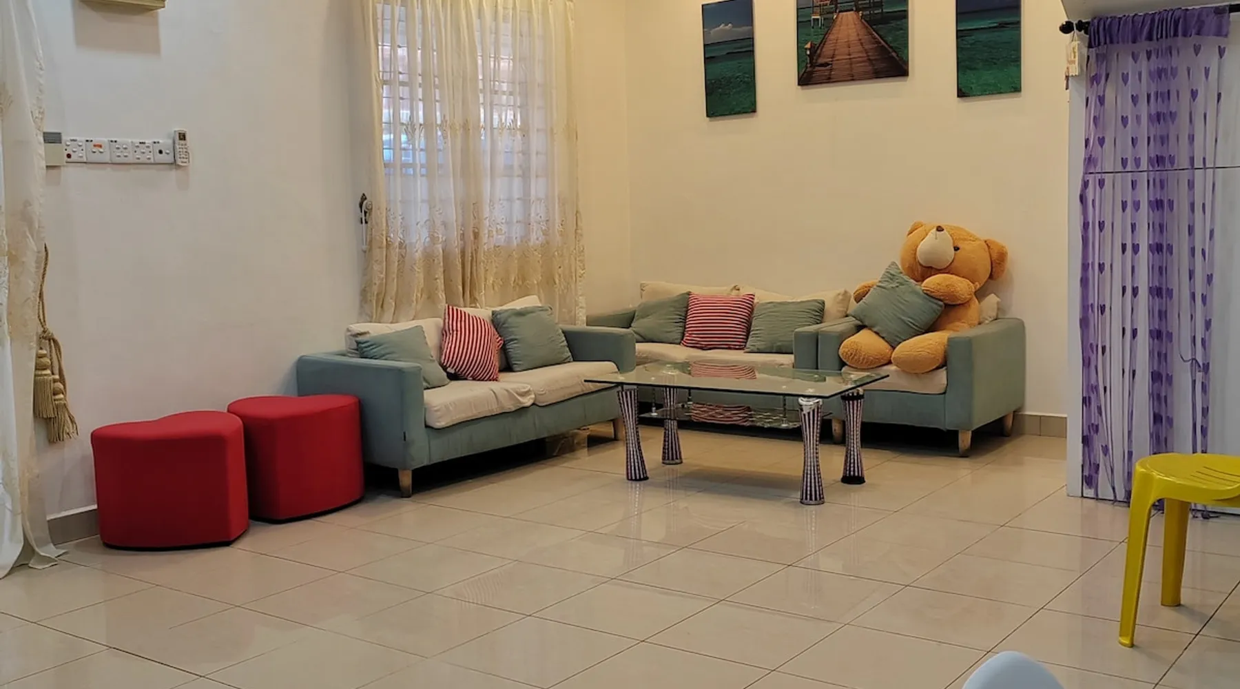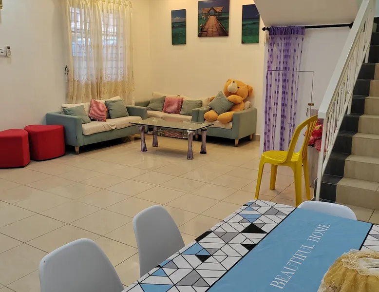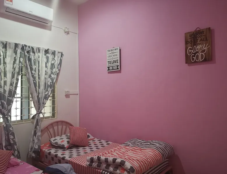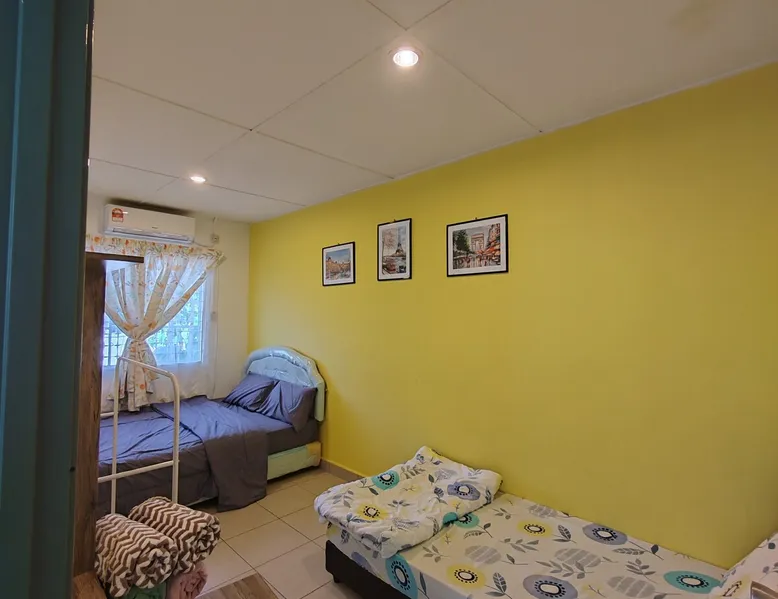 We are a new homestay, two-story villa house, if you need to book for marriage proposal, pick up and drop off bride, big family outing day, or just want a quiet place to study, think about life, you are welcome to contact us in advance, we will make the best arrangements to give you enough space to rest. We have 4 rooms, 3 toilets, 2 kitchens, 5 brand new air conditioners, enough for 9-12 people at the same time. Besides that, we provide brand new outdoor water filter, 2 bath water heaters, refrigerator, washing machine, clothes hanger, large water storage tank, iron, hair dryer, brand new kitchen utensils, children's tableware, etc., which you can use and feel like home. The space If you like the feeling of being surrounded by trees, get some fresh air, you can see a big forest from our doorstep.The air is fresh, comfortable and relaxing, so you can relax and get away from the hustle and bustle of the city. Small groups can take a walk, feel the eco-friendly forest park, open fitness equipment, children's playground, badminton court, and various sports and leisure facilities.Still wanting more?😁😁 Supermarkets, laundry, barbershops, long-distance bus stops, police stations, clinics, schools, fresh vegetable markets, food restaurants. Finally, if you like swimming, taking pictures, checking in, singing, etc., there is a paid golf course nearby. It's very beautiful. Prepare your swimsuit and play as much as you like. It's also a good choice. Guest access unifi's strongest unlimited internet network, live streaming the latest news, movies, TV shows, variety shows and so on can be seen in our homes.In addition, the whole house has air conditioning, including the living room. The room has a new smart toilet. Others include an automatic washing machine, a refrigerator, an electric stove, and a new hot water shower. It is free to use. The most important thing is to keep it well.😁😁 Other things to note If you have any special needs, such as arranging airport transfers, Semporna transfers, day trip packages, etc., you can book with us in advance.Then get off the plane and leave yourself to us. From accommodation, to eating, drinking and having fun, we can help you arrange it.