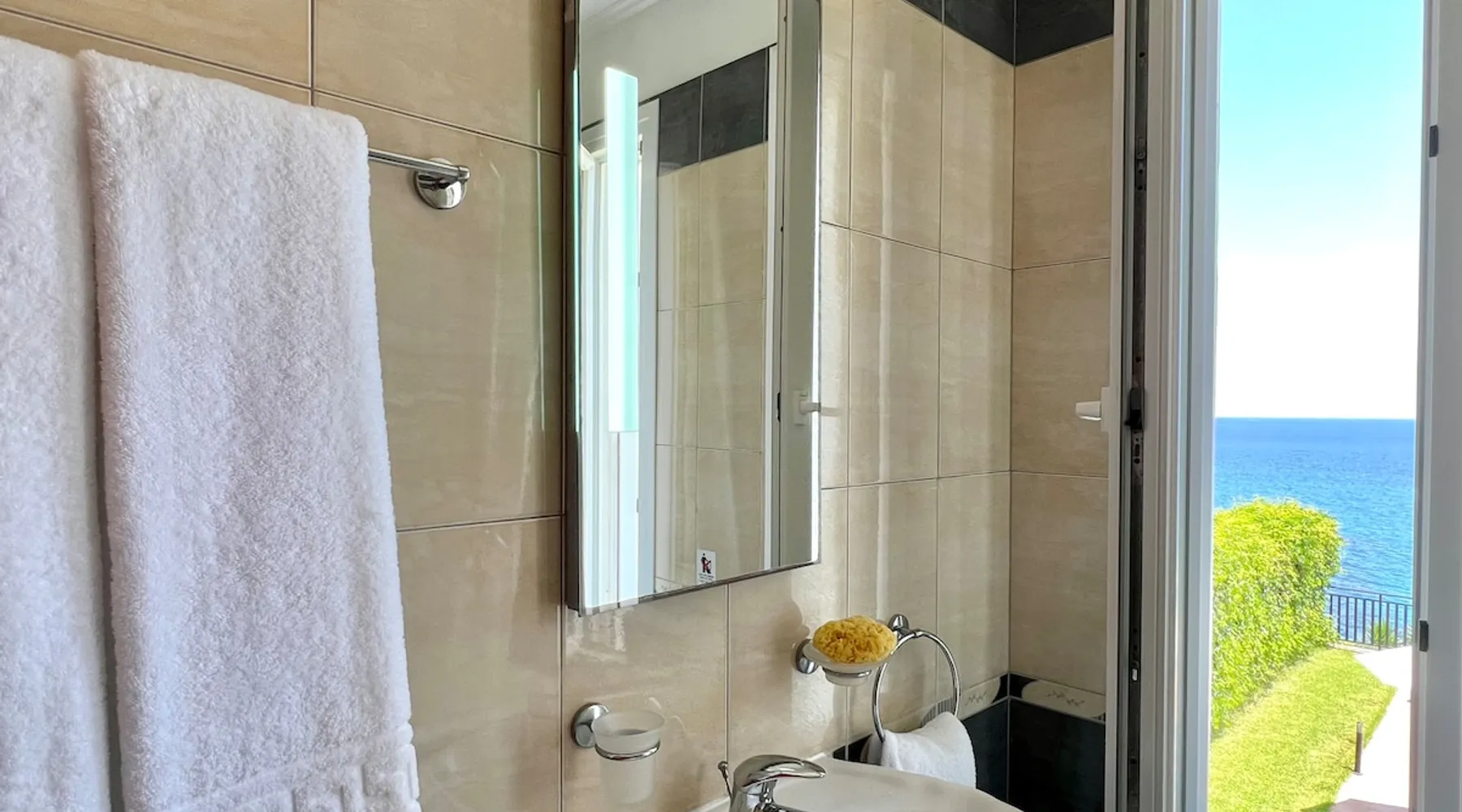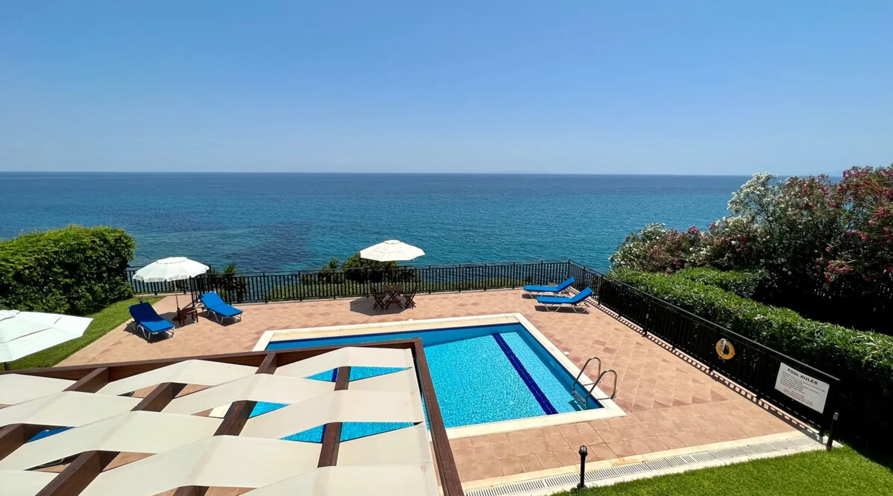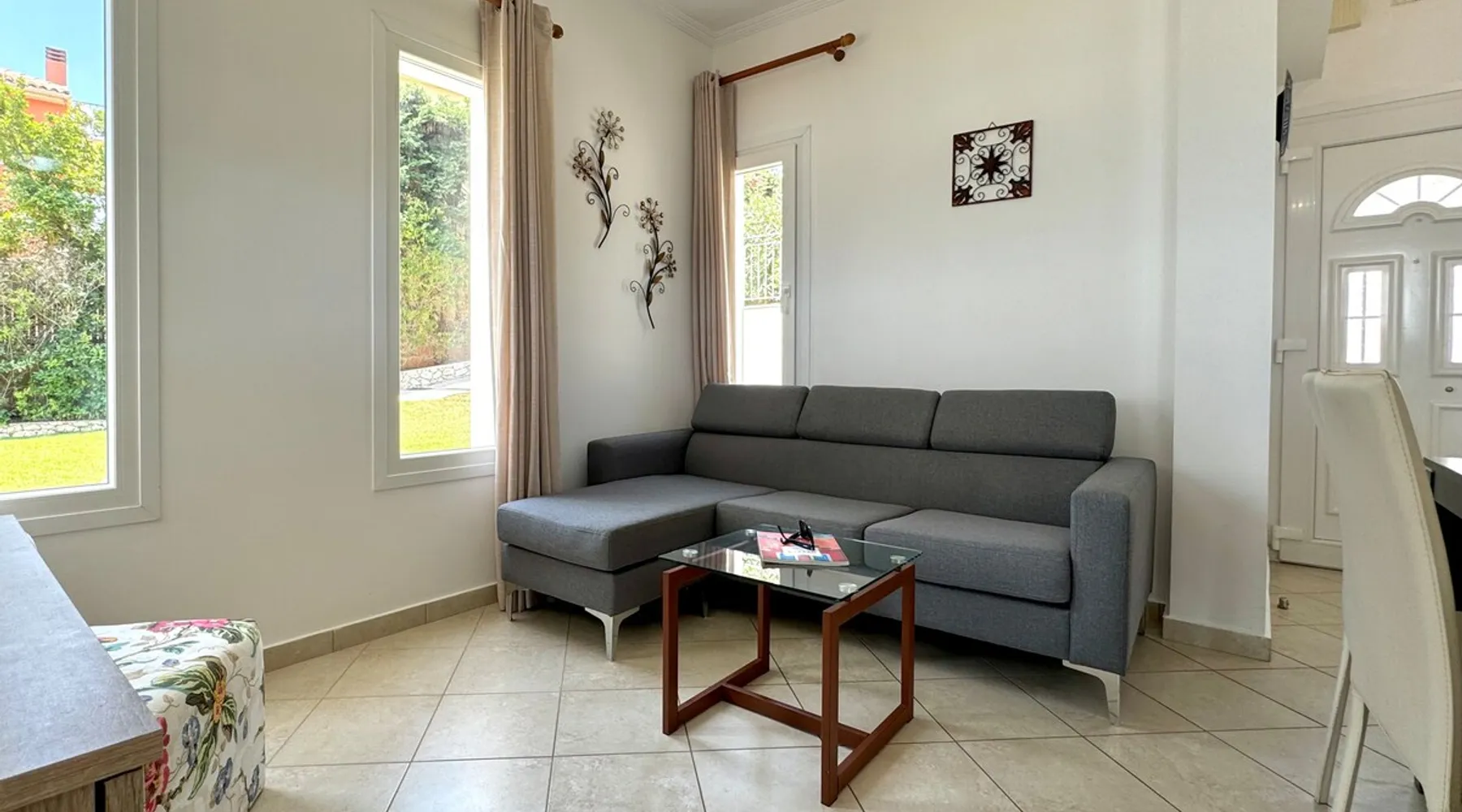 “Villa in Skala with jaw dropping sea views” Set on the rising coastline, overlooking the sea, where on clear days you can see right across to the mainland and watch ferries, sailing boats and pleasure yachts plying their way to and fro. Villa Sakos is beautifully finished and designed to be ideal for families or groups of up to three couples, each double bedded bedroom has either a bathroom or shower room en-suite. The space Villa Sakos, Skala , Kefalonia Location In a quiet area just out of town, it’s 1.2 kms along the coast from the laid back resort of Skala and a pleasant evening stroll can be followed by a returning short taxi ride back. If you’d rather not move even that far from the Villa (perfectly understandable), then within a 5 minute walk there is a lovely little undiscovered pebbly cove with beautiful clear water. There is also a choice between two excellent tavernas just a short walk away. Outside Villa Sakos Sea View Swimming Pool - 8m x 5m swimming pool. Depth 1m to 1.75m. Ladder entry Sea View Sun terrace - sunbeds, rattan sofa set, and parasols. Sea View Covered Dining terrace - pergola with table and chairs Garden - neat lawns and flowering shrubs Barbecue terrace - purpose built barbecue, table and chairs. 2 Sea View Balconies - both with wonderful sea views and table and chairs. Inside Villa Sakos Ground Floor - Open plan Living Area Kitchen area - run of fitted cupboards, dishwasher, electric oven and ceramic 4 ring hob, fridge freezer, sink. Sitting area - black leather sofa, two occasional chairs, plasma TV and DVD player, sea view window, door to covered terrace and garden. Air Con unit Dining area - table and chairs, sea view window. Double Bedroom - 1 double bed, fitted wardrobes, French doors to garden terrace with table and chairs, sea view window. Shower room - Walk in shower, hand basin, WC and washing machine. Air Con Unit. First Floor Double Bedroom with en suite bath room - 1 double bed, fitted wardrobes, French doors to sea view balcony with table and chairs. En suite bath with shower attachment, hand basin, WC. Air Con Unit. Double Bedroom with en suite bath room - 1 double bed, fitted wardrobes, sofa bed, French doors to sea view balcony with table and chairs. En suite bath with shower over, hand basin, WC. Air Con Unit. Parking is in a parking bay above the Villa, with several steps down to the entrance. Essential Information Sleeps (Max) 6 Bedrooms 3 Shower Rooms 3 Maid Service Included Pool Private 8x5 A/C Included Floor Area m²120 Booking Information Check-In Any day (after 16:00) Check-Out Any day (before 10:00) Minimum stay 5 nights Villa Equipment DVD Satellite TV Dish Washer Washing Machine Hair Dryer Toaster Kettle Sun Lounger Microwave WiFi Connection Fan BBQ Filter Coffee Machine Iron & Board Pool Towels Fridge Freezer Hob Cooking Utensils Oven Guest access The villa and pool is for your private use only as well as the garden. Bed linen & towels are provided as well as pool towels. The cleaner will come in during your stay & change them, depending on how many days you are staying. All of this is included in the price. Other things to note Housekeeping Your Villa will be prepared for you on arrival with fresh bath and hand towels and all beds made up. For stays of 7 nights or more - house towels will be changed every 3 - 4 days. For stays of 14 nights or more - bed linen will be changed every 7 days. Pool/beach towels - one per person for the duration of your stay. If you need a travel cot or a high chair (usually for children up to 2 years old), please request when booking so we can have it in the villa for you ready. Optional chargeable services: - Second High Chair - Second Cot Note that this is a professionally run rental villa which has been licensed by the Greek National Tourist Organization (EOT), which is required by the Greek law. This license allows the property owners to legally rent their accommodation to holiday makers, so that they comply to a set of standards and specific conditions for the safety & comfort of its paying customers. Registration Details 0458K91000360601