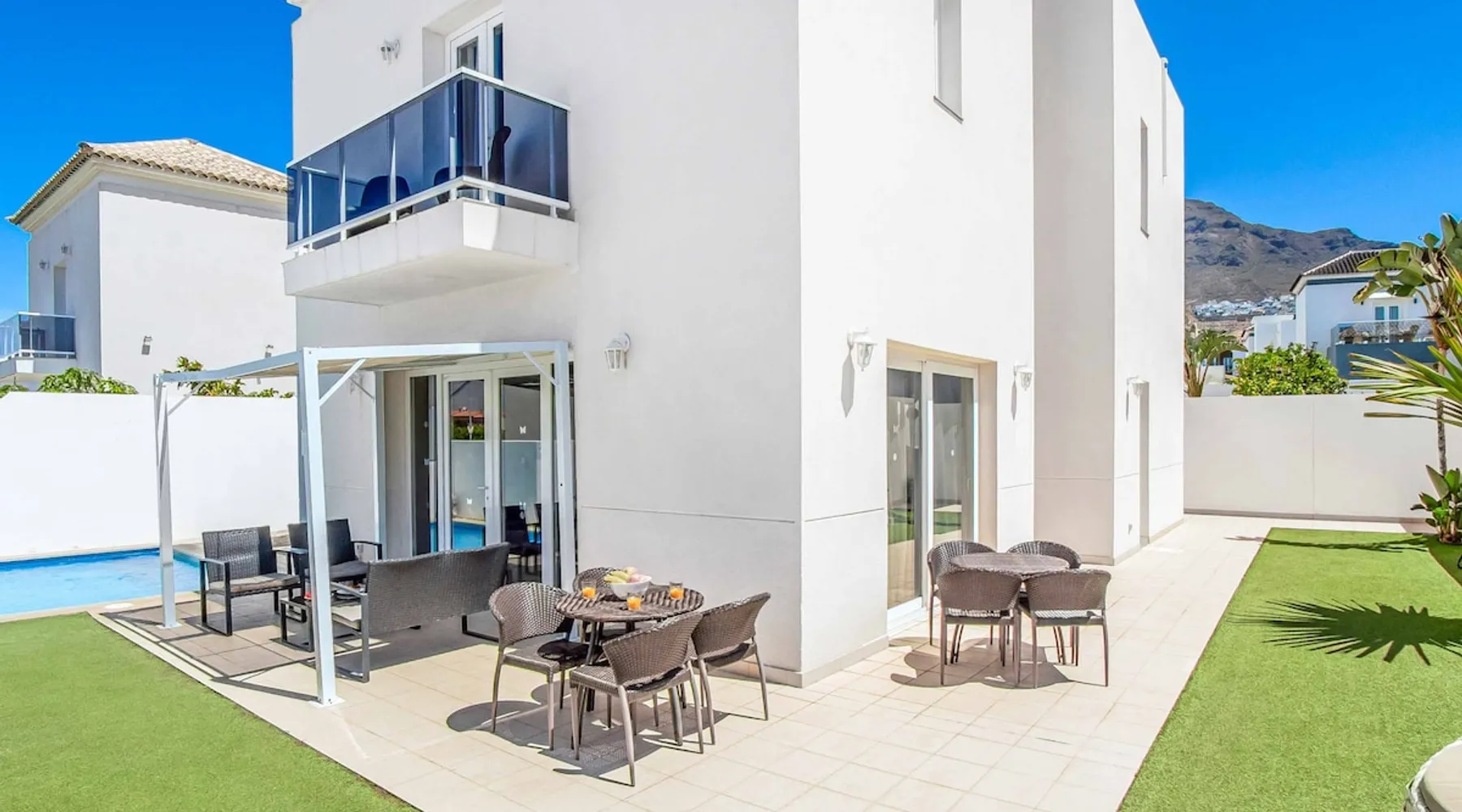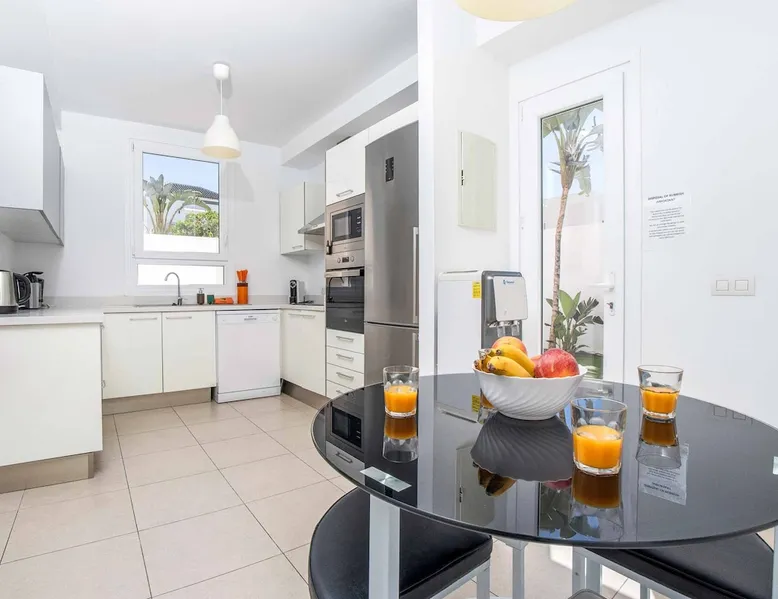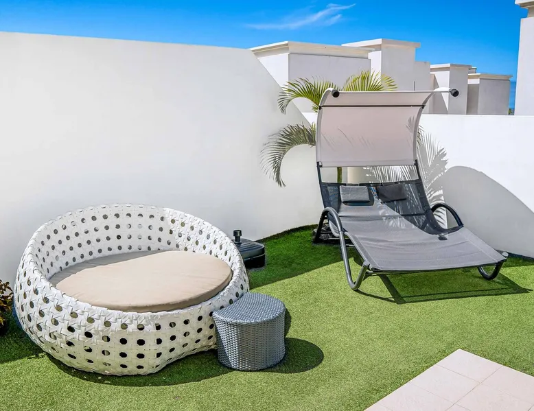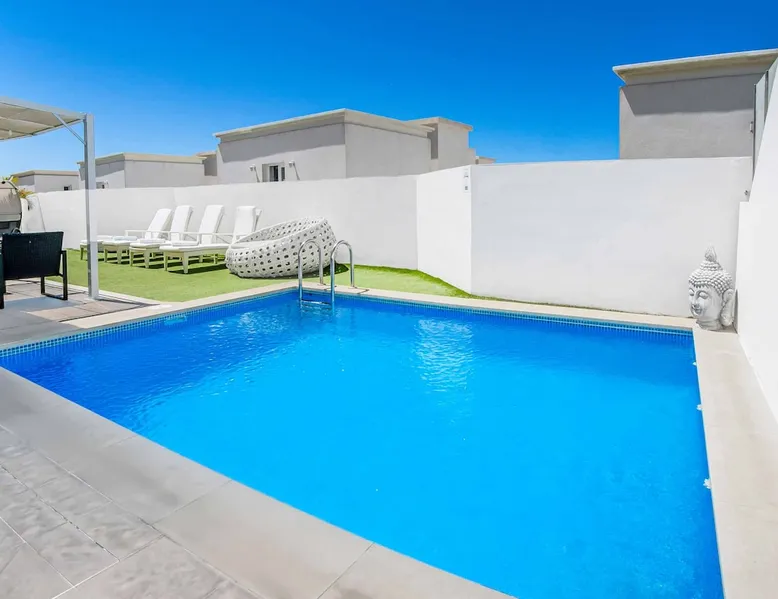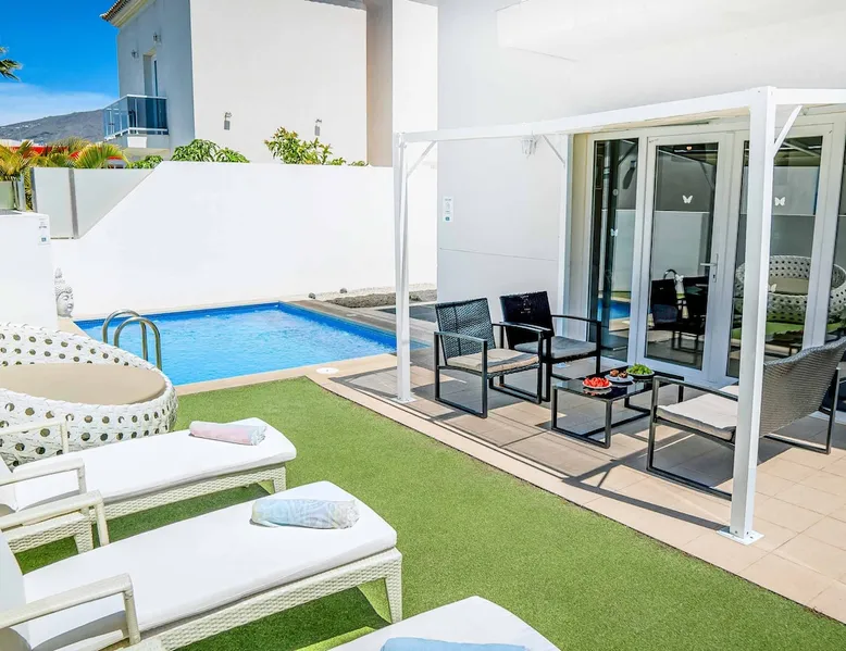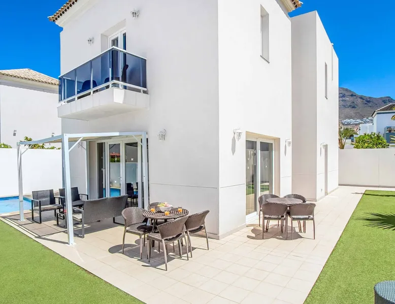 Villa Acacia is one of four exclusive villas for Solmar Villas located in the popular area of Fanabe in Costa Adeje. Set in a gated community, this detached whitewashed villa is designed over three levels and is ideal for those not wanting to drive whilst on holiday. On the ground floor, there's a modern fully equipped kitchen and a spacious lounge with comfortable seating and dining facilities. The space The first floor consists of a double bedroom and a twin bedroom that share a shower room and the master bedroom with an ensuite bathroom. Stairs lead down from the ground floor to the lower ground floor where there is another double bedroom with air-conditioning and a separate utility area. The lounge and all bedrooms have air-conditioning for your comfort and WiFi is also included. From this level you can access your underground garage for those with a hire car. Patio doors from the lounge lead out to your outdoor living area with private swimming pool which has electric heating* and sun loungers with comfortable mattresses. An open terrace with dining table is positioned near a BBQ for lazy days dining alfresco with family and friends. A large supermarket can be found a short walk away at the nearby shopping centre and Fanabe beach with a wide range of restaurants can be reached within 15 minutes’ walk from the villa. Please note, an internal staircase leads to the garage on the lower ground floor. Access to the bedroom, shower room and utility is off the garage. Accessibility - To access the villa there is a path which is 97cm wide and one step. The front door has a width of 100cm. The width of the door leading to the pool terrace is 83cm wide, whilst the terrace and pool are open plan, with tiles and artificial grass. The pool itself has ladder access. Inside, there are no bedrooms on the ground floor. There are 17 steps to the first floor, where all bedrooms and bathrooms have a door width of 60cm. The steps leading to the first floor are steep and turn at sharp right angles. The door into the kitchen/dining area is 70cm wide, whilst the door to the lounge is 110cm wide. *Please note that although every effort has been made to ensure the information provided is accurate, errors can occur and if you need to find out more specific information about the villa, please do not hesitate to contact us. Registration Details Canary Islands - Regional registration number VV-38-4-0097331