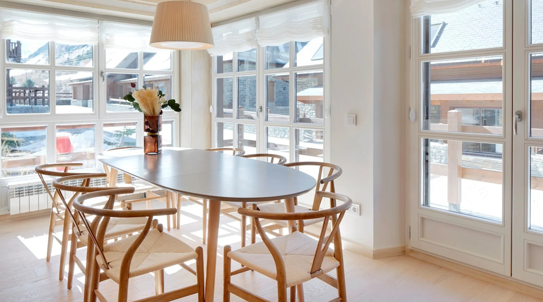 The apartment Val de Ruda Luxe 53 is located in the exclusive private complex known as "Urbanization Ruda", located at the foot of slopes at the 1,500 Baqueira. The access to the ski slopes is unbeatable. From the apartment you can go down to the garage where the ski-guard is located (heated) and from here another elevator leads directly to the exit of the new gondola lift. The space Val de Ruda Luxe 53 is the ideal accommodation for a large family or group of friends looking for comfort and location unbeatable situation. It offers a spacious living / dining room with kitchenette, three beautiful bedrooms and two modern fully equipped bathrooms. Upon entering the apartment we find ourselves in the large day area. To the right is the living room with a nice sofa in L. Next to the windows and the direct exit to the balcony, there is a large oval dining table and next to it the modern American kitchen, perfectly equipped with high quality appliances, kitchen utensils and a practical breakfast bar. The main bedroom of Val de Ruda Luxe 53 has a large double bed and a built-in bathroom with shower. The other two bedrooms have two single beds and a bunk bed. These two bedrooms share the second bathroom of the accommodation equipped with bathtub. The accommodation also offers wireless internet, as well as parking space and ski storage, all included in the rental price. You will find other FeelFree managed apartments in the best valley locations, where you will be able to enjoy winter sports in the Baqueira Beret ski resort, such as skiing or hiking and also trekking throughout the beautiful Aran Valley. Other things to note To access your apartment, it is mandatory to complete the online check-in with the details of all travelers over 14 years old and provide a credit card to the host. Registration Details Catalonia - Regional registration number HUTVA-000804