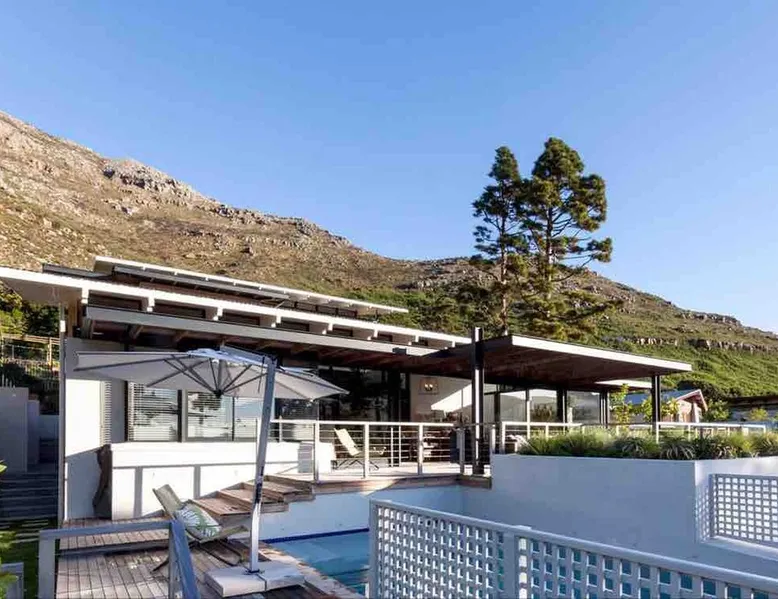 Slow down your mind, modern generous architecture, fantastic sunsets, solar system Welcome to our modern, spacious house. The house is situated in a small security estate in Hout Bay with a fantastic location and views over the bay of Hout Bay. Enjoy the sun from different terraces until evening. The sunsets with a glass of wine will especially delight you. The courtyard offers a cozy get-together at the large dining table even in windy weather. The space Our fantastic house is flooded with light with floor-to-ceiling windows and an open living area. The amenities are high quality and modern with a spacious, open kitchen with kitchen island, Nespresso machine, Smeg appliances and separate utility room with dishwasher, washing machine and dryer, as well as spacious storage cabinets. The dining area is equipped with a large real wood table (2.80 x 1.20) and can accommodate at least 8 people. In front of our fireplace are sofas and comfortable armchairs for relaxing and reading. Our wind-protected patio (courtyard) invites you to meet with friends. On our inviting terrace with spectacular sunsets, there is extremely comfortable, high-quality lounge furniture made of teak wood. Let your gaze wander over the bay of Hout Bay, preferably with a glass of South African wine or a braai (Weber gas grill available). At the pool, you can enjoy the sun and relax.(Umbrella and sun loungers are available). The completely newly furnished bedrooms with high-quality box spring beds invite you to dream. The master bedroom offers a fantastic sea view, a dressing area and a private spacious bathroom. The other bedrooms are around the patio, some with private bathrooms. A guest toilet is available. For family TV evenings, a separate TV room with 55-inch TV (DSTV) is available. Free Wi-Fi (fiber optic connection) is available in the entire house. You can park your car comfortably in our double garage, from there you have direct access to the house. Our house manager Claudia will support you in all matters and personally welcome you at check-in. She is always available as a contact person on site. The house, at the end of a cul-de-sac, is located in a closed estate with 24-hour security, so it is absolutely safe. In addition, the house has an additional independent alarm system. Our house is equipped with air conditioning, which can also be used for heating in winter. In addition, a fireplace is available in the living room. Wood is included in the price. The estate is located in a nature reserve with hiking trails. Cape Town is a stone's throw away. Our house has an independent water supply. Guest access We rent the entire house, so guests have access to all the facilities of the house. Other things to note The house has its own water supply.