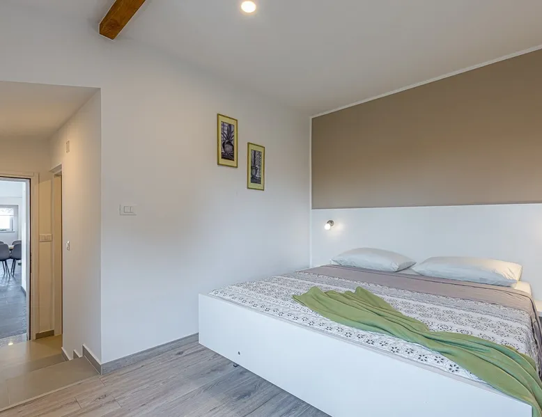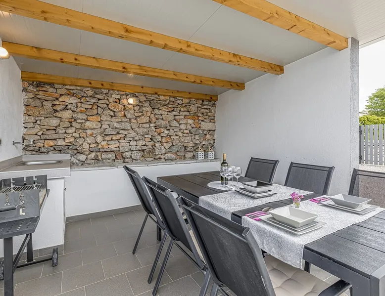 Traditional Holiday Home for up to 6 persons, with a private garden and a pool The space Charming Holiday House Prenc is located in central Istria, near the town of Sveti Petar u Šumi. It can accommodate up to six persons. The house has been renovated in 2016 so it's a combination of traditional rustical and modern elements. It consists of two double bed bedrooms and two bathrooms with a shower. In the main living area you can find a nice, comfortable and air conditioned living room with a sofa bed for 2 people, a fireplace and a fully equipped kitchen with kitchen utensils and modern appliances. Between, the kitchen and the living room, there's a dining area. The house has an open outdoor kitchen with a BBQ grill and a large wooden table with seating. Outside is a private pool, with beach chairs which are surrounded by a wonderful green garden with flowers. Come to Holiday House Prenc and spend a unforgettable Summer vacation. Private parking is at your disposal. Additional free offerings: Ironing board, Cable/Satellite TV, Gas, Fan / extractor, Roofed Patio/deck/Terrace, Shower, Children are welcomed, Smoking allowed outside, Private Garden, Other Entertainment , Table tennis , Bathroom, Toilet, Bed, Bedroom, Property, Living room, Seating area, Dining area, Living area, Electricity, Water, Wood for fireplace