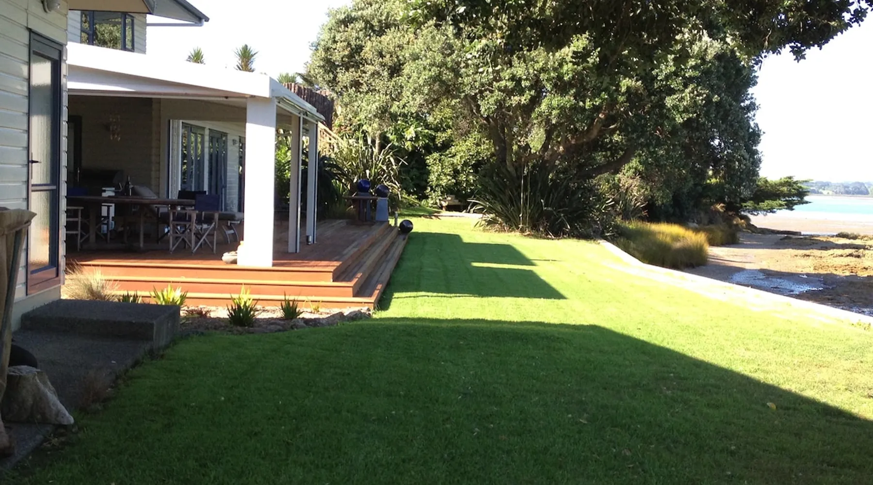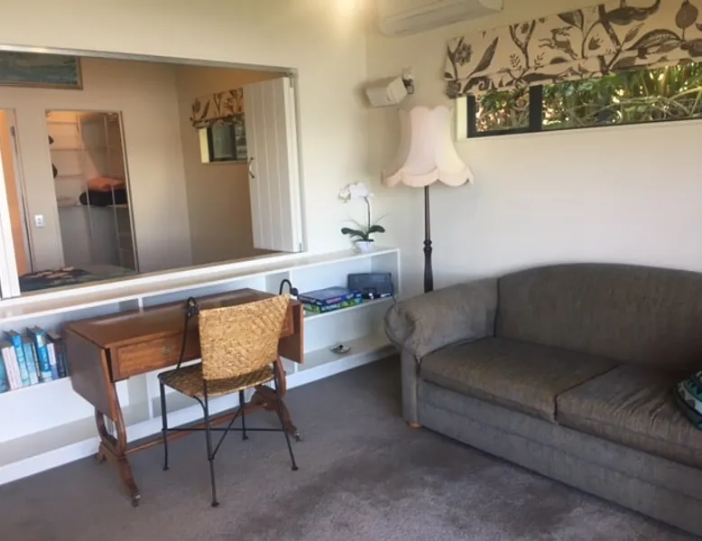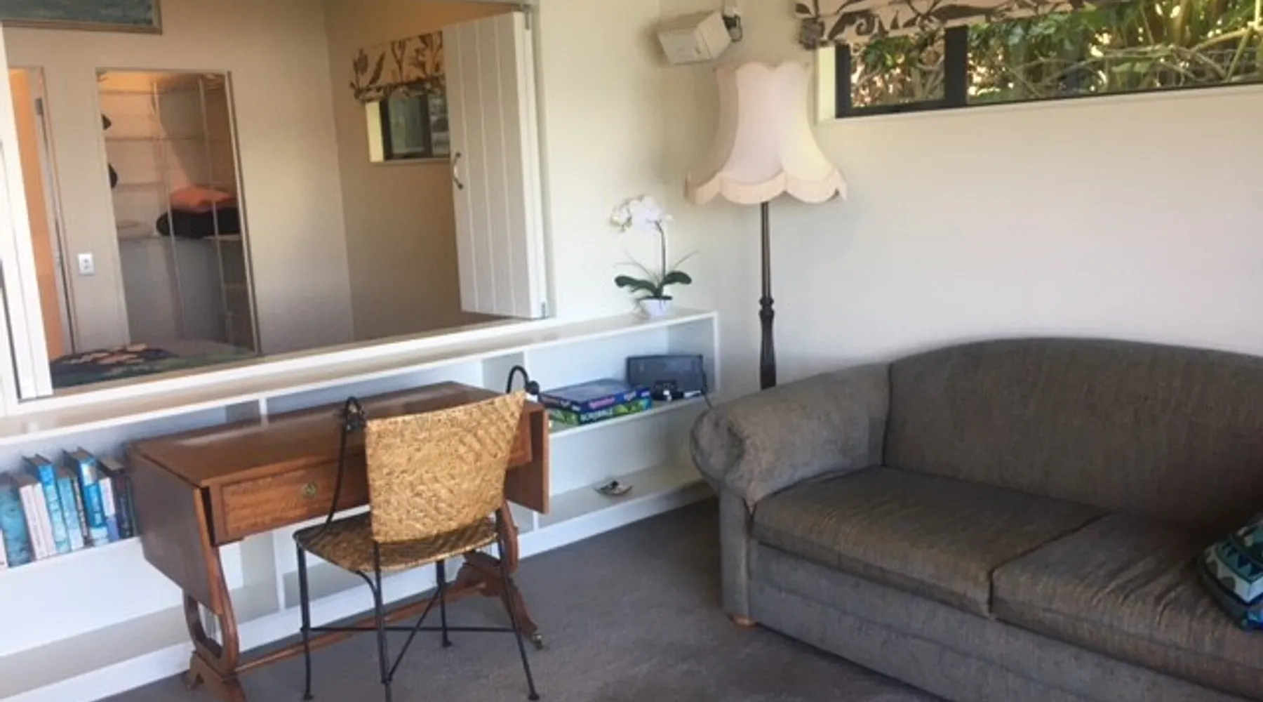This spacious and immaculate self-contained 1-bed apartment with private access is right on the waterfront of Waiau Beach, minutes from popular Clarks Beach and only an hour from Auckland. You have a full kitchen and separate lounge which contains a sofa bed. A cot is available. On-site parking and your own separate access. If you're a bigger group, also book my other apartment and I can open the connecting door. That will give you beds for up to six people. The space Minutes from the city; miles from anywhere! You'll love dining on the deck and watching the birds, boats and fabulous sunsets. If you don't feel like cooking, there are several local Clarks Beach dining options, and Pukekohe, Waiuku and Papakura are all less than 30 minutes away with other extensive dining options. Guest access You need your own transport in this district. Usually off-street parking for one vehicle, in front of my garage. (It's a very quiet location at the end of a cul-de-sac and cars are as safe here as anywhere!) Other things to note Not wheelchair suitable, but if a person has some mobility issues but can walk, they will be able to access the bathroom, which has a full shower. I do have a stool for the shower if required.