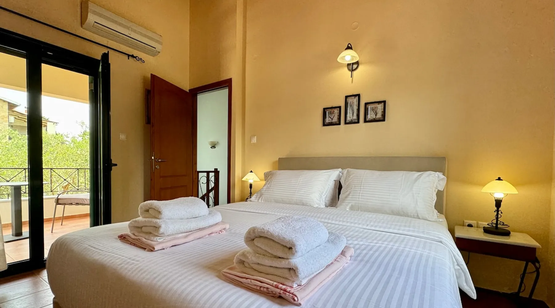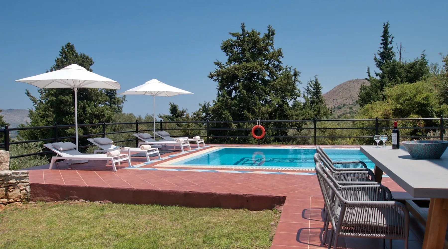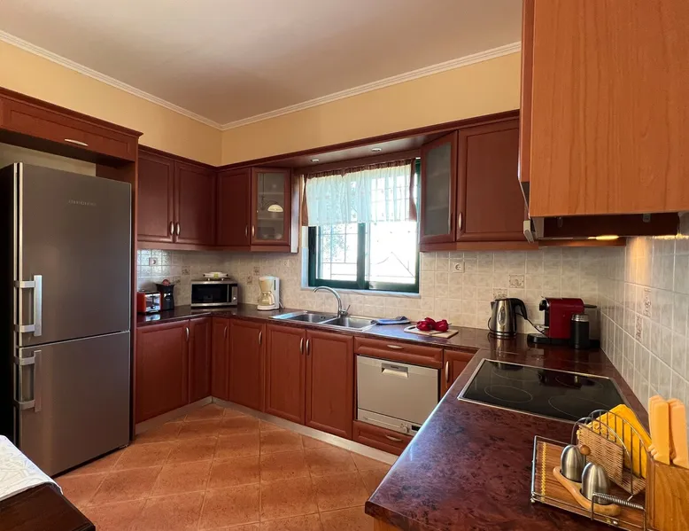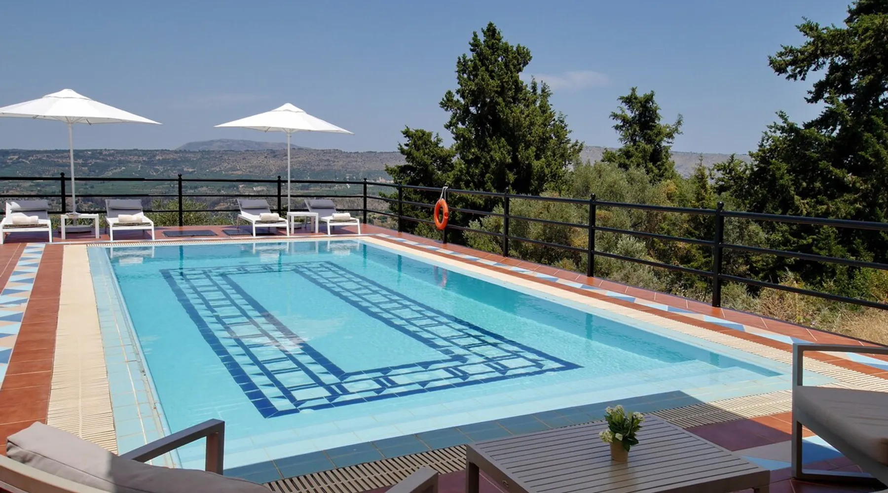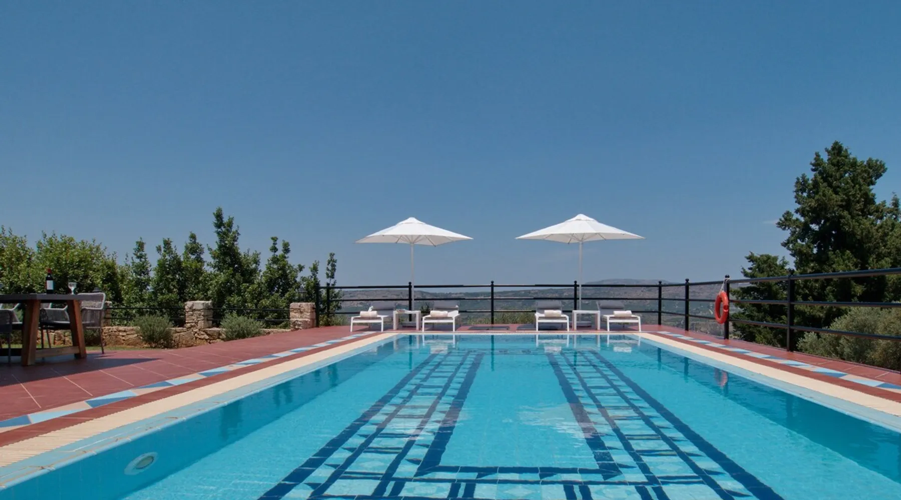 "Stunning, spacious villa with fantastic views & easy reach of the beach" The space Villa Artemis, Vrisses, Crete Built on three levels, Villa Artemis provides ideal accommodation for larger families with a generous living area and air conditioning in all five bedrooms. Each of the first floor bedrooms has its own balcony, providing a little privacy along with the stunning views. Sitting on a terraced hillside in a remarkably peaceful setting, near the tiny village of Maza, Villa Artemis enjoys superb, panoramic views over green and verdant olive groves and rolling wooded countryside to the distant vivid blue sea. Location Vrisses, just 3kms away has a good choice of minimarkets, a renowned baker, and tempting Greek pastry shop as well as a choice of tavernas where you can dine beside the little gushing stream which runs down the leafy valley. In the tiny village of Maza just 1.3km down the hill, Costas Taverna has become quite an institution in Crete and is very well reviewed on tripadvisor and a long term favourite with guests staying in Villa Artemis. The pretty small resort of Georgioupolis with its wonderful long sandy beach and a huge selection of tavernas is approximately 15 mins drive. Outside Villa Artemis Swimming pool - 9m x 4m swimming pool with roman step entry, 0.60cm then sloping down to depth of 1.80m. Sunbathing terrace - sunbeds, rattan sofa set, shower. Garden - Lawn area, terraces of olive trees with steps to front entrance and terraced flower beds with sloped access to pool area and rear entrance. Covered Dining Terrace - table and chairs. Barbecue House - BBQ, sink with tap, table and chairs. 3 first floor balconies - each first floor bedroom has a balcony furnished with chairs and table. Inside Villa Artemis Open Plan Ground floor Living area Sitting area – Two comfy sofas and easy chairs, plasma TV with satellite, DVD player, french doors opening to the covered dining terrace and garden. Air Con Unit. Dining Area - Wooden table and seating for six, Cretan sofa, entrance door to terraced garden. Kitchen Area - Wooden fitted cupboards, double sink, electric oven with ceramic hob, microwave, dishwasher and fridge freezer. Window above the sink to the garden. Single bedroom 1 - Single bed, fitted wardrobes, high windows to side. Air con unit. Shower room 1 - Walk-in shower, hand basin and WC. First Floor Double bedroom - 1 double bed, fitted wardrobe, double doors to balcony with table and chairs and views of pool and down the valley to the sea. Air con unit. Twin bedroom – 2 single beds, fitted wardrobes and double doors to a balcony with table and chairs and views of the pool and down the valley to the sea. Air con Unit. Double bedroom - 1 double bed, fitted wardrobe and double doors to balcony with table and chairs and views over the olive terracing, window to the view down the valley to the sea. Air con Unit. Family bathroom - Bath with shower over, hand basin, WC and washing machine. Second Floor Double bedroom - in the eaves of the Villa, with curtained doorway, low level double bed, easy chair, low level circular windows down the valley to the sea. Air con unit. Parking - There is ample parking space next to the Villa off the lane. Welcome Pack - on arrival you will find a few drinks and snacks to begin your holiday. Wifi access - free of charge. Essential Information: Sleeps (Max) 9 Bedrooms 5 Shower Rooms 2 Maid Service Included Pool Private 9m x 4m A/CIncluded Floor Area m² 150 Booking Information: Check-In Any day (after 16:00) Check-Out Any day (before 10:00) Minimum stay 5 nights Local Facilities: Beach 8 km Tavernas 3 km Mini Market 3 km Distances: Chania Airport 45 km Heraklion Airport 112 km Villa Equipment: DVD TV Satellite TV Dish Washer Washing Machine Hair Dryer Toaster Kettle Sun Lounger Microwave WiFi Connection Safe Fan BBQ Filter Coffee Machine Iron & Board Pool Towels Fridge Freezer Hob Cooking Utensils Guest access The whole villa and pool is for your private use only, as well as the garden. Bed linen & towels are provided as well as pool towels. The cleaner will come in during your stay & change them, depending on how many days you are staying. All of this is included in the price. Other things to note Housekeeping Your Villa will be prepared for you on arrival with fresh bath and hand towels and all beds made up. For stays of 7 nights or more - house towels will be changed every 3 - 4 days. For stays of 14 nights or more - bed linen will be changed every 7 days. Pool/beach towels - one per person for the duration of your stay. If you need a baby cot or high chair, please request when booking so we can have it in the villa for you ready. Optional chargeable services: - Second High Chair - Second Cot Note that this is a professionally run rental villa which as been licensed by the Greek National Tourist Organization, EOT, which is required by the Greek law. This license allows the property owners to legally rent their accommodation to holiday makers, so that they comply to a set of standards and specific conditions for the safety & comfort of it's paying customers. Registration Details 1237306
