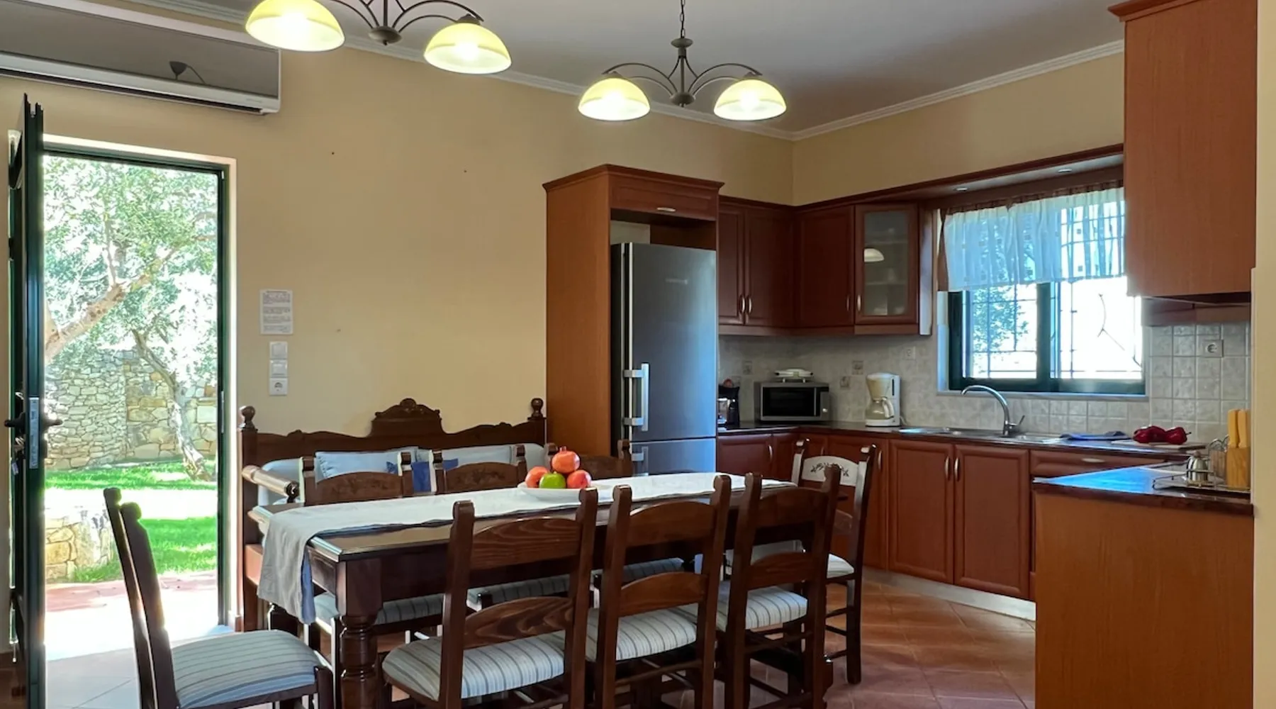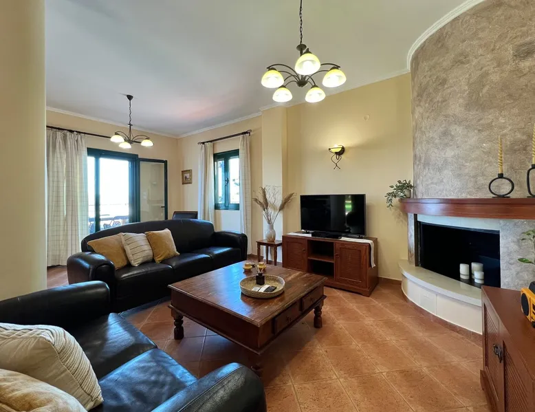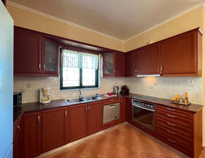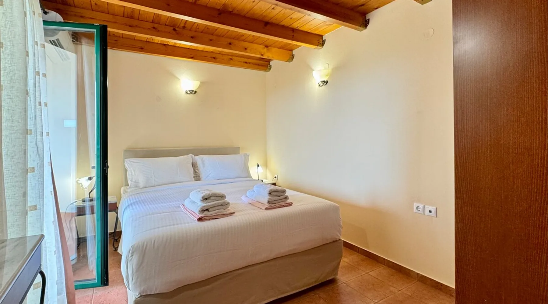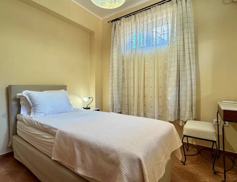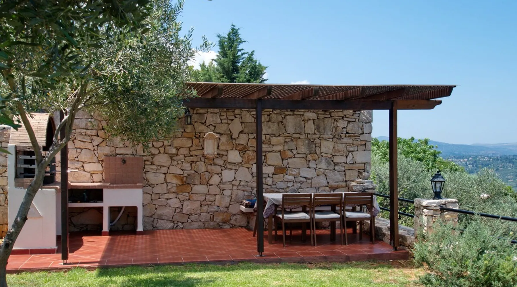 "Stunning, spacious villa with fantastic views & easy reach of the beach" The space Villa Artemis, Vrisses, Crete Built on three levels, Villa Artemis provides ideal accommodation for larger families with a generous living area and air conditioning in all five bedrooms. Each of the first floor bedrooms has its own balcony, providing a little privacy along with the stunning views. Sitting on a terraced hillside in a remarkably peaceful setting, near the tiny village of Maza, Villa Artemis enjoys superb, panoramic views over green and verdant olive groves and rolling wooded countryside to the distant vivid blue sea. Location Vrisses, just 3kms away has a good choice of minimarkets, a renowned baker, and tempting Greek pastry shop as well as a choice of tavernas where you can dine beside the little gushing stream which runs down the leafy valley. In the tiny village of Maza just 1.3km down the hill, Costas Taverna has become quite an institution in Crete and is very well reviewed on tripadvisor and a long term favourite with guests staying in Villa Artemis. The pretty small resort of Georgioupolis with its wonderful long sandy beach and a huge selection of tavernas is approximately 15 mins drive. Outside Villa Artemis Swimming pool - 9m x 4m swimming pool with roman step entry, 0.60cm then sloping down to depth of 1.80m. Sunbathing terrace - sunbeds, rattan sofa set, shower. Garden - Lawn area, terraces of olive trees with steps to front entrance and terraced flower beds with sloped access to pool area and rear entrance. Covered Dining Terrace - table and chairs. Barbecue House - BBQ, sink with tap, table and chairs. 3 first floor balconies - each first floor bedroom has a balcony furnished with chairs and table. Inside Villa Artemis Open Plan Ground floor Living area Sitting area – Two comfy sofas and easy chairs, plasma TV with satellite, DVD player, french doors opening to the covered dining terrace and garden. Air Con Unit. Dining Area - Wooden table and seating for six, Cretan sofa, entrance door to terraced garden. Kitchen Area - Wooden fitted cupboards, double sink, electric oven with ceramic hob, microwave, dishwasher and fridge freezer. Window above the sink to the garden. Single bedroom 1 - Single bed, fitted wardrobes, high windows to side. Air con unit. Shower room 1 - Walk-in shower, hand basin and WC. First Floor Double bedroom - 1 double bed, fitted wardrobe, double doors to balcony with table and chairs and views of pool and down the valley to the sea. Air con unit. Twin bedroom – 2 single beds, fitted wardrobes and double doors to a balcony with table and chairs and views of the pool and down the valley to the sea. Air con Unit. Double bedroom - 1 double bed, fitted wardrobe and double doors to balcony with table and chairs and views over the olive terracing, window to the view down the valley to the sea. Air con Unit. Family bathroom - Bath with shower over, hand basin, WC and washing machine. Second Floor Double bedroom - in the eaves of the Villa, with curtained doorway, low level double bed, easy chair, low level circular windows down the valley to the sea. Air con unit. Parking - There is ample parking space next to the Villa off the lane. Welcome Pack - on arrival you will find a few drinks and snacks to begin your holiday. Wifi access - free of charge. Essential Information: Sleeps (Max) 9 Bedrooms 5 Shower Rooms 2 Maid Service Included Pool Private 9m x 4m A/CIncluded Floor Area m² 150 Booking Information: Check-In Any day (after 16:00) Check-Out Any day (before 10:00) Minimum stay 5 nights Local Facilities: Beach 8 km Tavernas 3 km Mini Market 3 km Distances: Chania Airport 45 km Heraklion Airport 112 km Villa Equipment: DVD TV Satellite TV Dish Washer Washing Machine Hair Dryer Toaster Kettle Sun Lounger Microwave WiFi Connection Safe Fan BBQ Filter Coffee Machine Iron & Board Pool Towels Fridge Freezer Hob Cooking Utensils Guest access The whole villa and pool is for your private use only, as well as the garden. Bed linen & towels are provided as well as pool towels. The cleaner will come in during your stay & change them, depending on how many days you are staying. All of this is included in the price. Other things to note Housekeeping Your Villa will be prepared for you on arrival with fresh bath and hand towels and all beds made up. For stays of 7 nights or more - house towels will be changed every 3 - 4 days. For stays of 14 nights or more - bed linen will be changed every 7 days. Pool/beach towels - one per person for the duration of your stay. If you need a baby cot or high chair, please request when booking so we can have it in the villa for you ready. Optional chargeable services: - Second High Chair - Second Cot Note that this is a professionally run rental villa which as been licensed by the Greek National Tourist Organization, EOT, which is required by the Greek law. This license allows the property owners to legally rent their accommodation to holiday makers, so that they comply to a set of standards and specific conditions for the safety & comfort of it's paying customers. Registration Details 1237306