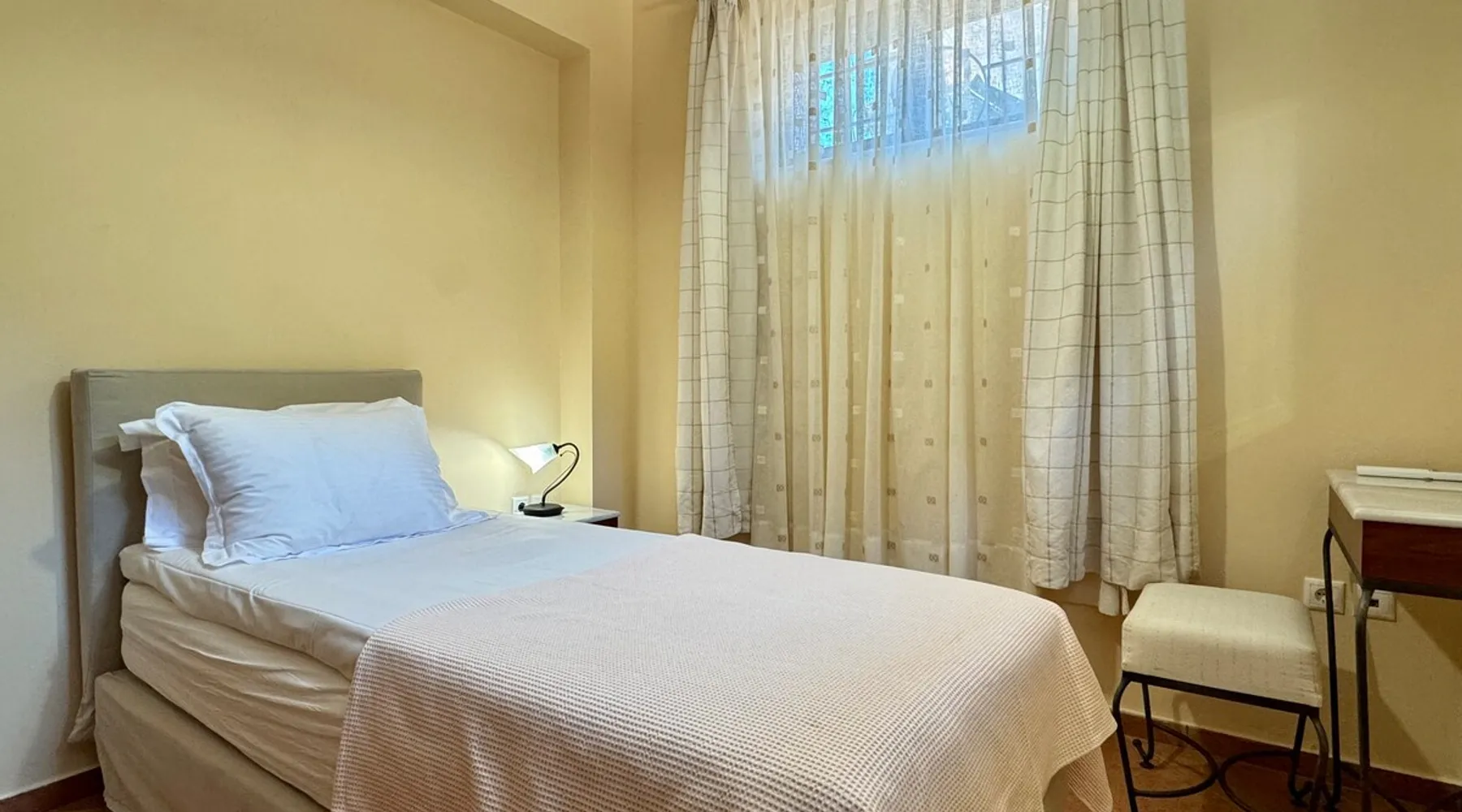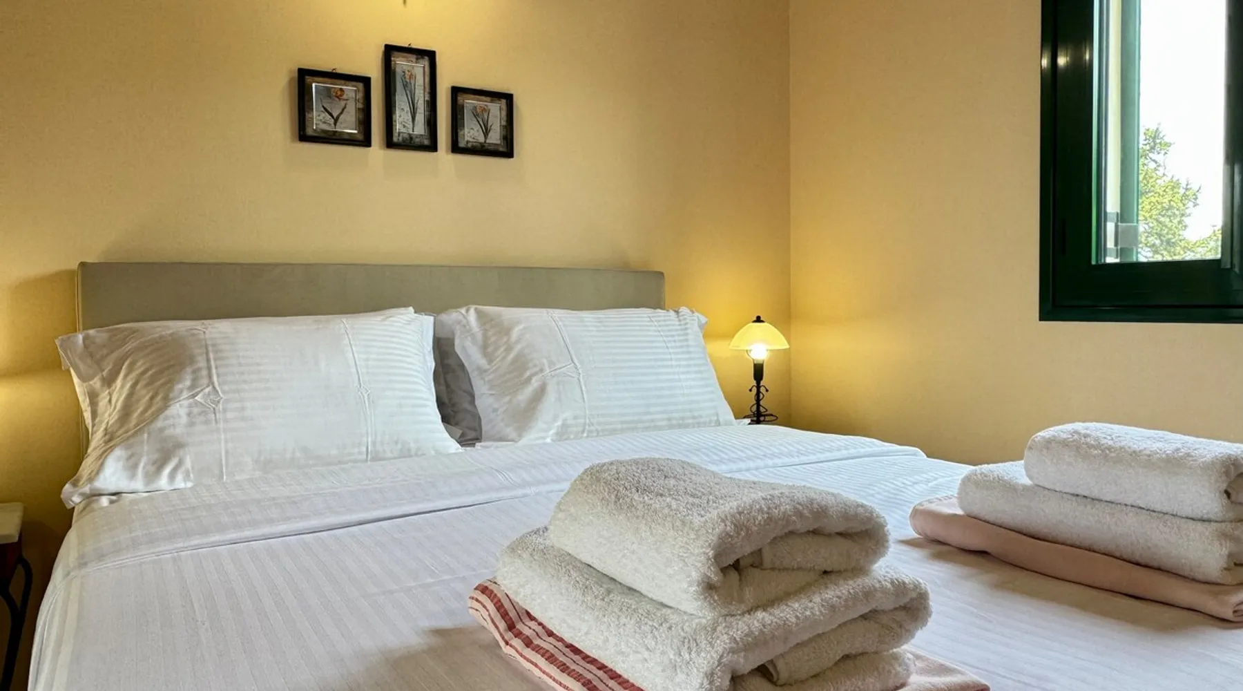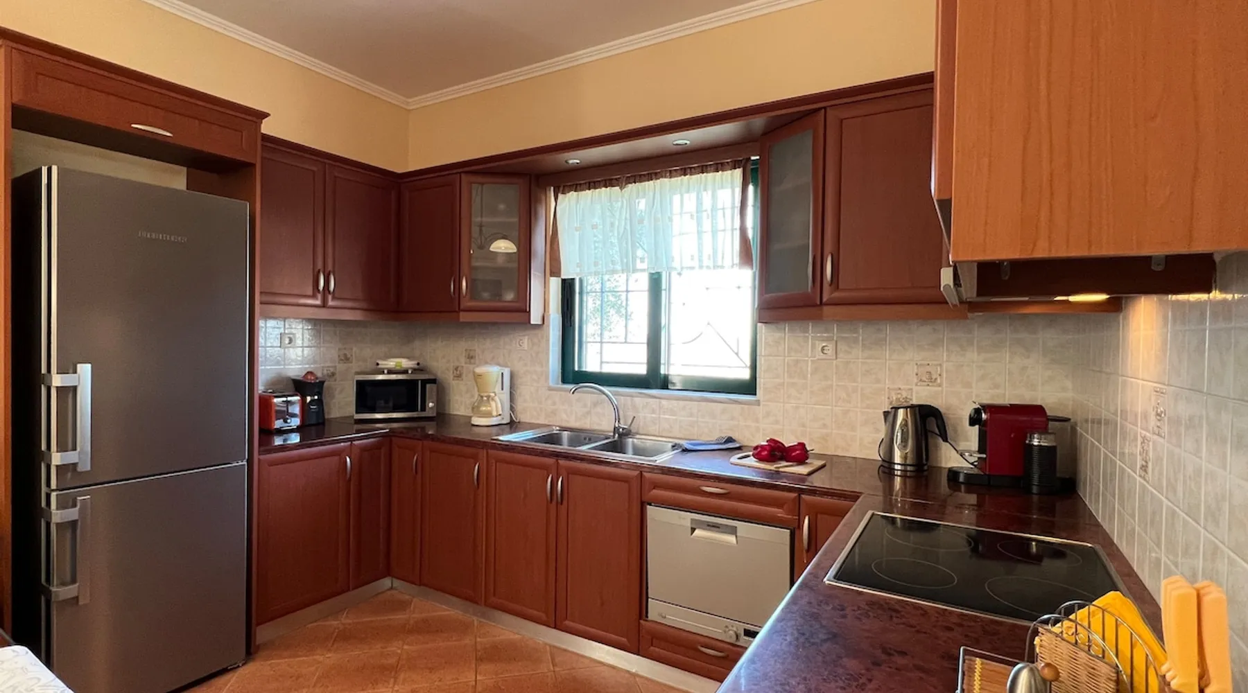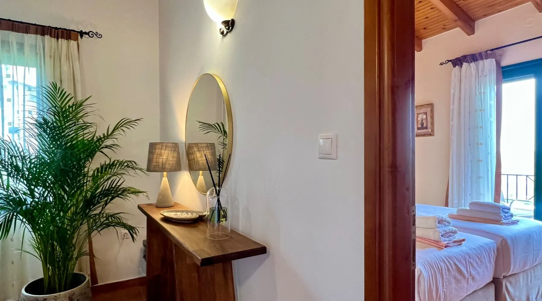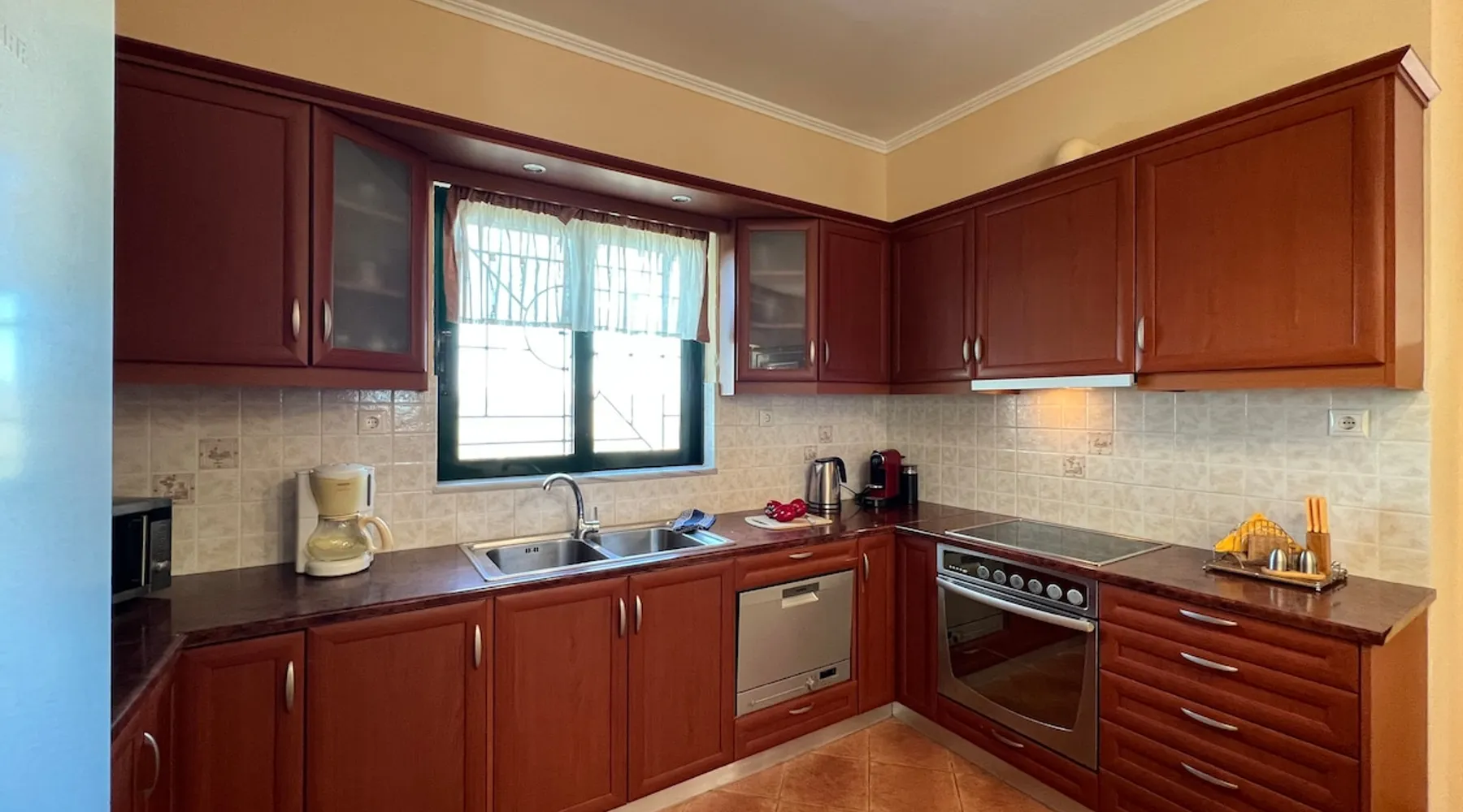 "Stunning, spacious villa with fantastic views & easy reach of the beach" The space Villa Artemis, Vrisses, Crete Built on three levels, Villa Artemis provides ideal accommodation for larger families with a generous living area and air conditioning in all five bedrooms. Each of the first floor bedrooms has its own balcony, providing a little privacy along with the stunning views. Sitting on a terraced hillside in a remarkably peaceful setting, near the tiny village of Maza, Villa Artemis enjoys superb, panoramic views over green and verdant olive groves and rolling wooded countryside to the distant vivid blue sea. Location Vrisses, just 3kms away has a good choice of minimarkets, a renowned baker, and tempting Greek pastry shop as well as a choice of tavernas where you can dine beside the little gushing stream which runs down the leafy valley. In the tiny village of Maza just 1.3km down the hill, Costas Taverna has become quite an institution in Crete and is very well reviewed on tripadvisor and a long term favourite with guests staying in Villa Artemis. The pretty small resort of Georgioupolis with its wonderful long sandy beach and a huge selection of tavernas is approximately 15 mins drive. Outside Villa Artemis Swimming pool - 9m x 4m swimming pool with roman step entry, 0.60cm then sloping down to depth of 1.80m. Sunbathing terrace - sunbeds, rattan sofa set, shower. Garden - Lawn area, terraces of olive trees with steps to front entrance and terraced flower beds with sloped access to pool area and rear entrance. Covered Dining Terrace - table and chairs. Barbecue House - BBQ, sink with tap, table and chairs. 3 first floor balconies - each first floor bedroom has a balcony furnished with chairs and table. Inside Villa Artemis Open Plan Ground floor Living area Sitting area – Two comfy sofas and easy chairs, plasma TV with satellite, DVD player, french doors opening to the covered dining terrace and garden. Air Con Unit. Dining Area - Wooden table and seating for six, Cretan sofa, entrance door to terraced garden. Kitchen Area - Wooden fitted cupboards, double sink, electric oven with ceramic hob, microwave, dishwasher and fridge freezer. Window above the sink to the garden. Single bedroom 1 - Single bed, fitted wardrobes, high windows to side. Air con unit. Shower room 1 - Walk-in shower, hand basin and WC. First Floor Double bedroom - 1 double bed, fitted wardrobe, double doors to balcony with table and chairs and views of pool and down the valley to the sea. Air con unit. Twin bedroom – 2 single beds, fitted wardrobes and double doors to a balcony with table and chairs and views of the pool and down the valley to the sea. Air con Unit. Double bedroom - 1 double bed, fitted wardrobe and double doors to balcony with table and chairs and views over the olive terracing, window to the view down the valley to the sea. Air con Unit. Family bathroom - Bath with shower over, hand basin, WC and washing machine. Second Floor Double bedroom - in the eaves of the Villa, with curtained doorway, low level double bed, easy chair, low level circular windows down the valley to the sea. Air con unit. Parking - There is ample parking space next to the Villa off the lane. Welcome Pack - on arrival you will find a few drinks and snacks to begin your holiday. Wifi access - free of charge. Essential Information: Sleeps (Max) 9 Bedrooms 5 Shower Rooms 2 Maid Service Included Pool Private 9m x 4m A/CIncluded Floor Area m² 150 Booking Information: Check-In Any day (after 16:00) Check-Out Any day (before 10:00) Minimum stay 5 nights Local Facilities: Beach 8 km Tavernas 3 km Mini Market 3 km Distances: Chania Airport 45 km Heraklion Airport 112 km Villa Equipment: DVD TV Satellite TV Dish Washer Washing Machine Hair Dryer Toaster Kettle Sun Lounger Microwave WiFi Connection Safe Fan BBQ Filter Coffee Machine Iron & Board Pool Towels Fridge Freezer Hob Cooking Utensils Guest access The whole villa and pool is for your private use only, as well as the garden. Bed linen & towels are provided as well as pool towels. The cleaner will come in during your stay & change them, depending on how many days you are staying. All of this is included in the price. Other things to note Housekeeping Your Villa will be prepared for you on arrival with fresh bath and hand towels and all beds made up. For stays of 7 nights or more - house towels will be changed every 3 - 4 days. For stays of 14 nights or more - bed linen will be changed every 7 days. Pool/beach towels - one per person for the duration of your stay. If you need a baby cot or high chair, please request when booking so we can have it in the villa for you ready. Optional chargeable services: - Second High Chair - Second Cot Note that this is a professionally run rental villa which as been licensed by the Greek National Tourist Organization, EOT, which is required by the Greek law. This license allows the property owners to legally rent their accommodation to holiday makers, so that they comply to a set of standards and specific conditions for the safety & comfort of it's paying customers. Registration Details 1237306