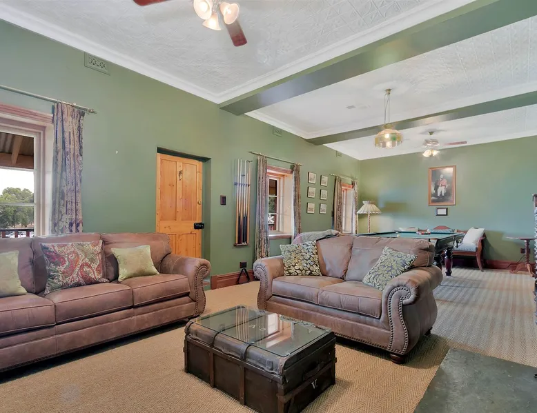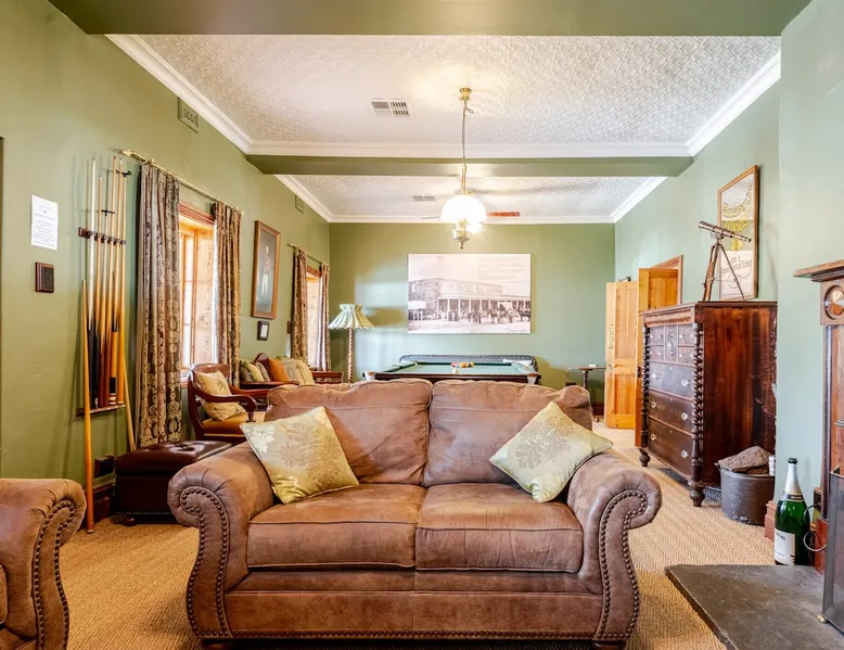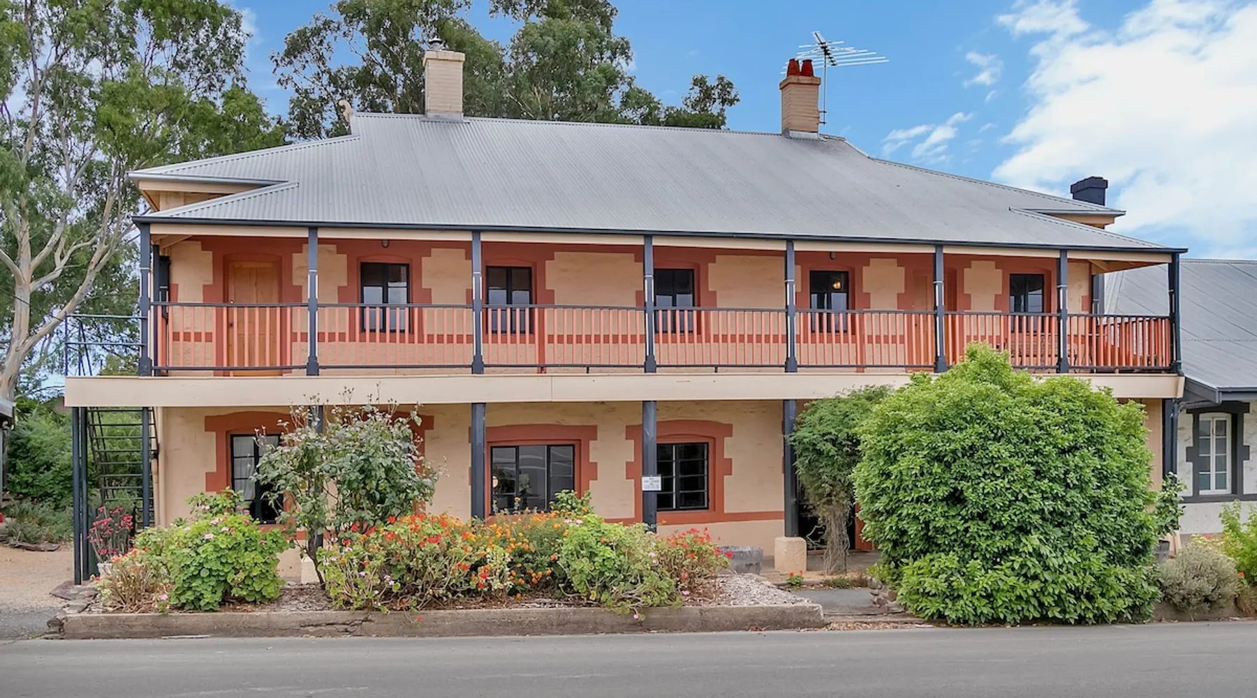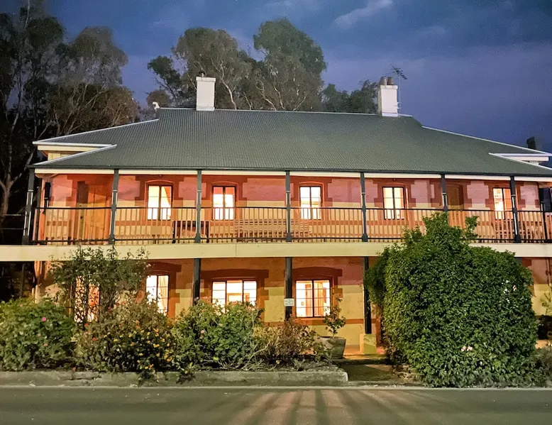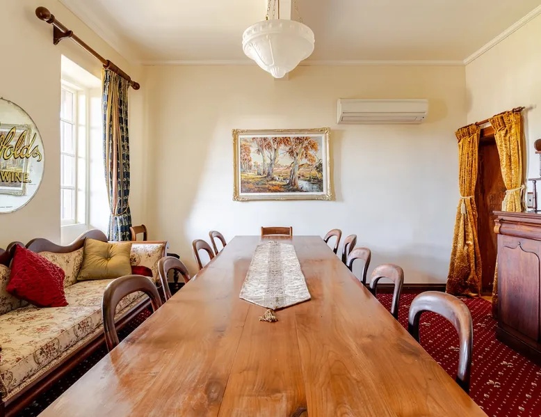 Lyndoch Grand is located at the gateway to the Barossa Valley and this c1855 heritage-listed property is perfectly suited for large groups. It is fully self-contained with 7 bedrooms, 5 living rooms and 3.5 bathrooms. You'll have exclusive use of the entire house, conveniently located in the heart of Lyndoch village and a short walk to restaurants, wineries, shops and galleries. With space, elegance and natural surrounds, it's the perfect base from which to explore the Barossa region The space We've recently purchased this beautiful property, which was originally built as The New Lord Lyndoch Hotel in 1855. Steeped in Barossa Valley heritage it's been used as a hotel, courthouse, council chambers, delicatessen and a coffee palace prior to being faithfully restored as a grand private residence in more recent times. It's ideal for large groups and sleeps 14 people across 7 bedrooms. There's plenty of space to relax in one of the lounge rooms, the magnificent entertainment room with billiard table, or on the wide front balcony or rear balcony. The unique basement bedroom features an antique cast iron spiral staircase flagstone slate floor. The huge farmhouse kitchen is well equipped and ready for dinner parties. There are three and a half bathrooms and an upstairs kitchenette, too. Original high pressed-metal celings, baltic pine floors and leadlight windows are featured throughout the property, which has been furnished with antique Barossa Valley furniture. The massive red gum trees in the rear yard are home to scores of native galahs and the occasional kookaburra. Guest access You'll have full use and access to the entire property, apart from the garage.