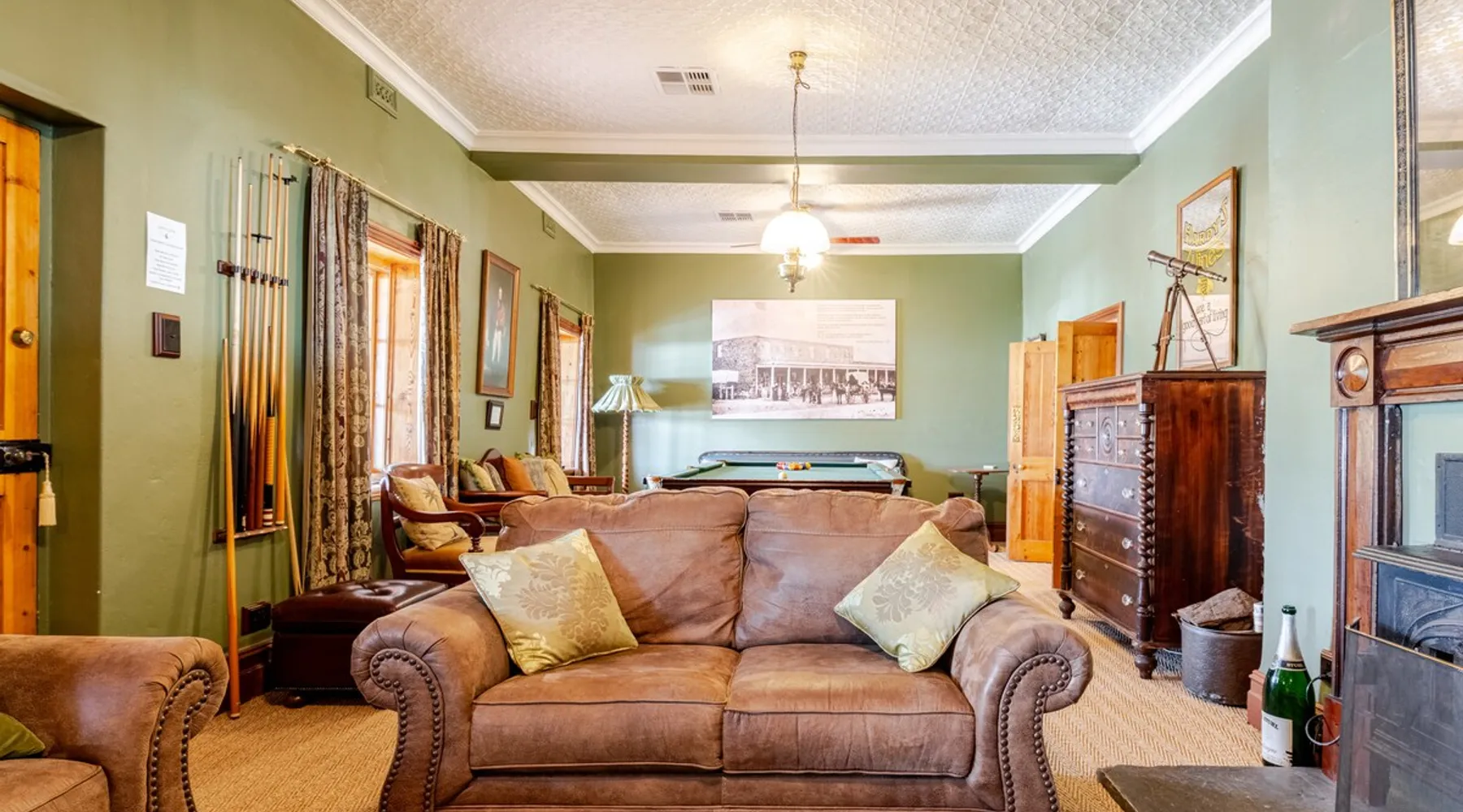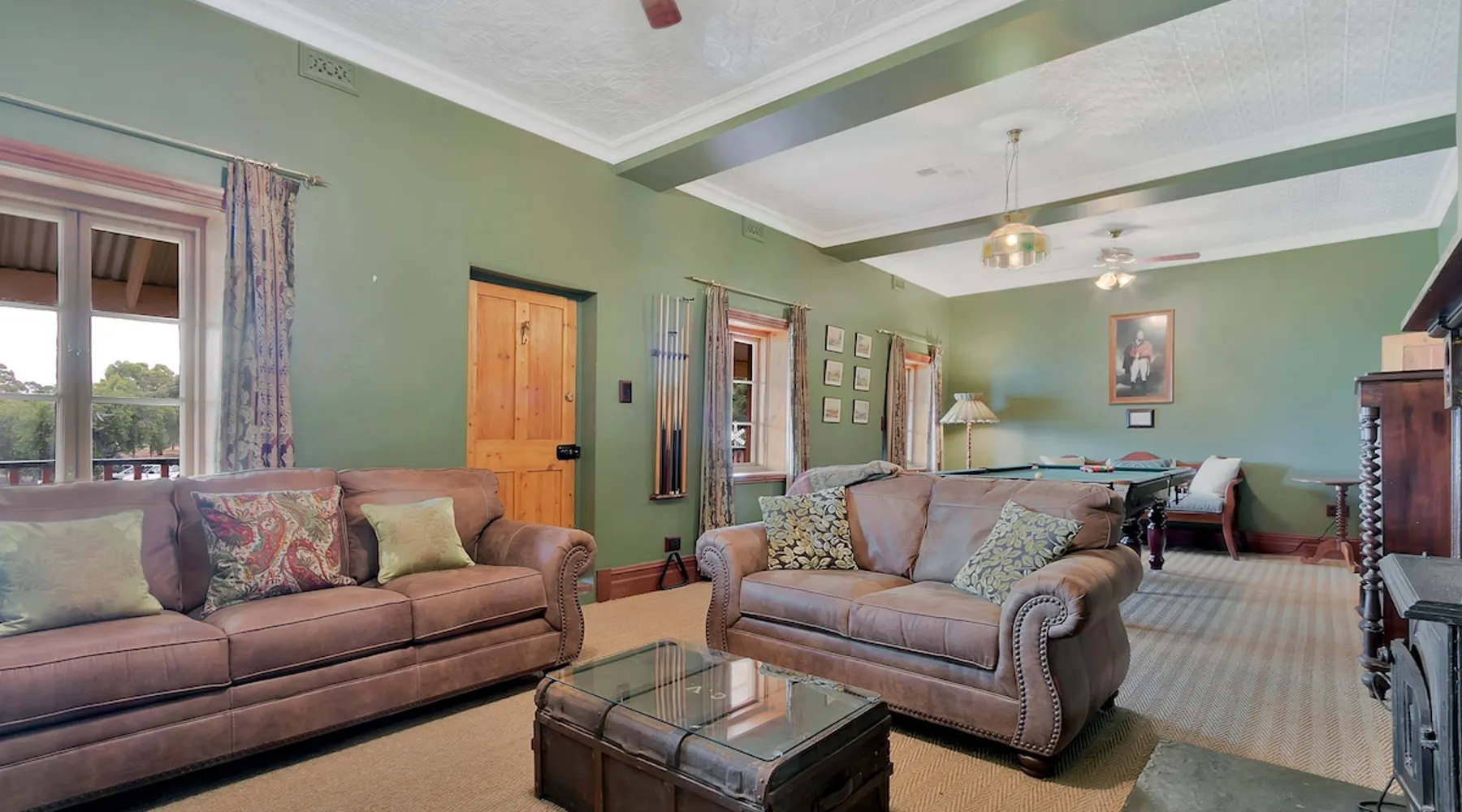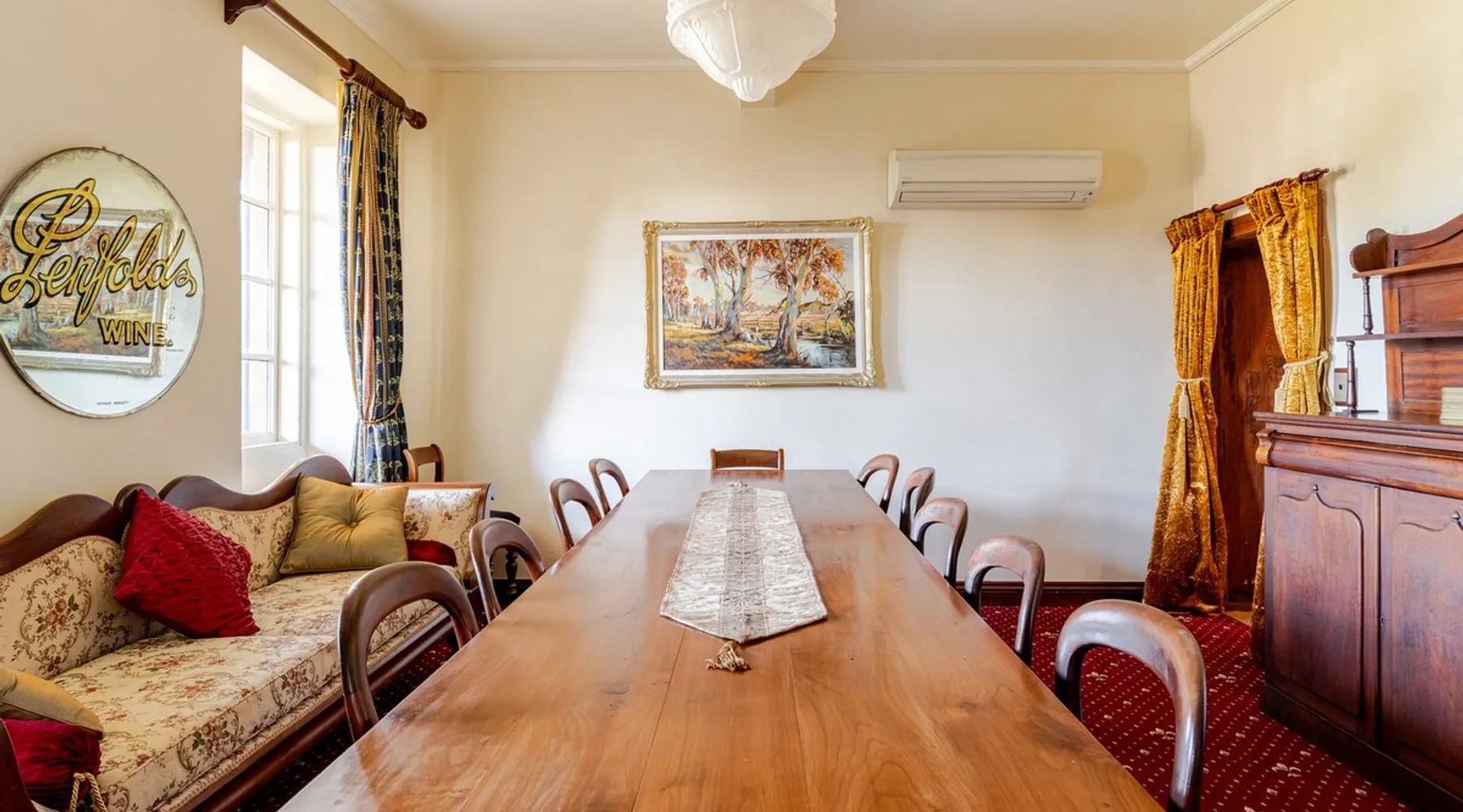 Lyndoch Grand is located at the gateway to the Barossa Valley and this c1855 heritage-listed property is perfectly suited for large groups. It is fully self-contained with 7 bedrooms, 5 living rooms and 3.5 bathrooms. You'll have exclusive use of the entire house, conveniently located in the heart of Lyndoch village and a short walk to restaurants, wineries, shops and galleries. With space, elegance and natural surrounds, it's the perfect base from which to explore the Barossa region The space We've recently purchased this beautiful property, which was originally built as The New Lord Lyndoch Hotel in 1855. Steeped in Barossa Valley heritage it's been used as a hotel, courthouse, council chambers, delicatessen and a coffee palace prior to being faithfully restored as a grand private residence in more recent times. It's ideal for large groups and sleeps 14 people across 7 bedrooms. There's plenty of space to relax in one of the lounge rooms, the magnificent entertainment room with billiard table, or on the wide front balcony or rear balcony. The unique basement bedroom features an antique cast iron spiral staircase flagstone slate floor. The huge farmhouse kitchen is well equipped and ready for dinner parties. There are three and a half bathrooms and an upstairs kitchenette, too. Original high pressed-metal celings, baltic pine floors and leadlight windows are featured throughout the property, which has been furnished with antique Barossa Valley furniture. The massive red gum trees in the rear yard are home to scores of native galahs and the occasional kookaburra. Guest access You'll have full use and access to the entire property, apart from the garage.