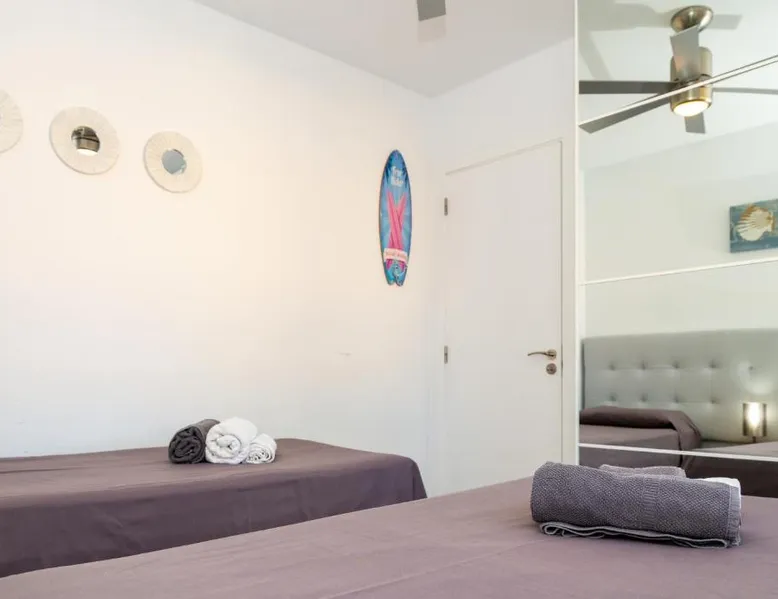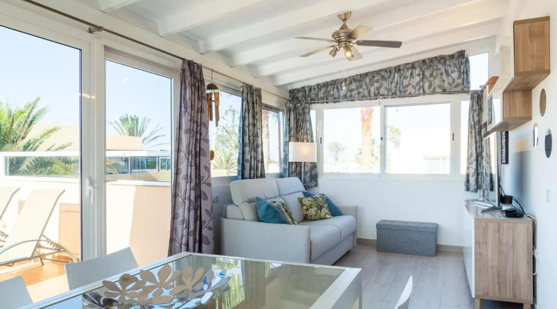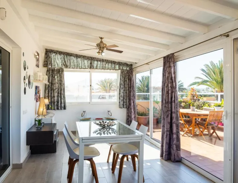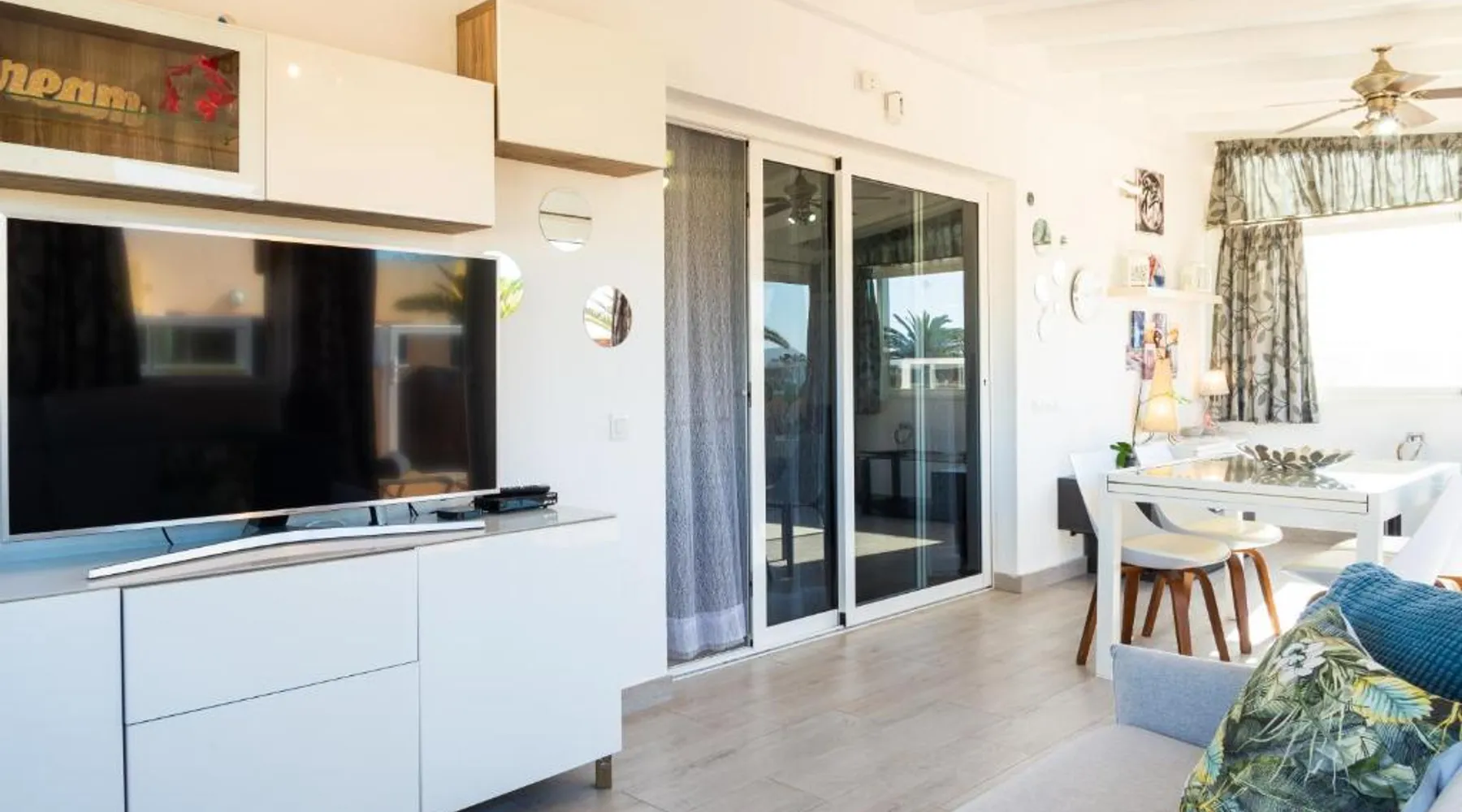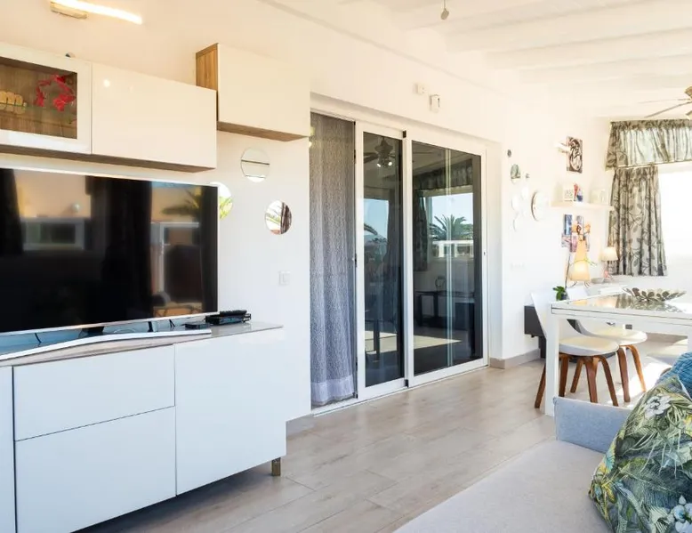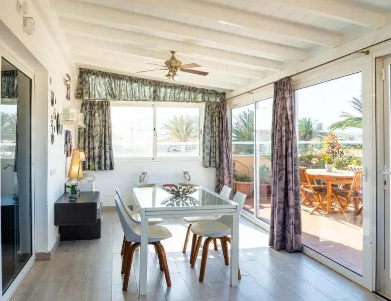 Spacious Accommodations: Casa Michelle in Corralejo offers a spacious apartment with two bedrooms and a living room. The property features a terrace with sea views, a year-round outdoor swimming pool, and free WiFi. Modern Amenities: Guests enjoy a fully equipped kitchenette, washing machine, bidet, hairdryer, coffee machine, dining table, outdoor furniture, and a sofa bed. Additional amenities include a refrigerator, microwave, dishwasher, TV, and private entrance. Convenient Location: Located 21 mi from Fuerteventura Airport, Casa Michelle is a 12-minute walk from Las Agujas. Nearby attractions include Eco Museo de Alcogida and Casa Museo Unamuno Fuerteventura, each 20 mi away. Surfing is available in the surroundings. Guest Favorites: Guests highly rate Casa Michelle for its beach access, kitchen, and swimming pool. This spacious apartment comes with 1 living room, 2 separate bedrooms and 1 bathroom with a shower and a bidet. Meals can be prepared in the well-fitted kitchenette, which features a stovetop, a refrigerator, a dishwasher and kitchenware. Boasting a terrace with sea views, this apartment also features a washing machine and a flat-screen TV. The unit has 4 beds.