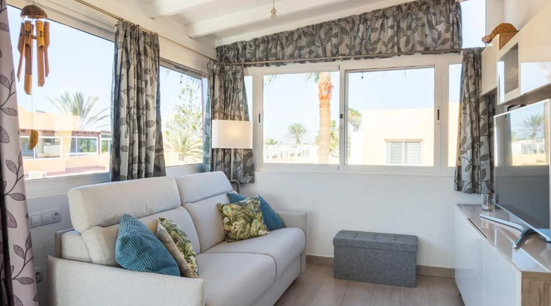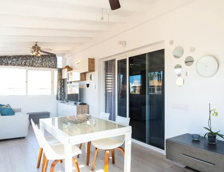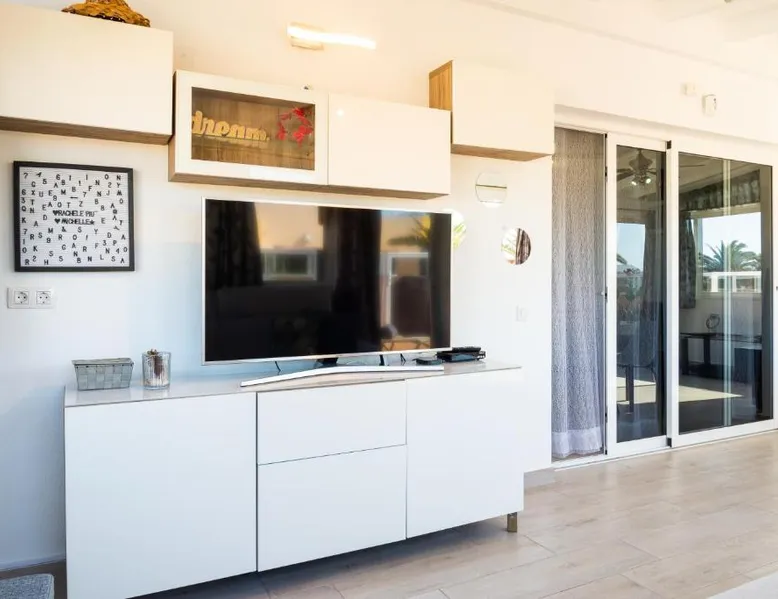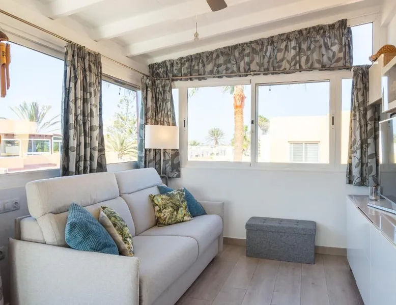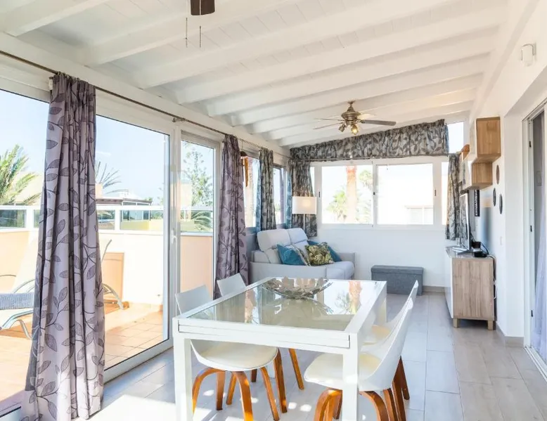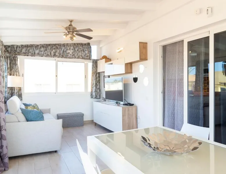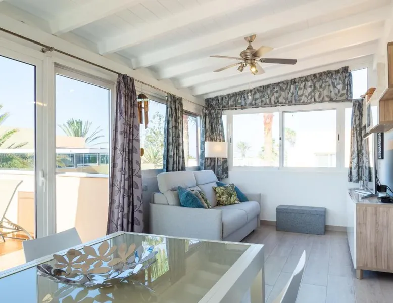 Spacious Accommodations: Casa Michelle in Corralejo offers a spacious apartment with two bedrooms and a living room. The property features a terrace with sea views, a year-round outdoor swimming pool, and free WiFi. Modern Amenities: Guests enjoy a fully equipped kitchenette, washing machine, bidet, hairdryer, coffee machine, dining table, outdoor furniture, and a sofa bed. Additional amenities include a refrigerator, microwave, dishwasher, TV, and private entrance. Convenient Location: Located 21 mi from Fuerteventura Airport, Casa Michelle is a 12-minute walk from Las Agujas. Nearby attractions include Eco Museo de Alcogida and Casa Museo Unamuno Fuerteventura, each 20 mi away. Surfing is available in the surroundings. Guest Favorites: Guests highly rate Casa Michelle for its beach access, kitchen, and swimming pool. This spacious apartment comes with 1 living room, 2 separate bedrooms and 1 bathroom with a shower and a bidet. Meals can be prepared in the well-fitted kitchenette, which features a stovetop, a refrigerator, a dishwasher and kitchenware. Boasting a terrace with sea views, this apartment also features a washing machine and a flat-screen TV. The unit has 4 beds.
