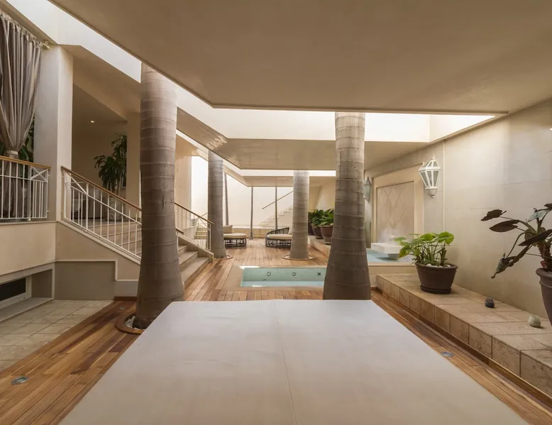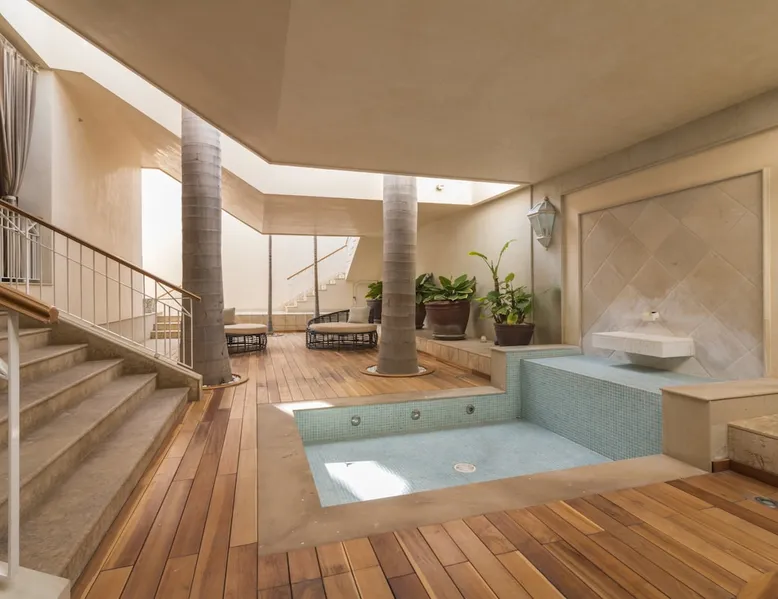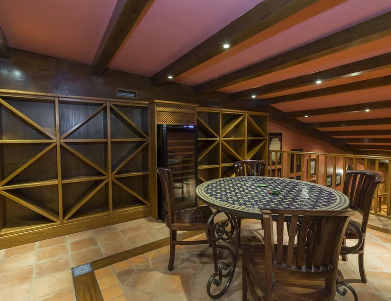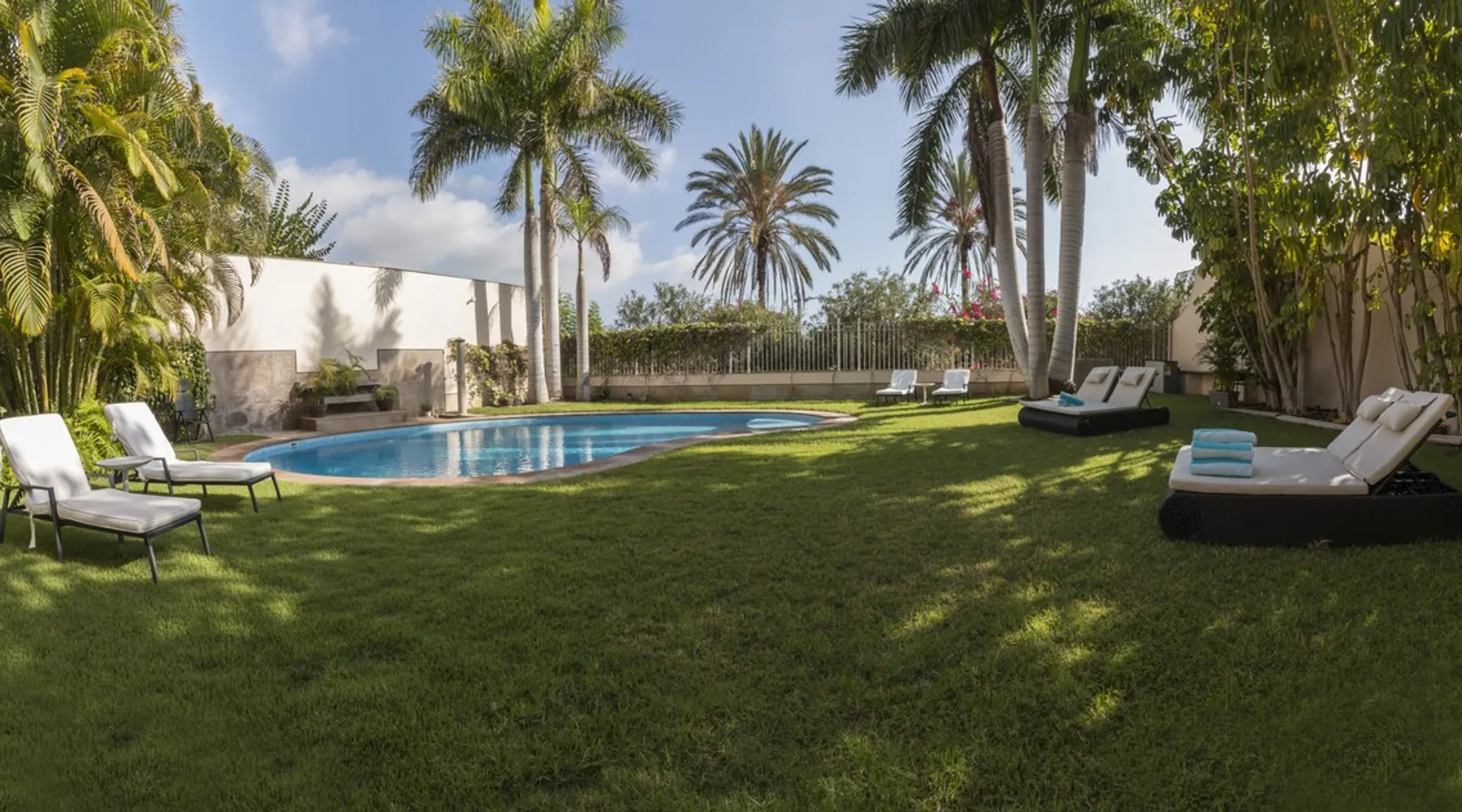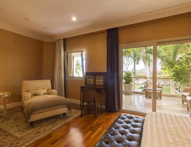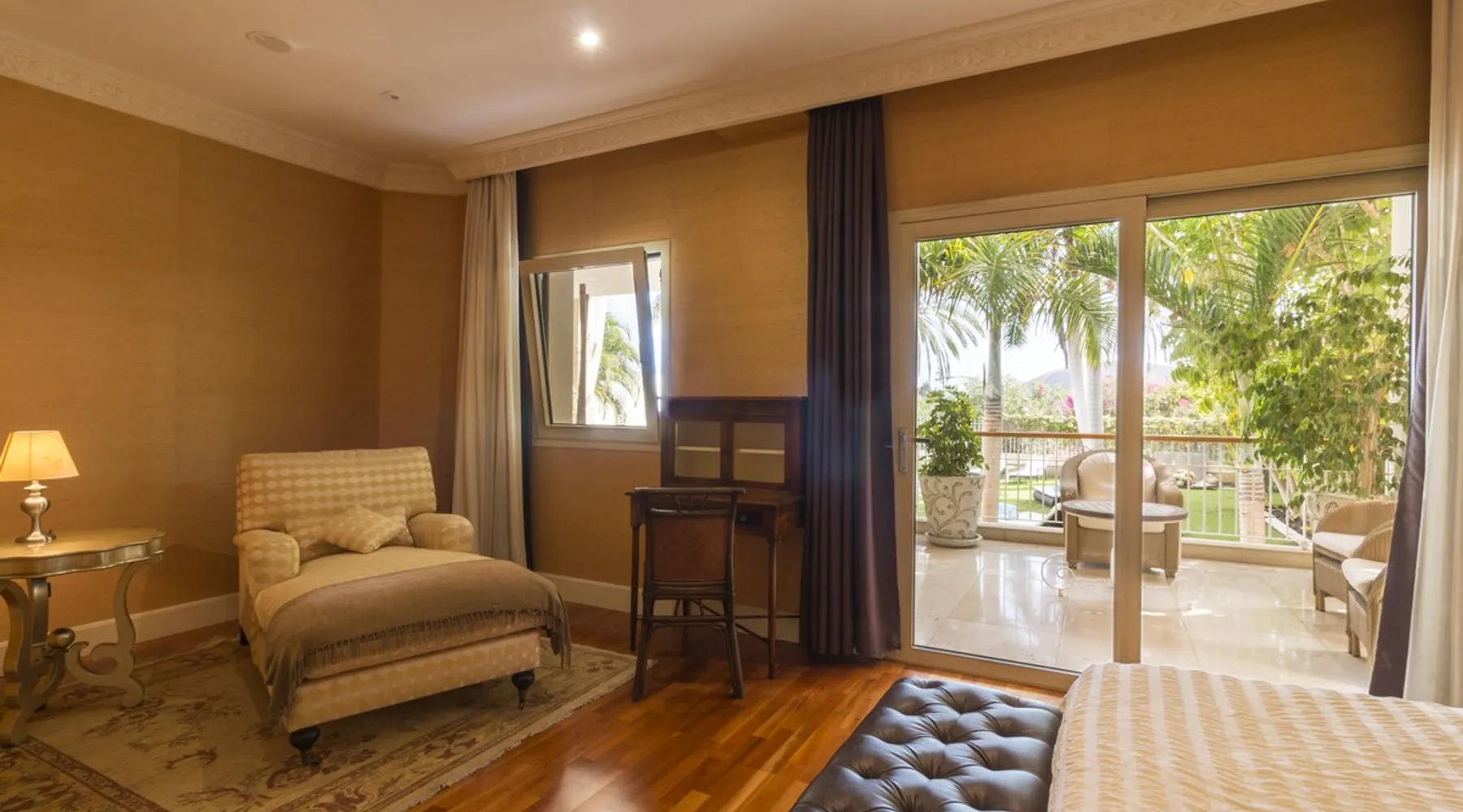 Villa Solaris Privé – Luxury, design and well-being next to the golf course Welcome to Villa Solaris Privé, an architectural jewel of 1,400 m² located on a private plot of 2,100 m², on the first line of the prestigious Las Américas golf course. A high-level residence designed for those seeking privacy, spaciousness and an accommodation experience without concessions. Distributed over three floors and connected by elevator, this villa can comfortably accommodate up to 10 people. The space Important: In response to Covid-19, this property has extended cleaning & disinfection measures & protocols to guarantee the safety of our guests Villa Solaris Privé – Luxury, design and well-being next to the golf course Welcome to Villa Solaris Privé, an architectural jewel of 1,400 m² located on a private plot of 2,100 m², on the first line of the prestigious Las Américas golf course. A high-level residence designed for those seeking privacy, spaciousness and an accommodation experience without concessions. Distributed over three floors and connected by elevator, this villa can comfortably accommodate up to 10 people. It has four main suites, all with en-suite bathrooms, as well as a fully equipped independent apartment with bedroom, bathroom, kitchen and living room. In total, the property has 7 bathrooms, in addition to spaces dedicated to relaxation and wellness such as a Turkish bath (hammam), private jacuzzi in the master suite and a spectacular heated swimming pool. The social area is designed for enjoyment: a winery and bar with dining room, gym, outdoor barbecue, chill out area with Balinese beds and fountain, private garden and a spacious laundry area. The independent kitchen, with a ceramic hob, is fully equipped with a fridge, microwave, oven, freezer, dishwasher, washing machine, tumble dryer, crockery and complete kitchenware, toaster and kettle. Included services during your stay: Daily cleaning (Monday to Friday, 5 hours) which includes house maintenance and washing/ironing of personal clothing. Personal hygiene kits in each bathroom for your comfort. Privileged location: Just 450 m from the Las Américas golf course, and a few minutes by car from beaches, shopping centres, renowned restaurants such as Mesón Castellano or La Fresquera, and attractions like Siam Park or the lively centre of Las Américas / Los Cristianos. Reina Sofía airport is just 16 km away. Villa Solaris Privé redefines the idea of a luxury villa: a residence where each space has been designed to enjoy comfort, privacy and the pleasure of living at another level. The HomeForGuest team will be delighted to assist you throughout your stay and are at your disposal for any needs. Other things to note Included services - Swimming pool - Bed linen - Air conditioning