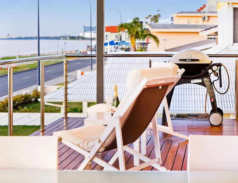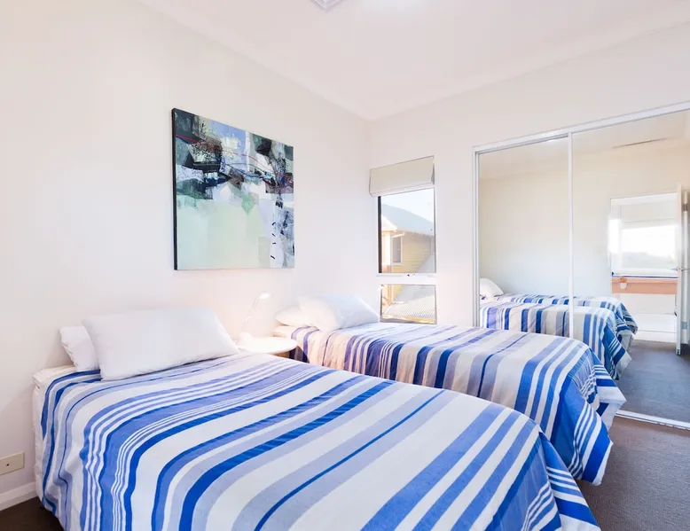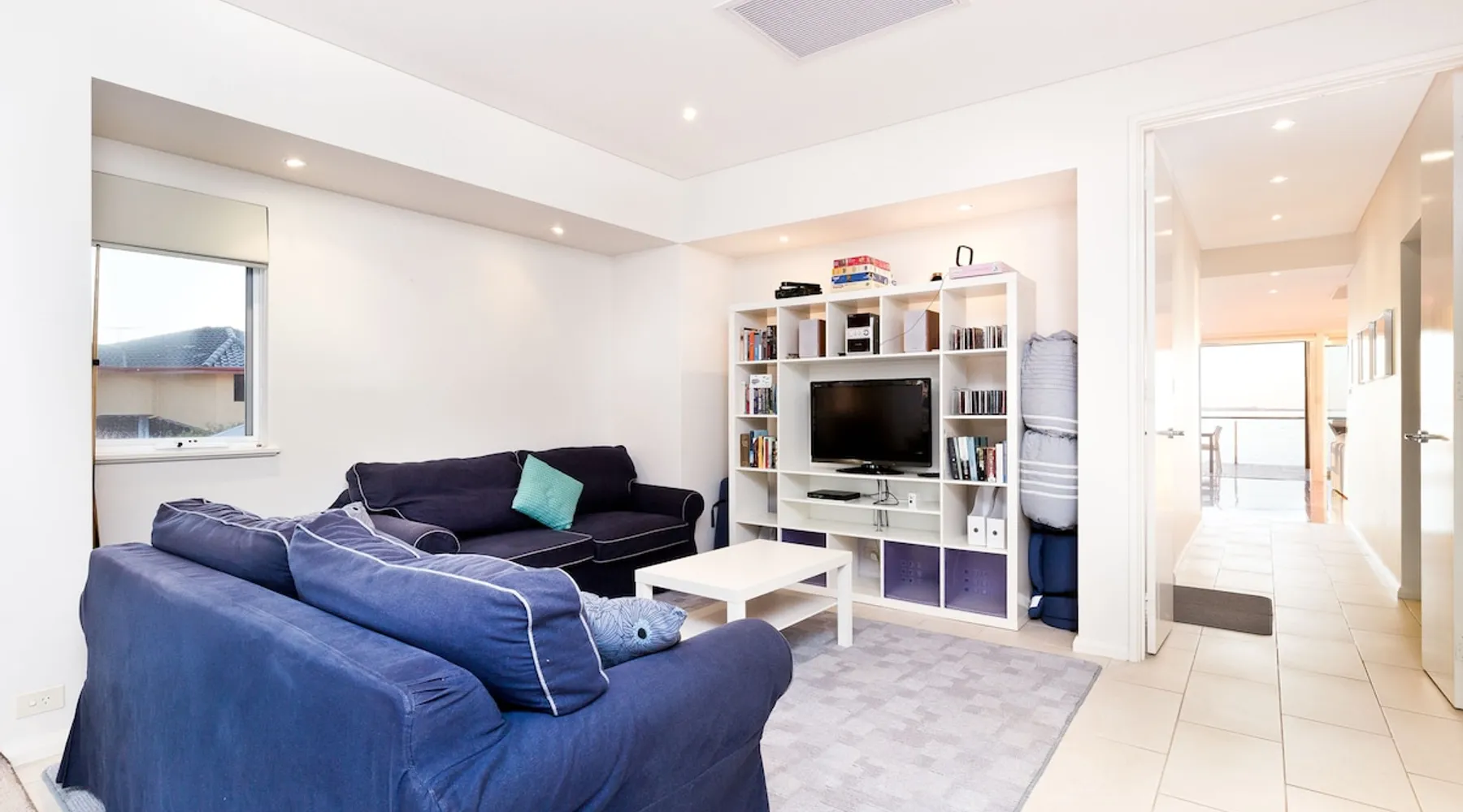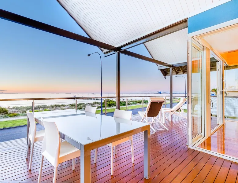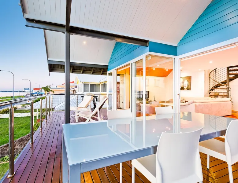 WOW! Stroll across the road and arrive at the beach! Walk to amazing cafes, restaurants, bars, and the famous Rockingham jetties in minutes. BLUEHAVEN BEACH RETREAT is a stunning contemporary beach house, divided into two totally self-contained residences overlooking the sparkling Indian Ocean. SEAGULL APARTMENT is on the upper levels of BLUEHAVEN, just right for family gatherings, holidays, reunions, book clubs, yoga or work retreats. (The other apartment, STARFISH, is also available). The space SEAGULL offers spectacular elevated views and is fully equipped and furnished to cater for up to 8 guests. Accommodation includes: > 3 bedrooms (1 with private ensuite) bathroom and a 4th bedroom (or sitting room) on the upper mezzanine level; > spacious loungeroom and TV sitting-area with large balcony deck overlooking the Indian Ocean; > dining area and fully-equipped designer kitchen; > (separated) rear family room with TV sitting area and pool table; > laundry with washing machine and dryer main bathroom, and; > 2nd (separate) toilet/WC Externally there is a grassed rear yard area, clothes drying area and 2 x adjacent parking bays for your guest's use. The property is fenced and safe - let the kids loose on their trikes! SEAGULL is fully equipped with everything you need for for that perfect getaway holiday. There are comfy sofas, smart TV's , free WIFI, well-equipped kitchen and laundry, barbecue, and ample tables and chairs throughout. Guest access Access to SEAGULL APARTMENT is self-entry via a key lockbox. Welcome/access instructions are issued 4 - 7 days prior to occupancy date. Once inside the ground level entry hall, there is one flight of stairs (no lift/elevator access) which leads direct to the main living area. There is 2nd (alternate) flight of external stairs - also to this level - located adjacent the rear car park. An additional set of (circular) stairs leads up from the main living level to the 3rd level mezzanine bedroom/sitting-area On-site parking at rear of property for up to 2 vehicles. Needs to be managed for easy in/out access. The property is fully fenced. Other things to note SEAGULL APARTMENT Base Tariff includes for up to 6 persons. An Additional Persons Surcharge is levied per person for up to 2 additional guests (maximum of 8 guests overall). Possible sleeping arrangements for guests include: 3 x bedrooms (1 with a private ensuite bathroom) plus a 4th bedroom/sitting room (with single bed and a double-size sofa bed) located on the upper mezzanine level. Beds in most rooms may be configured upon request as either 1 x king-size bed or 2 x single beds. Additional bedding can be provided via a fold-out double-size sofa beds in the rear family room. The two residences - the lower level Starfish and the upper-level Seagull - are completely separate with their own entrances and security systems. However both apartments can be interconnected via an internal stairwell and booked as one large beach house for larger bookings. To book entire property refer-to / search-for separate AirBnb listing: "Bluehaven Beach Retreat". Registration Details STRA6168HS2692MB