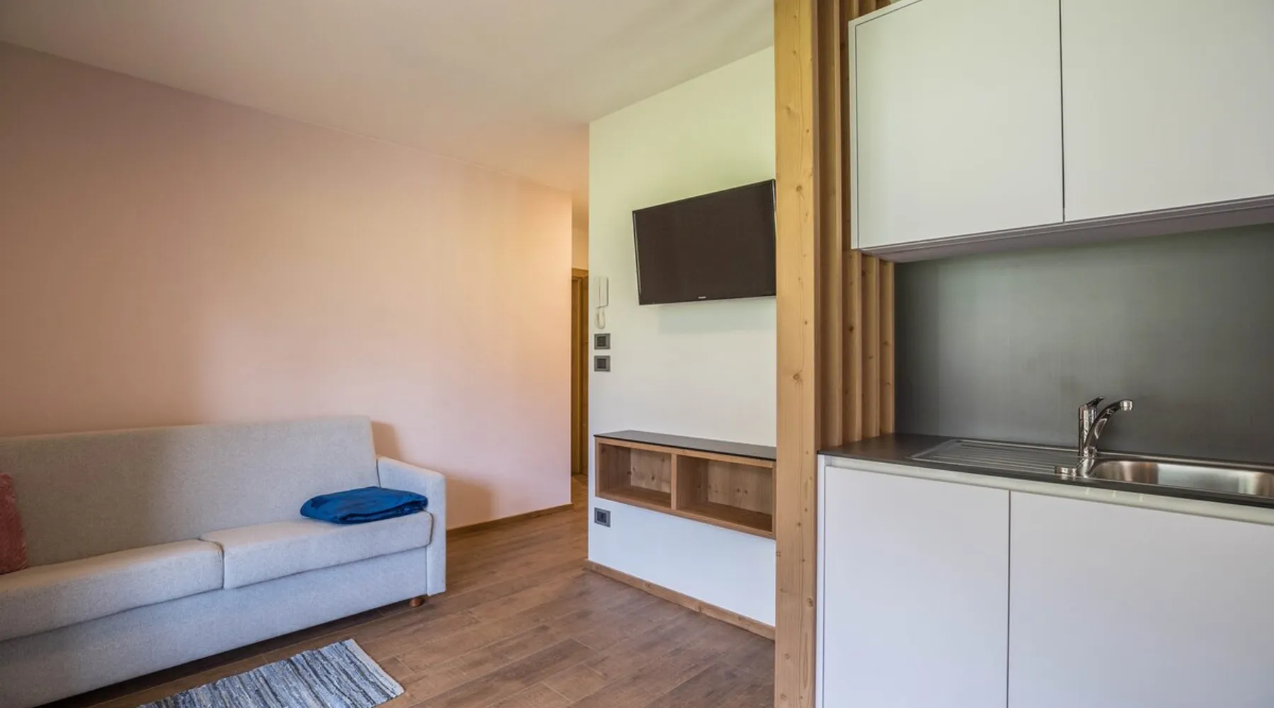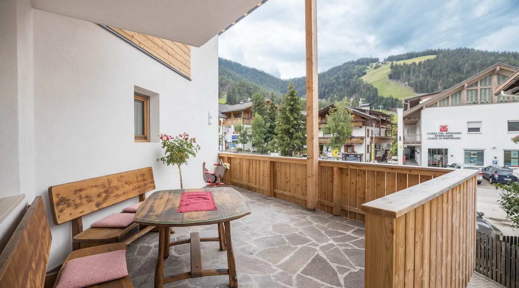 The modern 2-room apartment Col Toronn is located in St. Vigil (San Vigilio di Marebbe) and is part of the beautiful house Ciasa Lavarella. Boasting a mountain view, the comfortable apartment consists of a living/dining room with a sofa bed (for 2 people), a kitchenette with a dishwasher, one bedroom as well as one bathroom and can therefore accommodate 4 people. Additional amenities include Wi-Fi, satellite and cable television as well as underfloor heating. Other things to note Furthermore, the apartment offers a large private balcony which is accessible via the double bedroom. Start your mornings outside on your furnished balcony and sip on a hot cup of coffee while you enjoy the picturesque surroundings. Due to its excellent location, restaurants, cafes and bars can be easily reached on foot in under 3 minutes and the nearest supermarket is just a 1-minute walk away (85 m). Furthermore, in the immediate vicinity of the house you will find connections to the famous ski area Kronplatz which offers 119 km of perfectly maintained slopes for families with children and experts, museums and numerous restaurants and huts where you can enjoy local delicacies. 1 parking space per apartment is available on the property and some are also available on the street. Bed linens and towels are included in the price. Additional services: - Boots, skis and bike storage available - Ironing board available upon request - Additional cleaning is available for a fee. - Microwave available upon request for no extra charge - There are parking options available at an extra cost. - ”Holidaypass Premium Card" for free use of all public transport in South Tyrol /Skibus - "Advantage Card" for discounts in restaurants, shops and spas with special terms and conditions - Ironing board and iron (on request) - Coffee pod or American coffee machine (on request) - Kettle (on request) - Toaster (on request) - Breakfast payment 10EUR per person per night Registration Details IT021047B4LWAMVPR5