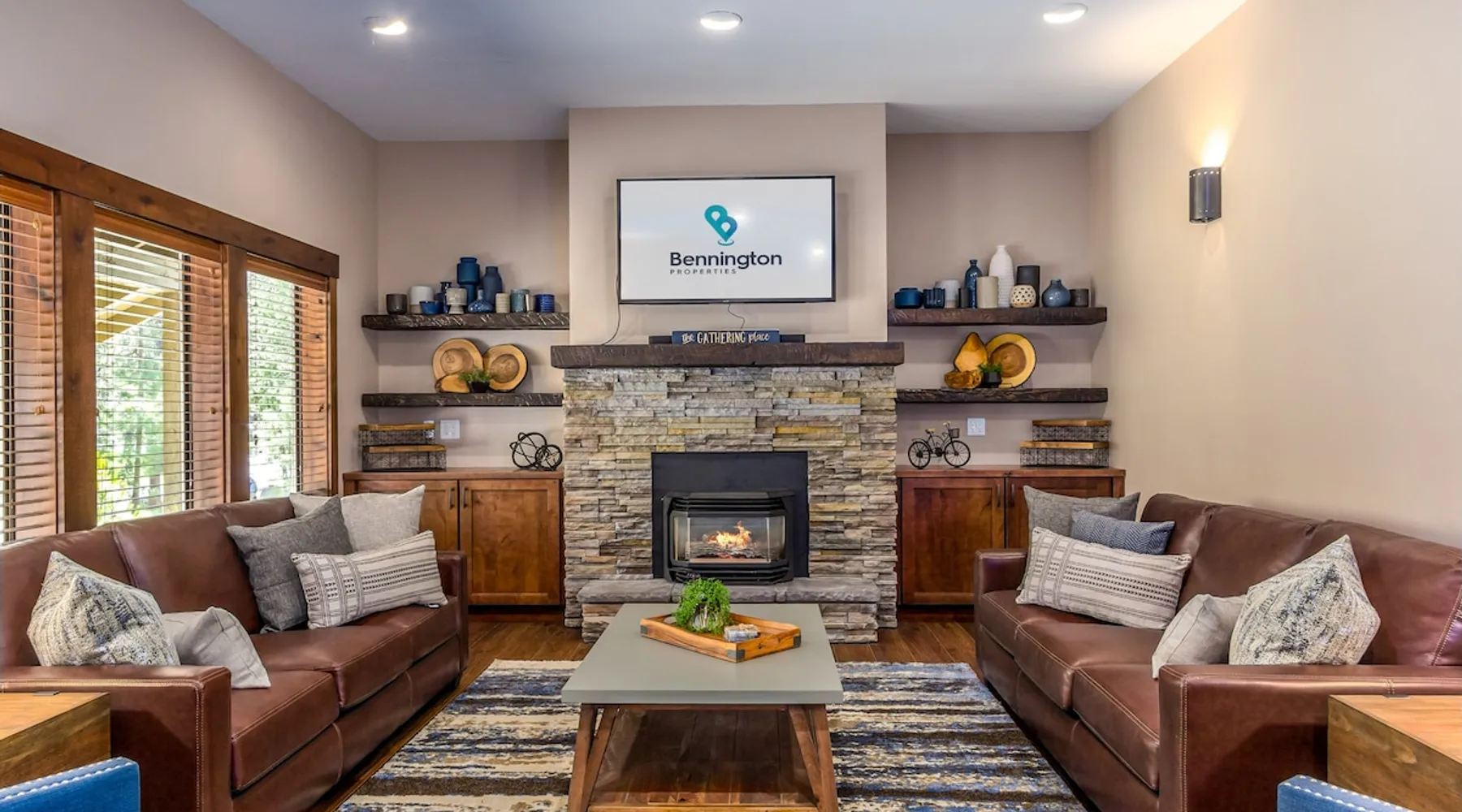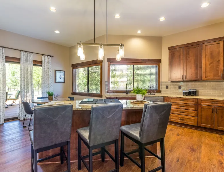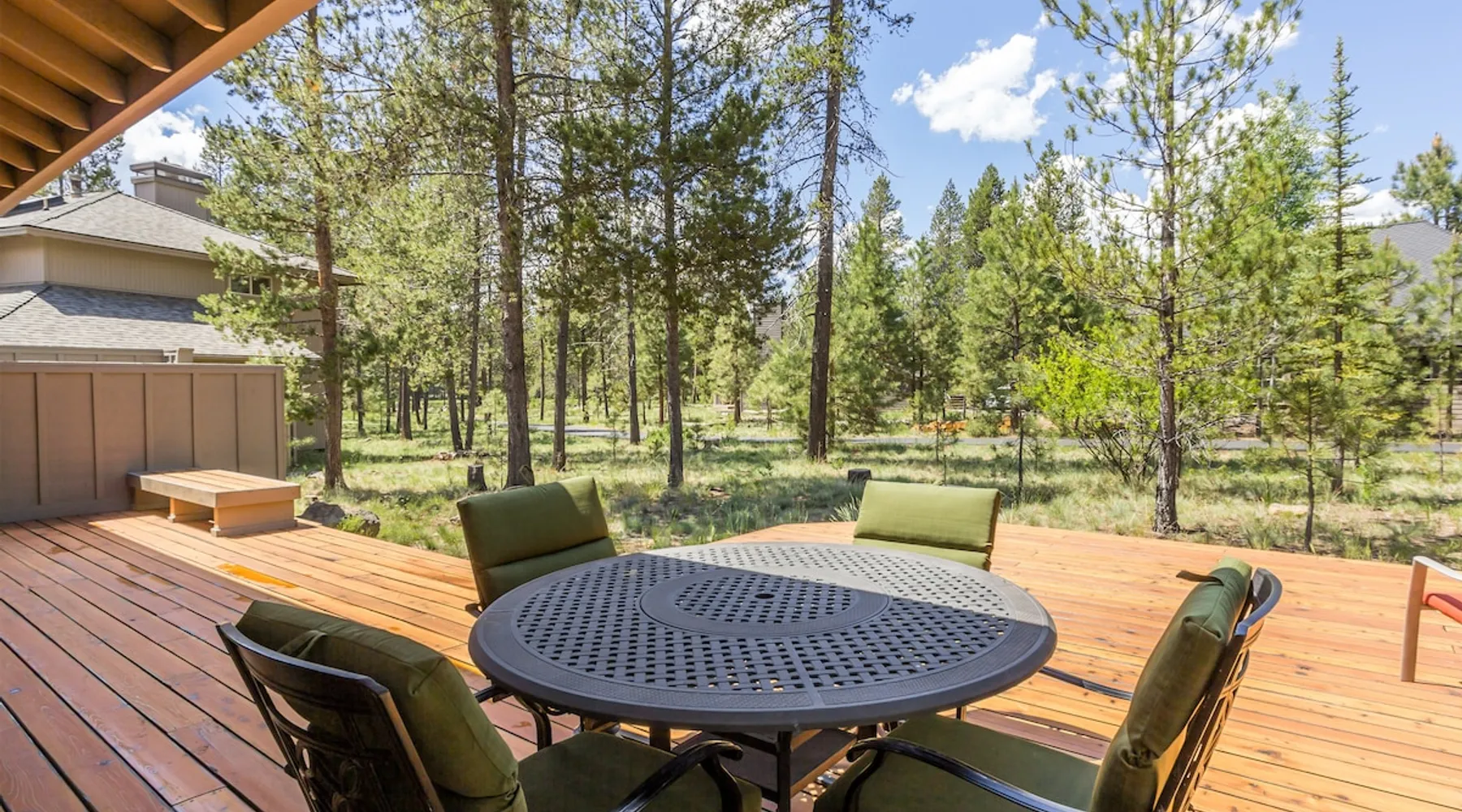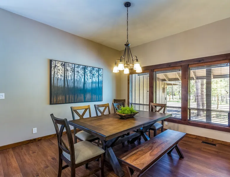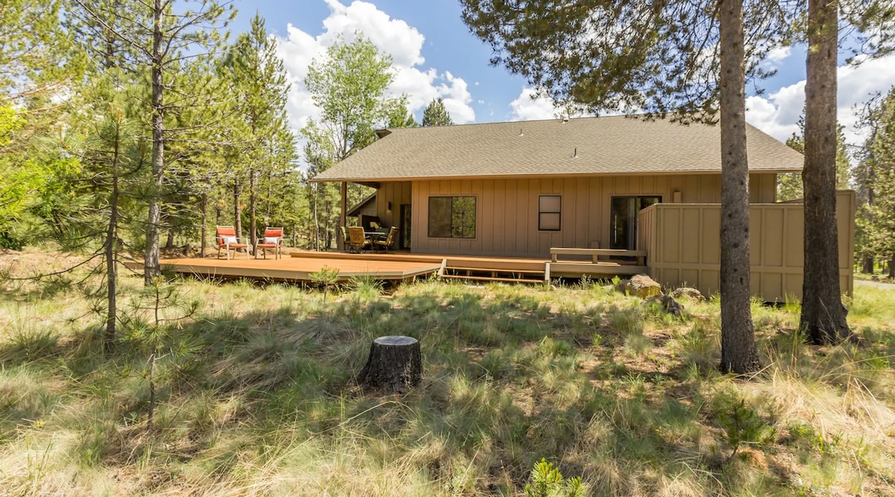 Updated home just a 2 minute walk from the Deschutes River and a river view from the back deck. Gas fireplace, large back deck, 3 bedrooms including an ensuite. The space This beautiful, fully renovated home is tastefully decorated and invites you to relax in the sunshine on the large back deck while enjoying a view of the Deschutes River or cook gourmet meals together in the well appointed kitchen. The dining room seats 10 with an added breakfast nook with seating for 4. Three bedrooms and two bathrooms are nicely separated for privacy, each bedroom with its own smart flat screen TV. The queen bed plus twin bunk room has access to the back deck, where you can enjoy grilling and dining outside. The king bedroom with en suite bathroom and soaking tub also has deck access, leading out to the enclosed hot tub area where you can enjoy a soak under the stars. A third bedroom is furnished with a king bed. Enjoy the 6 bikes provided on the bike trail with access to over 30 miles of paved pathways meandering through Sunriver just outside your door, and it’s only a few short steps to the paved Deschutes River trail. This property also includes 3 SUPs, 4 tennis rackets, and 4 pickleball rackets for fun beyond the home! Enjoy the scenery of the majestic Deschutes River as you keep your eye out for river otters, beaver, raccoon, porcupines, elk, deer, and the plethora of birds and other wildlife that call Sunriver home. Family Reunion? Book this home along with Warbler 12 to have the whole family close together. Other things to note AGE RESTRICTIONS: Guests must be 23 years or older to rent Bennington homes and the person reserving must occupy the home the whole reservation.