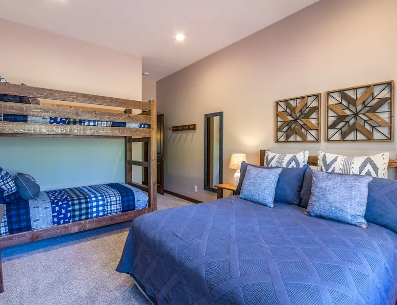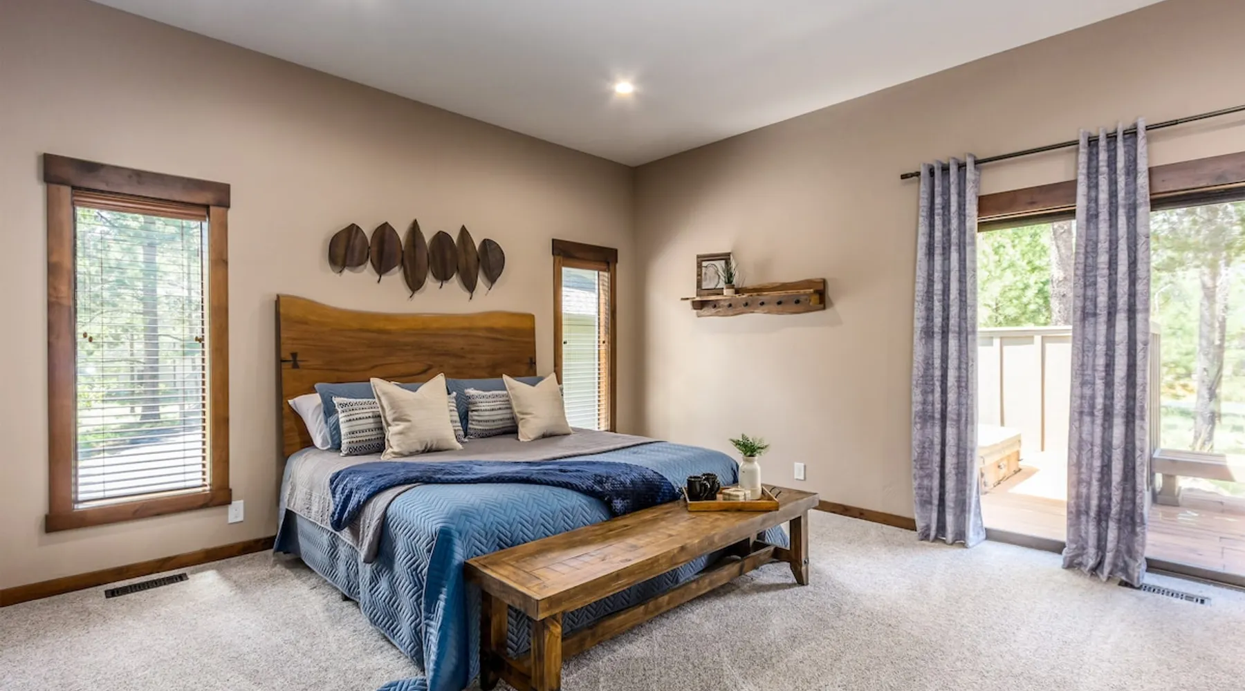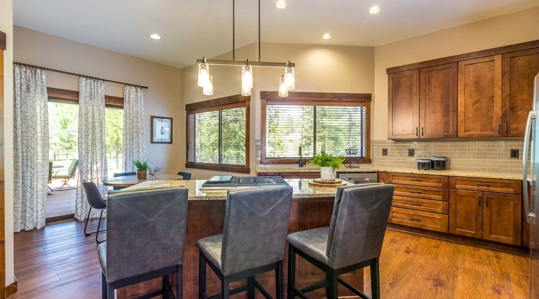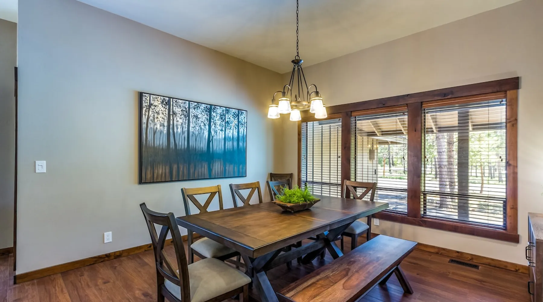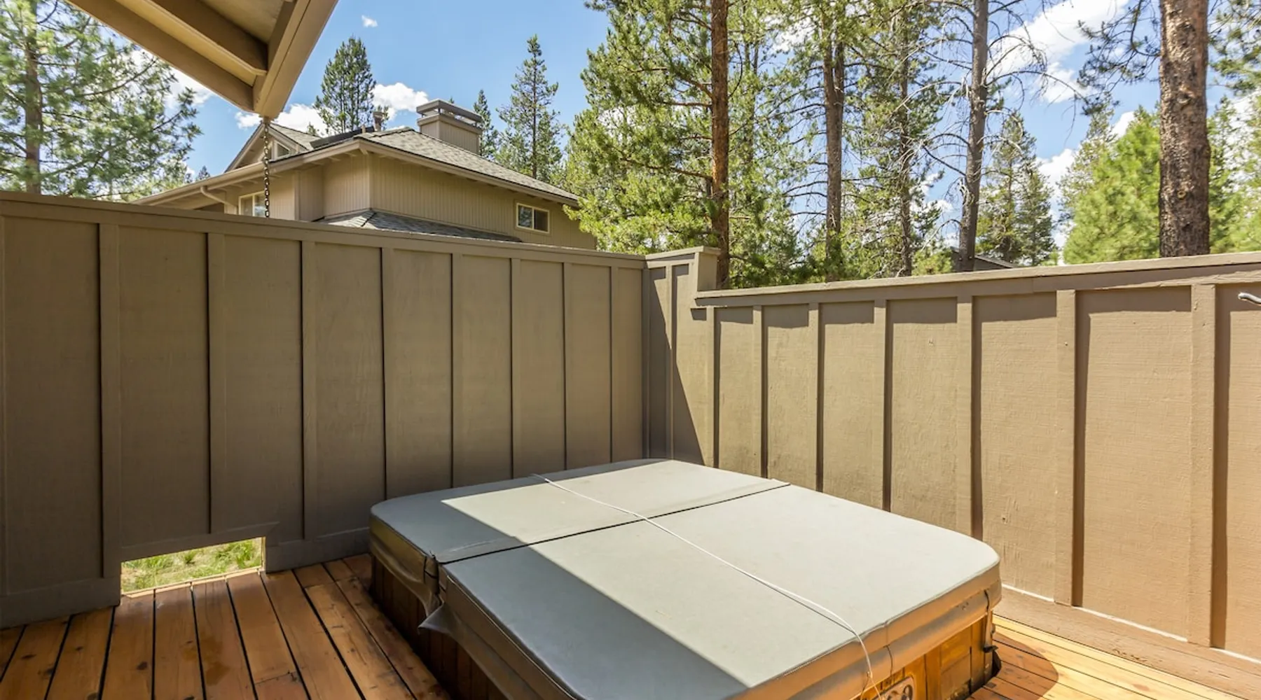 Updated home just a 2 minute walk from the Deschutes River and a river view from the back deck. Gas fireplace, large back deck, 3 bedrooms including an ensuite. The space This beautiful, fully renovated home is tastefully decorated and invites you to relax in the sunshine on the large back deck while enjoying a view of the Deschutes River or cook gourmet meals together in the well appointed kitchen. The dining room seats 10 with an added breakfast nook with seating for 4. Three bedrooms and two bathrooms are nicely separated for privacy, each bedroom with its own smart flat screen TV. The queen bed plus twin bunk room has access to the back deck, where you can enjoy grilling and dining outside. The king bedroom with en suite bathroom and soaking tub also has deck access, leading out to the enclosed hot tub area where you can enjoy a soak under the stars. A third bedroom is furnished with a king bed. Enjoy the 6 bikes provided on the bike trail with access to over 30 miles of paved pathways meandering through Sunriver just outside your door, and it’s only a few short steps to the paved Deschutes River trail. This property also includes 3 SUPs, 4 tennis rackets, and 4 pickleball rackets for fun beyond the home! Enjoy the scenery of the majestic Deschutes River as you keep your eye out for river otters, beaver, raccoon, porcupines, elk, deer, and the plethora of birds and other wildlife that call Sunriver home. Family Reunion? Book this home along with Warbler 12 to have the whole family close together. Other things to note AGE RESTRICTIONS: Guests must be 23 years or older to rent Bennington homes and the person reserving must occupy the home the whole reservation.