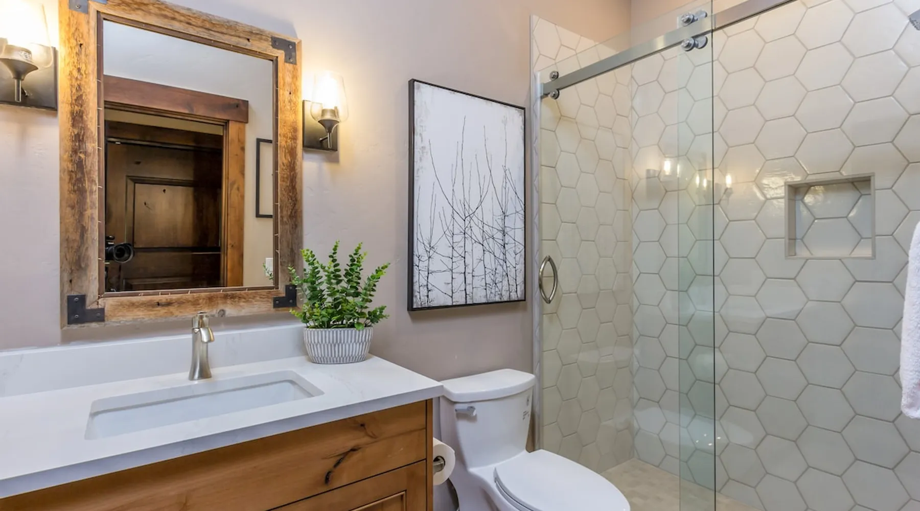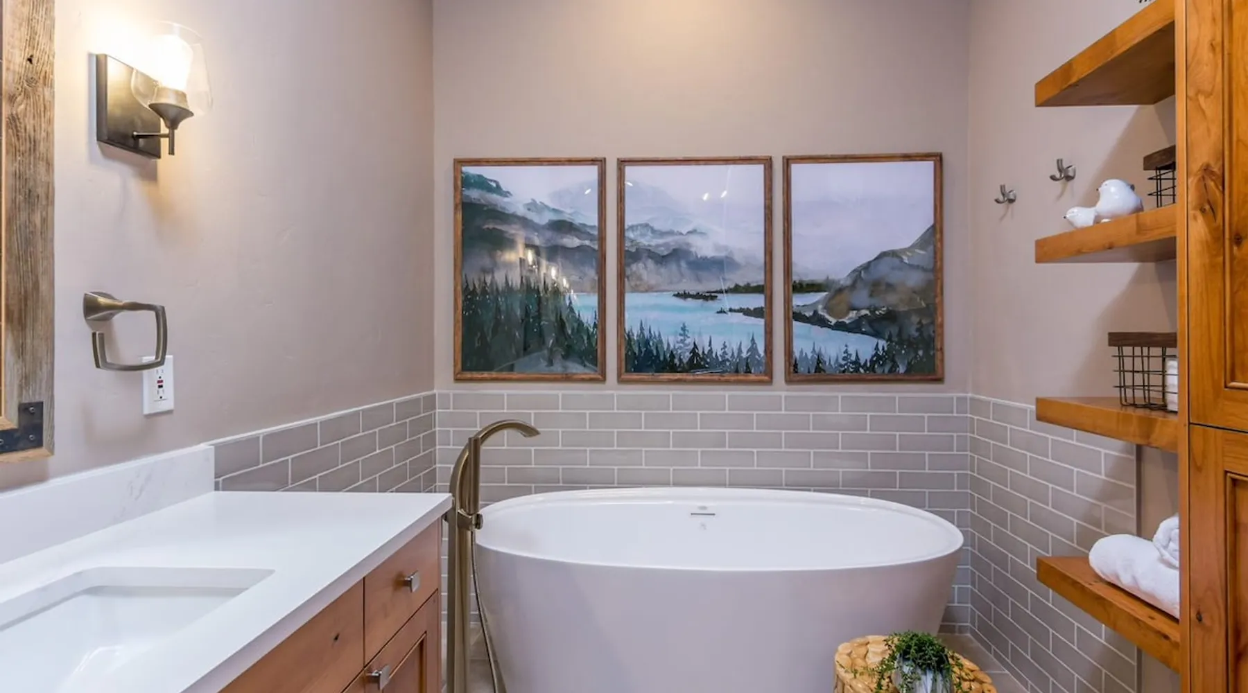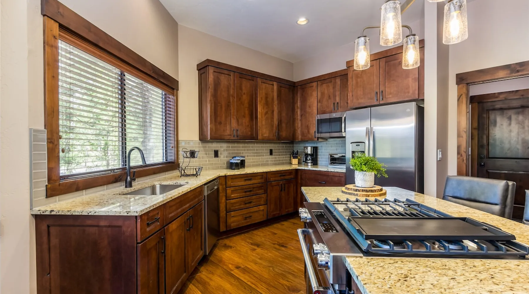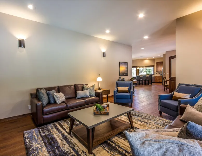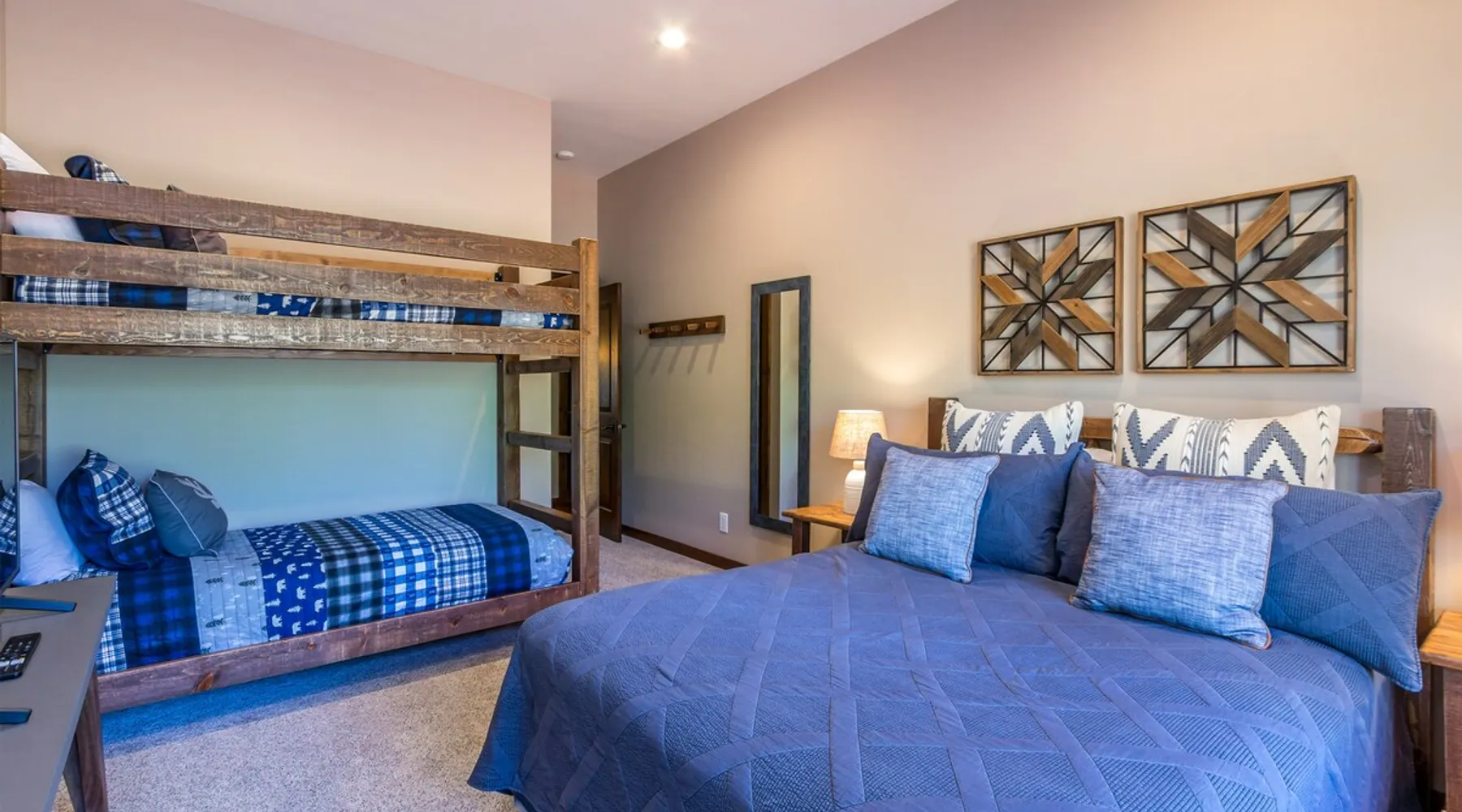 Updated home just a 2 minute walk from the Deschutes River and a river view from the back deck. Gas fireplace, large back deck, 3 bedrooms including an ensuite. The space This beautiful, fully renovated home is tastefully decorated and invites you to relax in the sunshine on the large back deck while enjoying a view of the Deschutes River or cook gourmet meals together in the well appointed kitchen. The dining room seats 10 with an added breakfast nook with seating for 4. Three bedrooms and two bathrooms are nicely separated for privacy, each bedroom with its own smart flat screen TV. The queen bed plus twin bunk room has access to the back deck, where you can enjoy grilling and dining outside. The king bedroom with en suite bathroom and soaking tub also has deck access, leading out to the enclosed hot tub area where you can enjoy a soak under the stars. A third bedroom is furnished with a king bed. Enjoy the 6 bikes provided on the bike trail with access to over 30 miles of paved pathways meandering through Sunriver just outside your door, and it’s only a few short steps to the paved Deschutes River trail. This property also includes 3 SUPs, 4 tennis rackets, and 4 pickleball rackets for fun beyond the home! Enjoy the scenery of the majestic Deschutes River as you keep your eye out for river otters, beaver, raccoon, porcupines, elk, deer, and the plethora of birds and other wildlife that call Sunriver home. Family Reunion? Book this home along with Warbler 12 to have the whole family close together. Other things to note AGE RESTRICTIONS: Guests must be 23 years or older to rent Bennington homes and the person reserving must occupy the home the whole reservation.