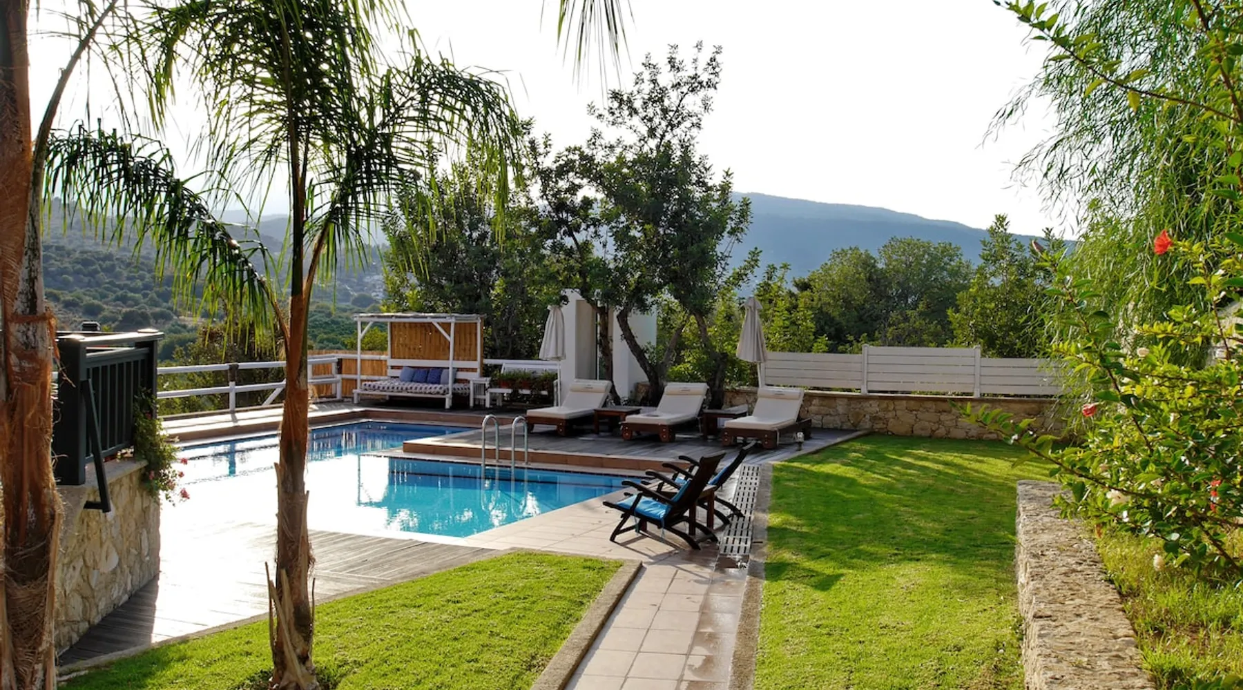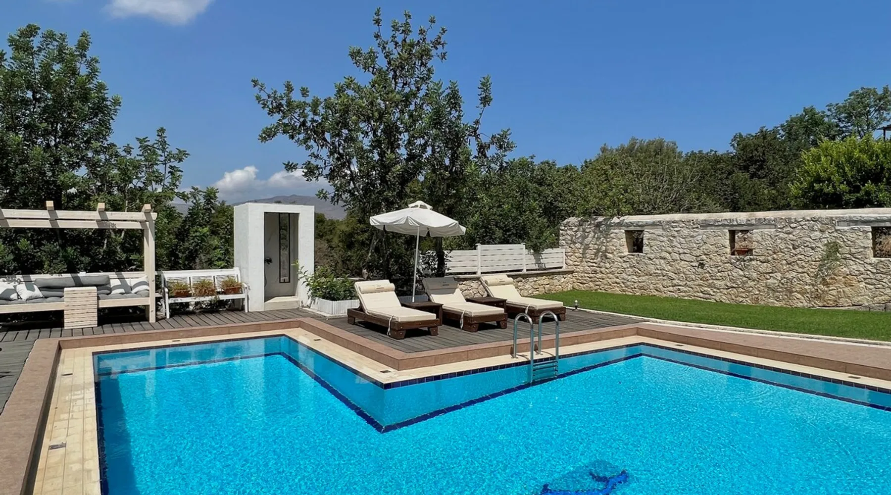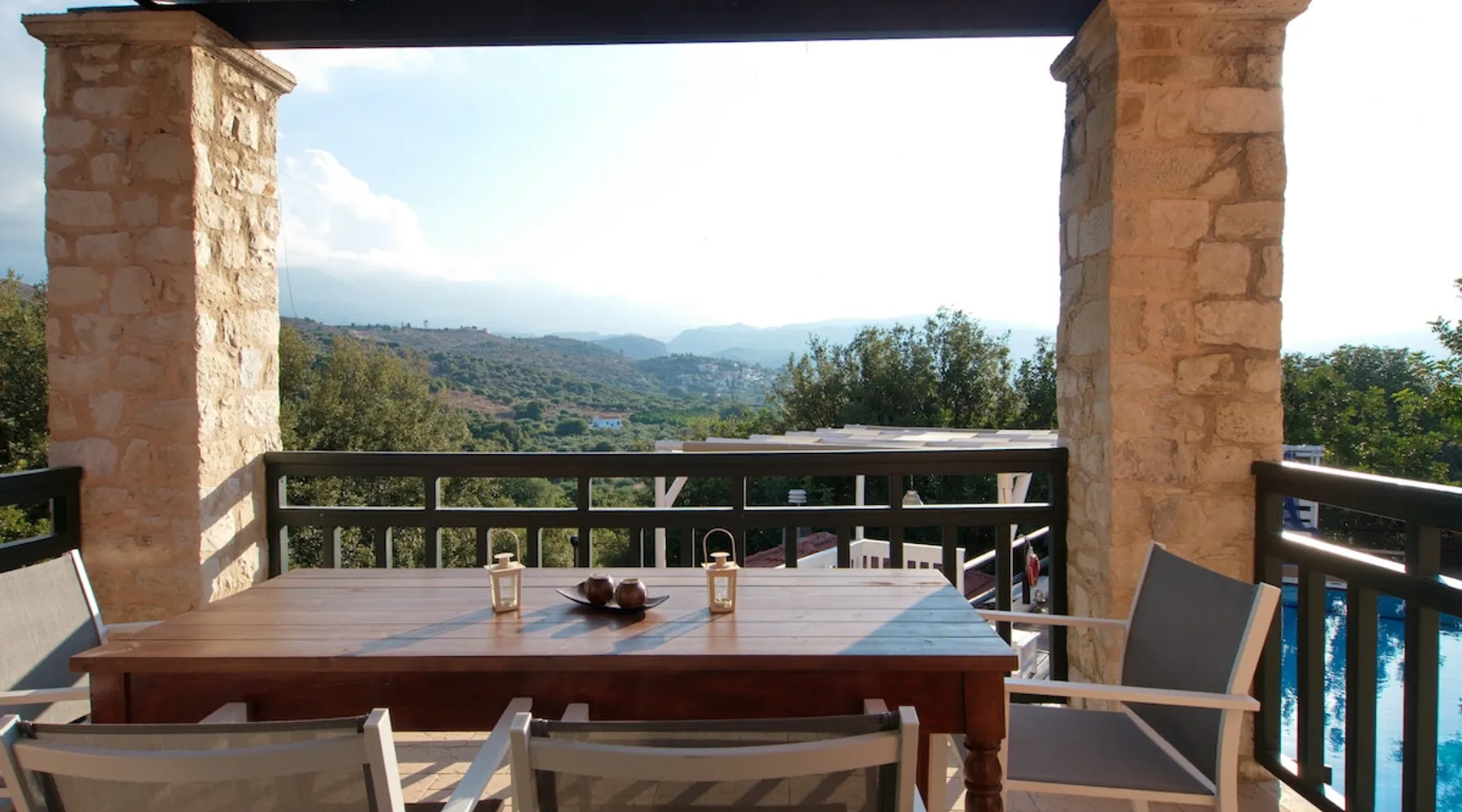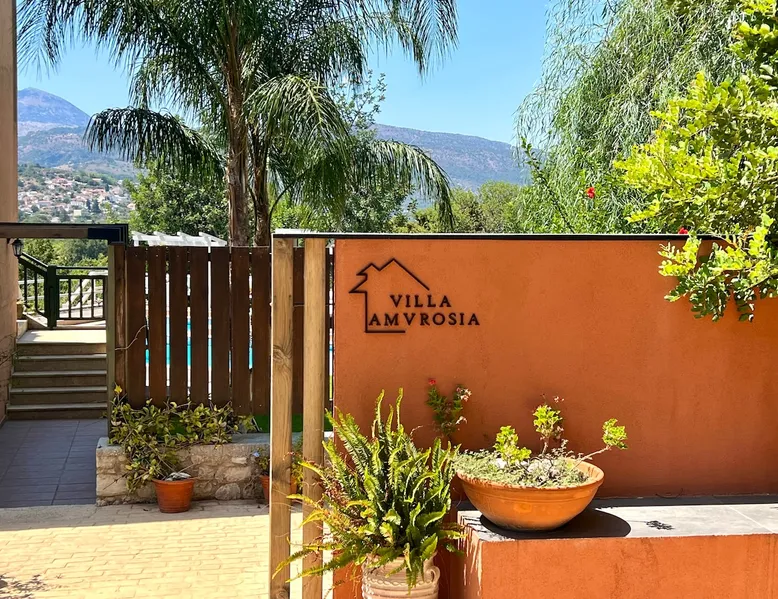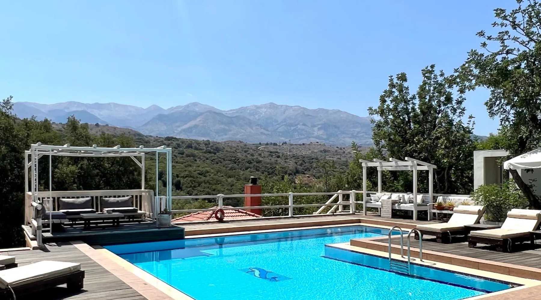 "Private Villa with Outside Pool and heated* indoor Pool, Stroll to Village" A sophisticated and charming Villa with the extravagant addition of an indoor pool, and with matchless outside space. A gorgeous L shaped pool is set into the beautifully furnished deck which, thanks to its hillside setting, is built at treetop level with views of the village of Stylos perched on the lower slopes of the dramatic White Mountains. The space Villa Amvrosia, Armeni, Crete A sophisticated and charming Villa with the extravagant addition of an indoor *heated jacuzzi pool on the lower level, the true worth of Villa Amvrosia is in its matchless outside space. A gorgeous L shaped pool is set into the beautifully furnished deck which, thanks to its hillside setting, is built at treetop level with views of the village of Stylos perched on the lower slopes of the dramatic White Mountains. A second, lower deck is set in a small copse and furnished with table tennis, hammock and a swing seat beside a spacious fully equipped barbecue kitchen and dining area. The villa's landscaped gardens have been chiseled out of the stony Cretan hillside and there’s even a pretty aviary holding a host of small birds at the entrance. Location Villa Amvrosia sits on a hillside on the edge of the small and charming village of Armeni where there is a choice of tavernas, a coffee shop, minimarket and butcher/deli. There are deliveries of fresh, locally baked bread to the small cafenion of Michael's in the centre. Just 4.3 kms away, the low key seaside resort of Kalyves has lovely shallow shelving sandy beaches and a good choice of tavernas by the waters edge. Beyond Kalyves is the next seaside village of Almyrida which again has shallow waters and sandy beaches plus numerous tavernas and cafes. Chania’s Venetian Harbour is easily reached, approx 20kms away. Outside Villa Amvrosia Swimming pool - 9.10m x 7.9m L shaped swimming pool with sloping entry. Depth, 0.97m to 1.60m Sunbathing deck - sunbeds, double sun bathing bed. Covered 'chill out' area - 2 sofas and table. Garden - landscaped gardens and lawns chiseled out of the stony Cretan hillside. Barbecue House - BBQ, wood oven, fridge, sink with tap, large round table and chairs, cushioned bench seating, and radio. Lower deck - table tennis, hammock, swing chair Ground floor covered dining terrace - balcony with dining table and chairs with pool and mountain views. Ground floor Covered Terrace 2 - table and chairs. (Also mentioned below - Indoor *Heated Jacuzzi Pool - step entry shallow pool with jacuzzi jets. 3.40m x 3.40m, depth 1m) Inside Villa Amvrosia Lower Ground Floor Single bedroom - 1 single bed and wardrobe. Air con Unit. Shower room - shower, hand basin, W.C. Storeroom- Washing machine. Den - desk and chairs, bench seating, books, games, door to lower deck. *Heated Jacuzzi Pool - step entry shallow pool with jacuzzi jets. 3.40m x 3.40m, depth 1m. Ground floor Villa Amvrosia Open plan living room Sitting area – L shaped comfy sofa, gall fronted fireplace, plasma TV with satellite, DVD player, French doors to dining balcony. Air Con Unit. Kitchen Area - Painted wood fitted cupboards, double sink, electric oven with ceramic hob, microwave, dishwasher and fridge freezer. Small table and chairs. Window above the sink to the garden, stable door to small covered terrace. Dining Area - Wooden table and seating for 6. Cloakroom - WC., hand basin. Covered balcony - dining table and chairs with mountain view First Floor - Villa Amvrosia Double bedroom, ensuite shower room - 1 double bed, dressing area with fitted wardrobe, windows to pool and mountain view. En suite shower, washbasin and WC. Air con unit Twin bedroom – 2 single beds, fitted wardrobes and double doors to balcony with views of olive tree terracing. Air con Unit. Family bathroom - corner bath with shower over, hand basin, WC Parking - Ample parking area next to the villa. NB* The indoor pool is heated during the cooler months of April, May & October only. Essential Information: Sleeps (Max) 5 Bedrooms 3 Shower Rooms 3 Maid Service Included Pool Private 8m x 5m A/C Included Floor Area m² 120 Booking Information: Check-In Any day (after 16:00) Check-Out Any day (before 10:00) Minimum stay 5 nights Local Facilities: Beach 4.5km Tavernas 800m Mini Market 800m Distances: Chania Airport 30 km Heraklion Airport 125 km Villa Equipment: DVD Local TV Satellite TV Dish Washer Washing Machine Hair Dryer Toaster Kettle Sun Lounger Microwave WiFi Connection Safe Table Tennis BBQ Juicer Mosquito Window Blind Filter Coffee Machine Iron & Board Pool Towels Espresso pot Fridge Freezer Hob Cooking Utensils Guest access The villa and pool is for your private use only as well as the garden. Bed linen & towels are provided as well as pool towels. The cleaner will come in during your stay & change them, depending on how many days you are staying. All of this is included in the price. Other things to note Housekeeping Your Villa will be prepared for you on arrival with fresh bath and hand towels and all beds made up. For stays of 7 nights or more - house towels will be changed every 3 - 4 days. For stays of 14 nights or more - bed linen will be changed every 7 days. Pool/beach towels - one per person for the duration of your stay. If you need a baby cot or high chair, please request when booking so we can have it in the villa for you ready. Optional chargeable services: - Second High Chair - Second Cot Note that this is a professionally run rental villa which as been licensed by the Greek National Tourist Organisation, EOT, which is required by the Greek law. This license allows the property owners to legally rent their accommodation to holiday makers, so that they comply to a set of standards and specific conditions for the safety & comfort of it's paying customers. Registration Details 1042K91003008401