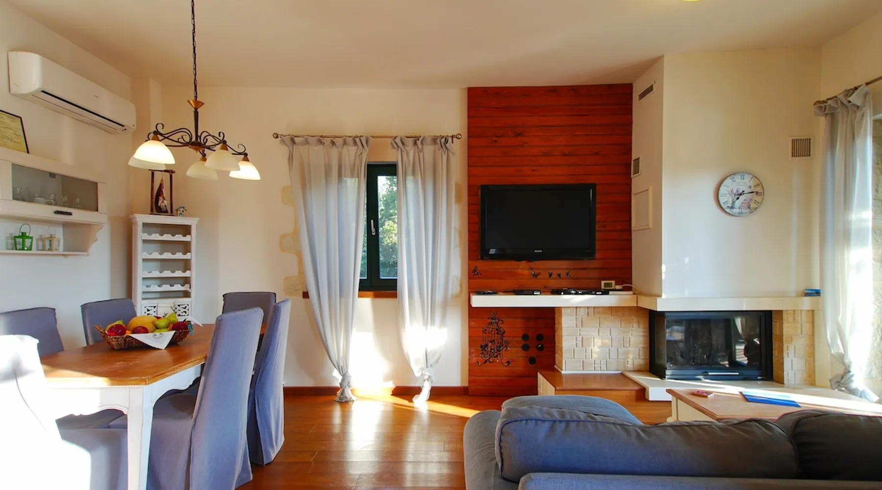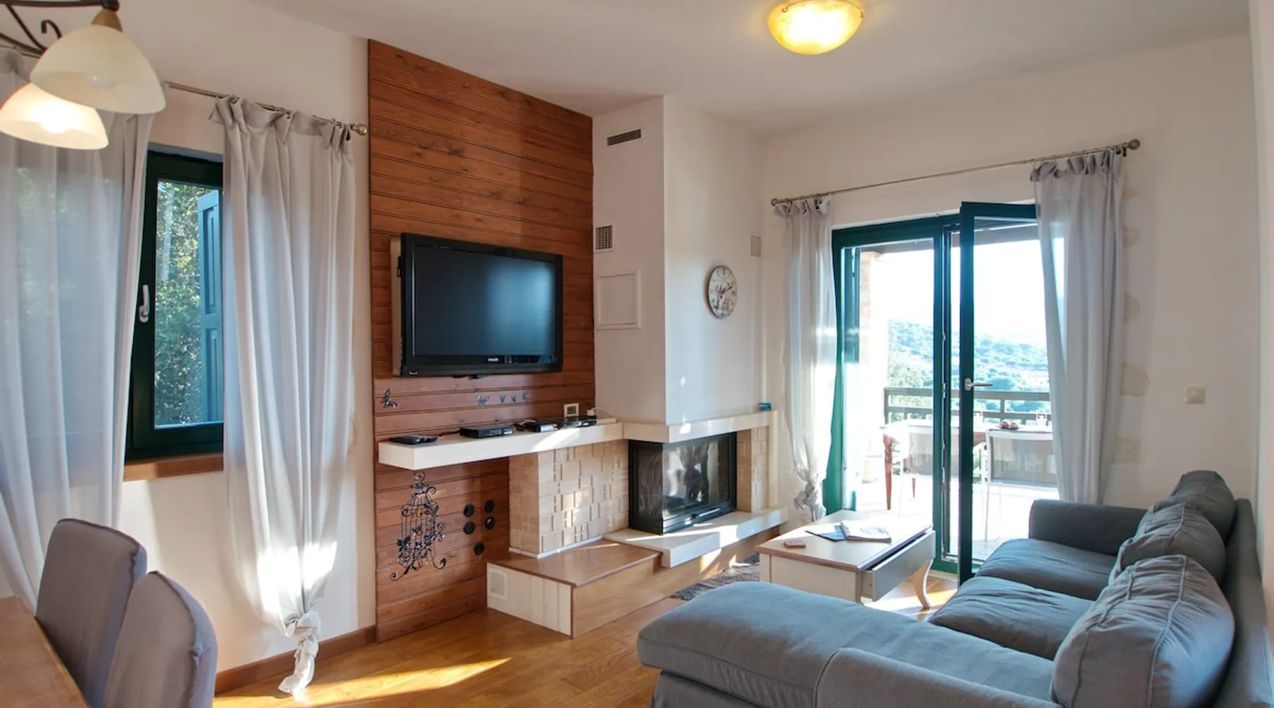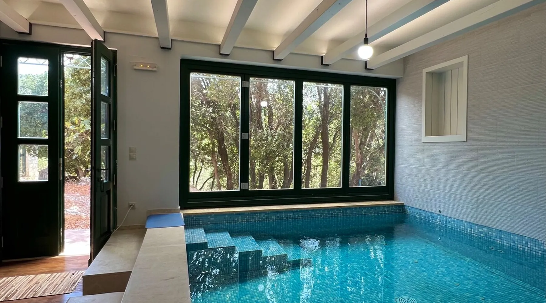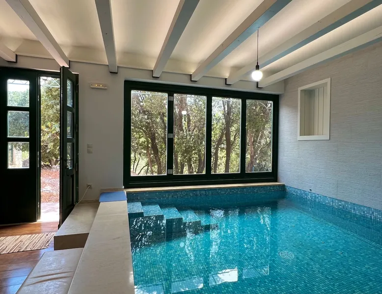 "Private Villa with Outside Pool and heated* indoor Pool, Stroll to Village" A sophisticated and charming Villa with the extravagant addition of an indoor pool, and with matchless outside space. A gorgeous L shaped pool is set into the beautifully furnished deck which, thanks to its hillside setting, is built at treetop level with views of the village of Stylos perched on the lower slopes of the dramatic White Mountains. The space Villa Amvrosia, Armeni, Crete A sophisticated and charming Villa with the extravagant addition of an indoor *heated jacuzzi pool on the lower level, the true worth of Villa Amvrosia is in its matchless outside space. A gorgeous L shaped pool is set into the beautifully furnished deck which, thanks to its hillside setting, is built at treetop level with views of the village of Stylos perched on the lower slopes of the dramatic White Mountains. A second, lower deck is set in a small copse and furnished with table tennis, hammock and a swing seat beside a spacious fully equipped barbecue kitchen and dining area. The villa's landscaped gardens have been chiseled out of the stony Cretan hillside and there’s even a pretty aviary holding a host of small birds at the entrance. Location Villa Amvrosia sits on a hillside on the edge of the small and charming village of Armeni where there is a choice of tavernas, a coffee shop, minimarket and butcher/deli. There are deliveries of fresh, locally baked bread to the small cafenion of Michael's in the centre. Just 4.3 kms away, the low key seaside resort of Kalyves has lovely shallow shelving sandy beaches and a good choice of tavernas by the waters edge. Beyond Kalyves is the next seaside village of Almyrida which again has shallow waters and sandy beaches plus numerous tavernas and cafes. Chania’s Venetian Harbour is easily reached, approx 20kms away. Outside Villa Amvrosia Swimming pool - 9.10m x 7.9m L shaped swimming pool with sloping entry. Depth, 0.97m to 1.60m Sunbathing deck - sunbeds, double sun bathing bed. Covered 'chill out' area - 2 sofas and table. Garden - landscaped gardens and lawns chiseled out of the stony Cretan hillside. Barbecue House - BBQ, wood oven, fridge, sink with tap, large round table and chairs, cushioned bench seating, and radio. Lower deck - table tennis, hammock, swing chair Ground floor covered dining terrace - balcony with dining table and chairs with pool and mountain views. Ground floor Covered Terrace 2 - table and chairs. (Also mentioned below - Indoor *Heated Jacuzzi Pool - step entry shallow pool with jacuzzi jets. 3.40m x 3.40m, depth 1m) Inside Villa Amvrosia Lower Ground Floor Single bedroom - 1 single bed and wardrobe. Air con Unit. Shower room - shower, hand basin, W.C. Storeroom- Washing machine. Den - desk and chairs, bench seating, books, games, door to lower deck. *Heated Jacuzzi Pool - step entry shallow pool with jacuzzi jets. 3.40m x 3.40m, depth 1m. Ground floor Villa Amvrosia Open plan living room Sitting area – L shaped comfy sofa, gall fronted fireplace, plasma TV with satellite, DVD player, French doors to dining balcony. Air Con Unit. Kitchen Area - Painted wood fitted cupboards, double sink, electric oven with ceramic hob, microwave, dishwasher and fridge freezer. Small table and chairs. Window above the sink to the garden, stable door to small covered terrace. Dining Area - Wooden table and seating for 6. Cloakroom - WC., hand basin. Covered balcony - dining table and chairs with mountain view First Floor - Villa Amvrosia Double bedroom, ensuite shower room - 1 double bed, dressing area with fitted wardrobe, windows to pool and mountain view. En suite shower, washbasin and WC. Air con unit Twin bedroom – 2 single beds, fitted wardrobes and double doors to balcony with views of olive tree terracing. Air con Unit. Family bathroom - corner bath with shower over, hand basin, WC Parking - Ample parking area next to the villa. NB* The indoor pool is heated during the cooler months of April, May & October only. Essential Information: Sleeps (Max) 5 Bedrooms 3 Shower Rooms 3 Maid Service Included Pool Private 8m x 5m A/C Included Floor Area m² 120 Booking Information: Check-In Any day (after 16:00) Check-Out Any day (before 10:00) Minimum stay 5 nights Local Facilities: Beach 4.5km Tavernas 800m Mini Market 800m Distances: Chania Airport 30 km Heraklion Airport 125 km Villa Equipment: DVD Local TV Satellite TV Dish Washer Washing Machine Hair Dryer Toaster Kettle Sun Lounger Microwave WiFi Connection Safe Table Tennis BBQ Juicer Mosquito Window Blind Filter Coffee Machine Iron & Board Pool Towels Espresso pot Fridge Freezer Hob Cooking Utensils Guest access The villa and pool is for your private use only as well as the garden. Bed linen & towels are provided as well as pool towels. The cleaner will come in during your stay & change them, depending on how many days you are staying. All of this is included in the price. Other things to note Housekeeping Your Villa will be prepared for you on arrival with fresh bath and hand towels and all beds made up. For stays of 7 nights or more - house towels will be changed every 3 - 4 days. For stays of 14 nights or more - bed linen will be changed every 7 days. Pool/beach towels - one per person for the duration of your stay. If you need a baby cot or high chair, please request when booking so we can have it in the villa for you ready. Optional chargeable services: - Second High Chair - Second Cot Note that this is a professionally run rental villa which as been licensed by the Greek National Tourist Organisation, EOT, which is required by the Greek law. This license allows the property owners to legally rent their accommodation to holiday makers, so that they comply to a set of standards and specific conditions for the safety & comfort of it's paying customers. Registration Details 1042K91003008401