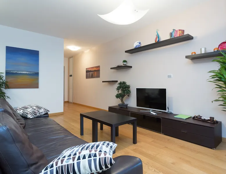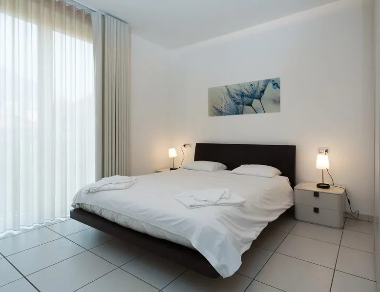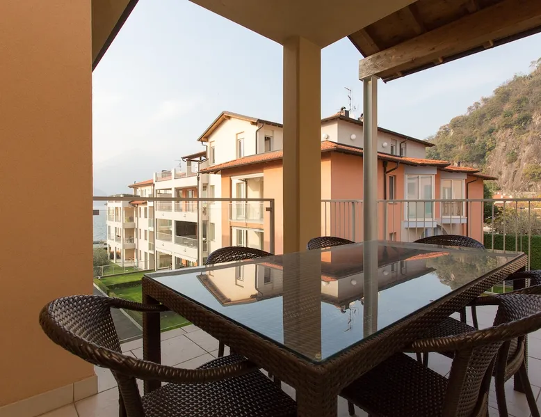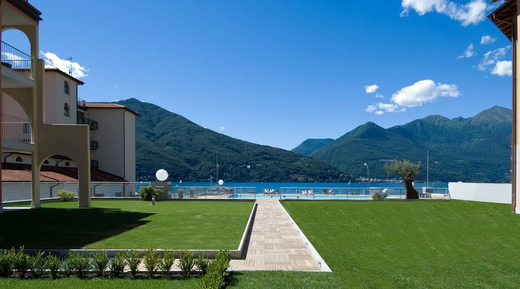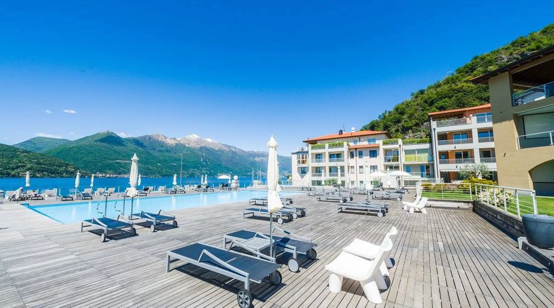 This Maccagno apartment rental is a modern two bedroom apartment located on the shores of Lake Maggiore. The apartment is well equipped and guests enjoy use of a superb swimming pool and jacuzzi, surrounded by stylish teak decking and loungers. There is a restaurant on site as well as a lively bar and cafe. The space This Maccagno apartment rental is furnished in a modern and contemporary style and is located on the second floor of the building. It has two bedrooms, one double and one which can be arranged as either a twin or double room. There are also two bathrooms, both with sink, bidet and toilet. One has a shower whilst the other has a bath tub. Finally, there is an open plan living, dining and kitchen area. The kitchen is well equipped and there is a large dining table seating six. The interior furniture is arranged to make the most of the lake view from the property. Please note that this Maccagno apartment rental can sleep five in total as there is a sofa bed in the living area. Patio doors lead from the dining area to a private terrace, equipped with table and chairs, ideal for al fresco dining. The terrace of this Maccagno apartment rental enjoys excellent views of the lake and swimming pools, perfect for watching the sun setting each evening. Please note that there is an additional energy fee of 68 euros which must be paid in cash locally upon arrival. Guest access Guests have exclusive use of the apartment and private terrace. It also has shared use of the swimming pool and jacuzzi with the other residents staying at the apartments. Other things to note This Maccagno apartment rental is one of my favourite apartments within this popular lakeside complex. Originally a three bedroom apartment, the owners instead chose to knock through one of the bedrooms to create a particularly spacious 2 bedroom property. The apartment is a short walk from a supermarket, cafes, bars and restaurants, You can even walk along the lakeside to the boat stop where you can catch a boat to all the other towns and villages on the lake. Since this Maccagno apartment rental is within walking distance of the boat stop, a car is not essential although having one will potentially allow you to explore more of the area. For those that do hire a car, the property has allocated parking in an underground car park. If you don't want to hire a car, it is easy to reach the property from Milan Malpensa airport by either train or by taxi. Just let us know if you need any help booking a taxi transfer. Registration details IT012142B49YBYRAWS