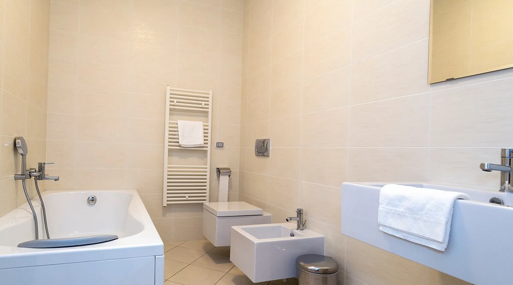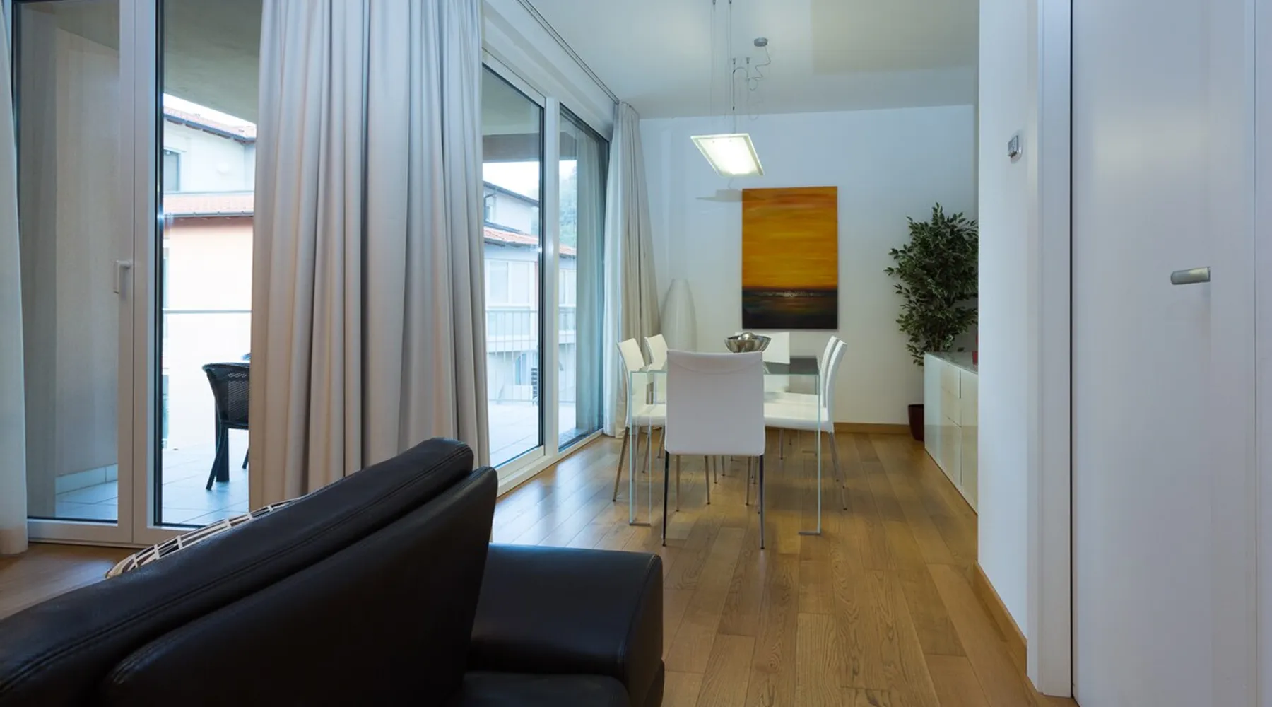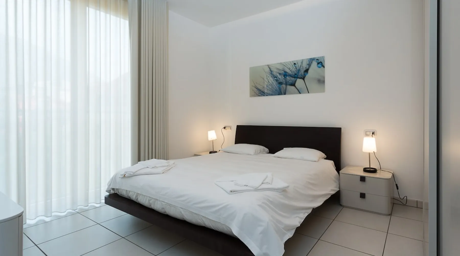 This Maccagno apartment rental is a modern two bedroom apartment located on the shores of Lake Maggiore. The apartment is well equipped and guests enjoy use of a superb swimming pool and jacuzzi, surrounded by stylish teak decking and loungers. There is a restaurant on site as well as a lively bar and cafe. The space This Maccagno apartment rental is furnished in a modern and contemporary style and is located on the second floor of the building. It has two bedrooms, one double and one which can be arranged as either a twin or double room. There are also two bathrooms, both with sink, bidet and toilet. One has a shower whilst the other has a bath tub. Finally, there is an open plan living, dining and kitchen area. The kitchen is well equipped and there is a large dining table seating six. The interior furniture is arranged to make the most of the lake view from the property. Please note that this Maccagno apartment rental can sleep five in total as there is a sofa bed in the living area. Patio doors lead from the dining area to a private terrace, equipped with table and chairs, ideal for al fresco dining. The terrace of this Maccagno apartment rental enjoys excellent views of the lake and swimming pools, perfect for watching the sun setting each evening. Please note that there is an additional energy fee of 68 euros which must be paid in cash locally upon arrival. Guest access Guests have exclusive use of the apartment and private terrace. It also has shared use of the swimming pool and jacuzzi with the other residents staying at the apartments. Other things to note This Maccagno apartment rental is one of my favourite apartments within this popular lakeside complex. Originally a three bedroom apartment, the owners instead chose to knock through one of the bedrooms to create a particularly spacious 2 bedroom property. The apartment is a short walk from a supermarket, cafes, bars and restaurants, You can even walk along the lakeside to the boat stop where you can catch a boat to all the other towns and villages on the lake. Since this Maccagno apartment rental is within walking distance of the boat stop, a car is not essential although having one will potentially allow you to explore more of the area. For those that do hire a car, the property has allocated parking in an underground car park. If you don't want to hire a car, it is easy to reach the property from Milan Malpensa airport by either train or by taxi. Just let us know if you need any help booking a taxi transfer. Registration details IT012142B49YBYRAWS