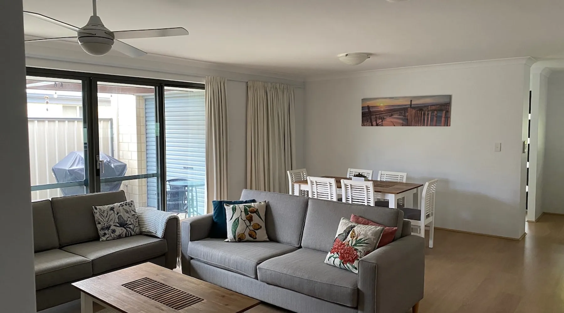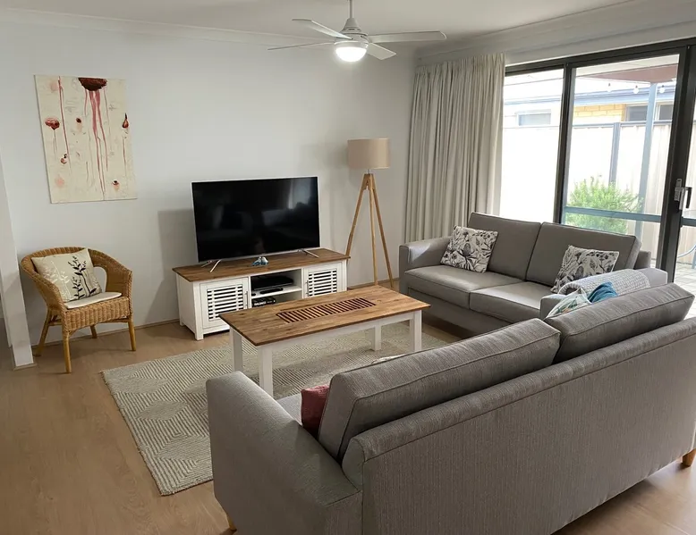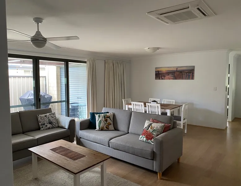 Golfers Retreat or Beach Getaway - you can enjoy both! This 3 bedroom, 2 bathroom home sleeps 6 and is just perfect for your Mandurah holiday. Reverse cycle aircon in family/dining area & bedrooms.Two bedrooms have queen beds both with built in robes and ceiling fans while third bedroom has trundle bed in single size, plus desk. There is a Porta cot with linen that can be set up, plus a high chair and stroller if needed. Quality bed linen, pillows, doonas, bath & beach towels are provided. The space Kitchen has dishwasher, plenty of appliances and a small supply of pantry staples to get you started. Living area has reverse cycle air con plus ceiling fan for your comfort. Free WIFI, large screen Smart TV, includes Netflix & Prime Video, DVD player & some dvds, books & board games for your enjoyment. Bedrooms have reverse cycle air conditioning, plus bedrooms 1 & 2 have ceiling fans for your comfort. Small patio area has gas BBQ, shade sails and outdoor setting. Undercover garage with access to inside has room for two cars. Meadow Springs Golf & Country Club is just a two minute walk or head to San Remo beach to relax - just a four minute drive to safe swimming at the Mandurah Surf Life Saving local beach. A short walk to Meadow Springs Shopping Centre has all you need during your stay - Coles, Liquorland, Chemist, newsagent, hairdresser & barber, butcher, bread shop, petrol station, medical centre and a variety of takeaway foods to choose from including pizza, fish & chips, burgers and chicken. Lakeland’s Shopping centre is a 6 minute drive north also having plenty of specialty shops, while Mandurah Forum is a similar distance and is Mandurah’s major shopping outlet. Leave yourself plenty of time to relax with all the local area has to offer. Take a cruise to see the dolphins or at Christmas enjoy the highly recommended cruise along the canals to see the best Christmas Lights lit up. Nearby cinema shows all the latest movies, or stop for a break at local cafes & eateries. Mandurah boasts the annual Crab Fest in March, plus fishing and crabbing in season so more reasons to take a break! Guest access Guests have entire use of the property for their stay Other things to note Quiet area , close to shops and public transport Registration Details STRA6210BBU8IUDG
