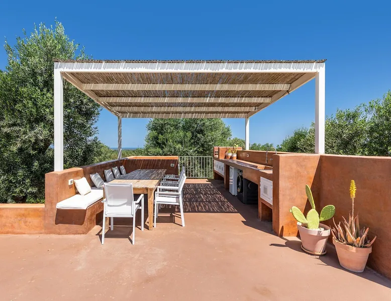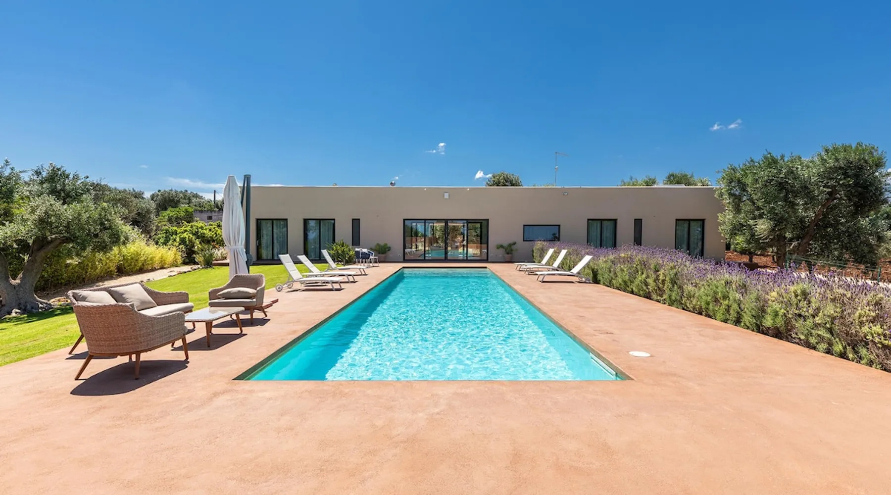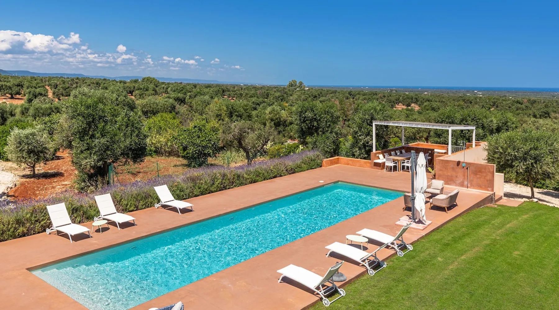 Villa Malusida is a beautiful luxury home with sea view and pool to rent for holidays in Puglia is 4 km from the sea. Consists of 3 bedrooms, well-equipped with air-conditioning, wireless internet, accomodates up to 6 people. The space Villa Malusidais a brand new charming house for rent in Carovigno for your exclusive holiday in Puglia. The beautiful pool, the view on the sea and the olive groves, the beaches within a few minutes, all the comforts of a modern hotel makes it the perfect place where to spend relaxing and fun. The luxury holiday house, just a few minutes from Ostuni, is equipped with air conditioning, internet wi-fi, 3 bedrooms, alarm system and heating, but also washing machine, dishwasher, bbq, library, hair-dryer, electric oven, microwave, stereo. Offers sleeps up to 6 people. swimming Pool, internet, barbecue, sea view, and sleeps 6 people: everything that you want to Villa Malusida Villa Malusidais a modern villa, with comfortable rooms and super-equipped, immersed in the a sea of olive trees, manicured, from where you can admire the view over the nearby beaches of the Adriatic Sea, distant a few minutes. The large windows allow you to always have the view full of light, nature and beauty. The long swimming pool 60 square meters ends with a lovely gazebo furnished for dining and dine al fresco, in addition to prepare excellent grilled and the bbq. The interiors of the villa are well arranged, beautifully furnished and decorated with design elements. The study color varies gently, harmonising the separation between the day area and night area. start with a large living room with a sofa facing the pool, with fireplace. Next, open on the living room, there is the an equipped kitchen, and spacious. From the living room you exit on the shady veranda by a canopy and furnished with a table and wooden benches. The sleeping area of the Villa Malusidais formed from 3 double bedrooms, one with en suite shower bathroom. All the rooms have direct exit to the garden or in the pool area. In the service of the rooms there is a second bathroom with shower. surroundings Villa MalusidaCarovigno Villa Malusidais in an exceptional location, between the countryside of Carovigno and Ostuni, the famous White City. Salento. The sea of Torre Santa Sabina is only 3 kilometres, while the Natural Reserve of Torre Guaceto is just 7 kilometers. The city of Carovigno, with the charm of its history that surrounds the beautiful historic centre, is located about 3 kilometres from the villa. There you will find all the main services. - After reservation, you can fix check-in (from 4pm to 8pm) and check-out (from 8.30 am to 10am). An extra payment of euro 50 is required for late check-in upon request (from 8pm to 12am). - Upon your arrival you will be required to sign the tourism contract written in Italian language. - The tourist tax, WHERE APPLICABLE,is not included in the price and will be applied according to the municipal regulations. - First Bed linen/towels kit included in total price. Mandatory change at euro 25 per person for stays longer than 10 nights (1 change), for stays longer than 17 nights (2 changes) and for stays longer than 24 nights (3 changes). - Pool available from May to October. - Extra cleaning fee for pets euro 100 to pay upon arrival. - It is MANDATORY to sort and dispose the waste. If not, it will be withheld penalty fee of 80 euro for up to 10 kg of waste + 50 euro for each additional kg. - It is MANDATORY to leave the stove and cutlery clean (service not included in the price of final cleaning). If not, it will be withheld a penalty fee of 40 euro. - Please note that upon arrival the payment of the deposit of euro 1500 is required by credit card, cash or instant transfer. This amount will be refunded within 7 days of check-out, subject to receipt of the damage. Other things to note - After reservation, you can fix check-in (from 4pm to 8pm) and check-out (from 8.30 am to 10am). An extra payment of euro 50 is required for late check-in upon request (from 8pm to 12am). - Upon your arrival you will be required to sign the tourism contract written in Italian language. - The tourist tax, WHERE APPLICABLE,is not included in the price and will be applied according to the municipal regulations. - First Bed linen/towels kit included in total price. Mandatory change at euro 25 per person for stays longer than 10 nights (1 change), for stays longer than 17 nights (2 changes) and for stays longer than 24 nights (3 changes). - Pool available from May to October. - Extra cleaning fee for pets euro 100 to pay upon arrival. - It is MANDATORY to sort and dispose the waste. If not, it will be withheld penalty fee of 80 euro for up to 10 kg of waste + 50 euro for each additional kg. - It is MANDATORY to leave the stove and cutlery clean (service not included in the price of final cleaning). If not, it will be withheld a penalty fee of 40 euro. - Please note that upon arrival the payment of the deposit of euro 1500 is required by credit card, cash or instant transfer. This amount will be refunded within 7 days of check-out, subject to receipt of the damage. Registration Details IT074002C200080816