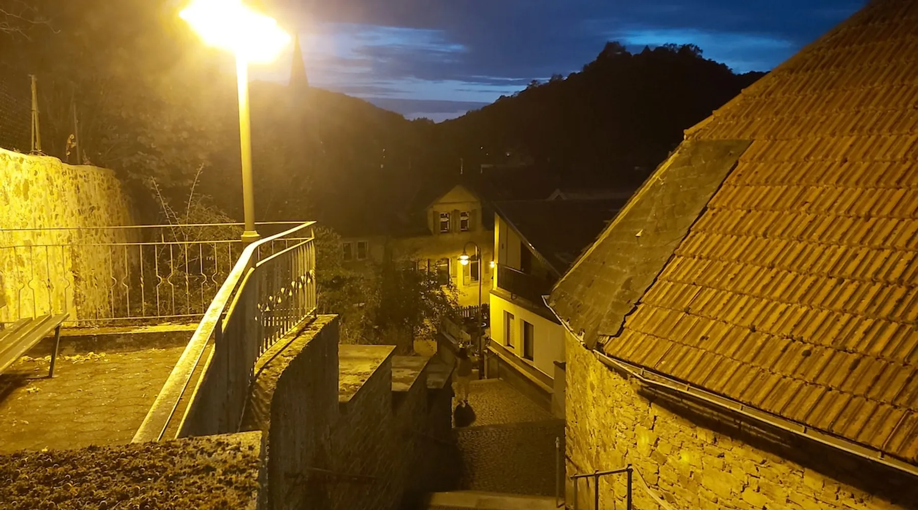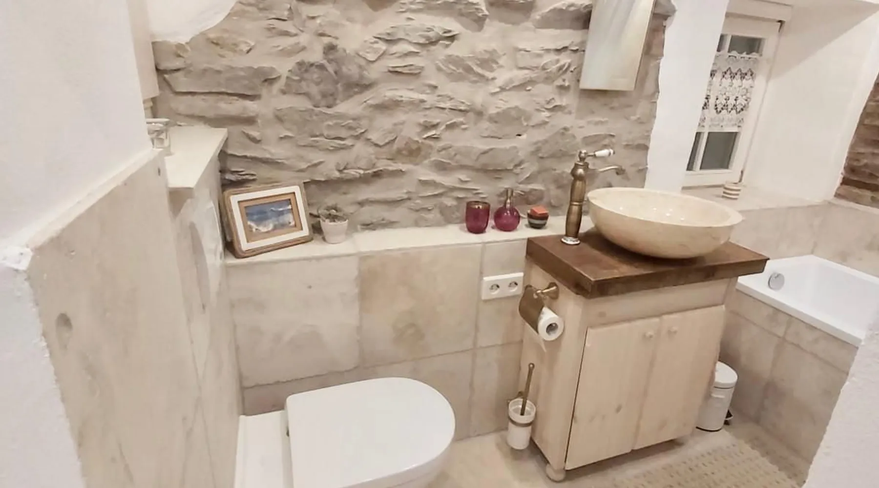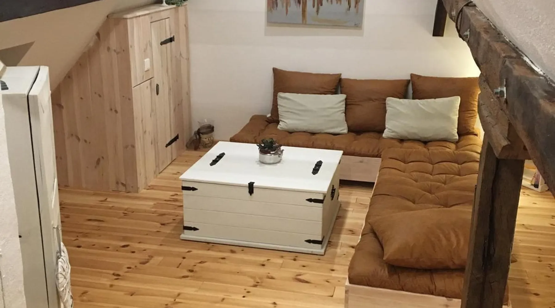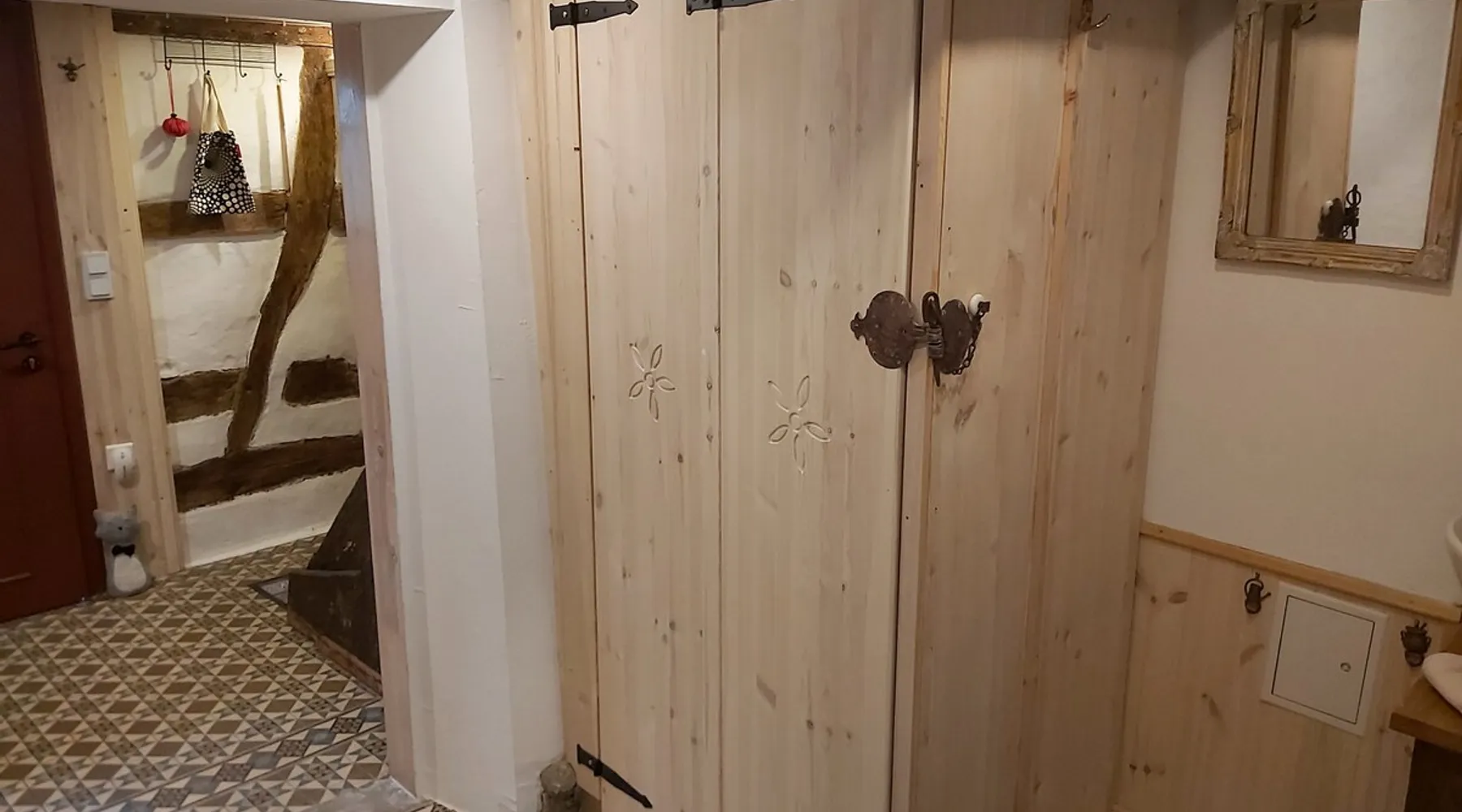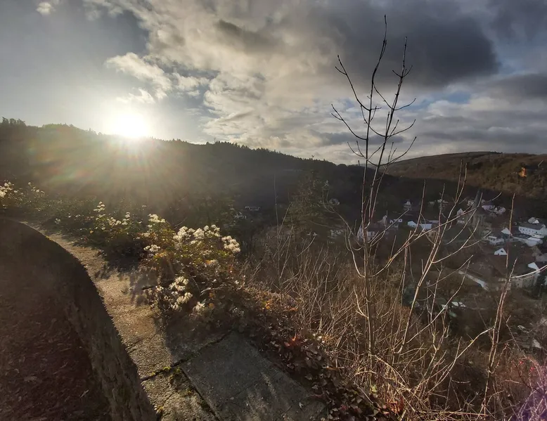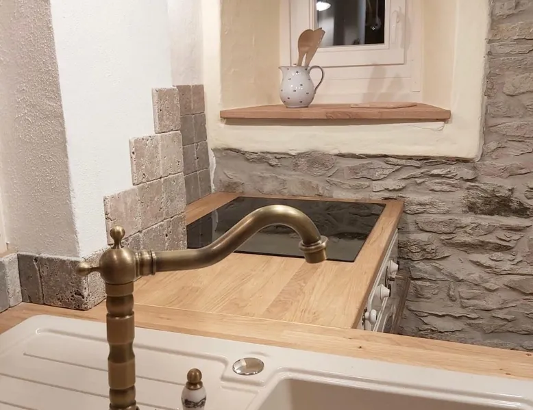 Treat yourself to a visit to our half-timbered house Anno 1690, renovated in 2019, in the very quiet old town of Stromberg, right by the Schlossbrunnen fountain below the 3 castles. The kitchen on the 2nd floor is excitingly located in the former battlement of the city wall. The medieval building still has the typical steep oak stairs and the ceiling height is outside the norm. Cozy stay in the house and as a starting point for hikers & bikers....for relaxation and adventure... The space First floor: Entrance area with access to the courtyard and sun terrace on the historic vaulted cellar. NEW!!! Another bedroom with a French double bed behind the 1.5-meter-thick city wall. NEW!!! Toilet on the first floor. 2nd floor: Kitchen, dining and living area with fireplace: The good room 3rd floor: Bedroom with separate dressing area, hallway with secretary. In addition, the marble bathroom with sitting and shower tub. 3rd floor: Attic studio can be used as a living room as well as a bedroom. Guest access You have the entire living area and the sun terrace all to yourselves. Other things to note Beds are available for 6 people; 2 bedrooms with double beds and in the living room 2 sofa beds as single beds.