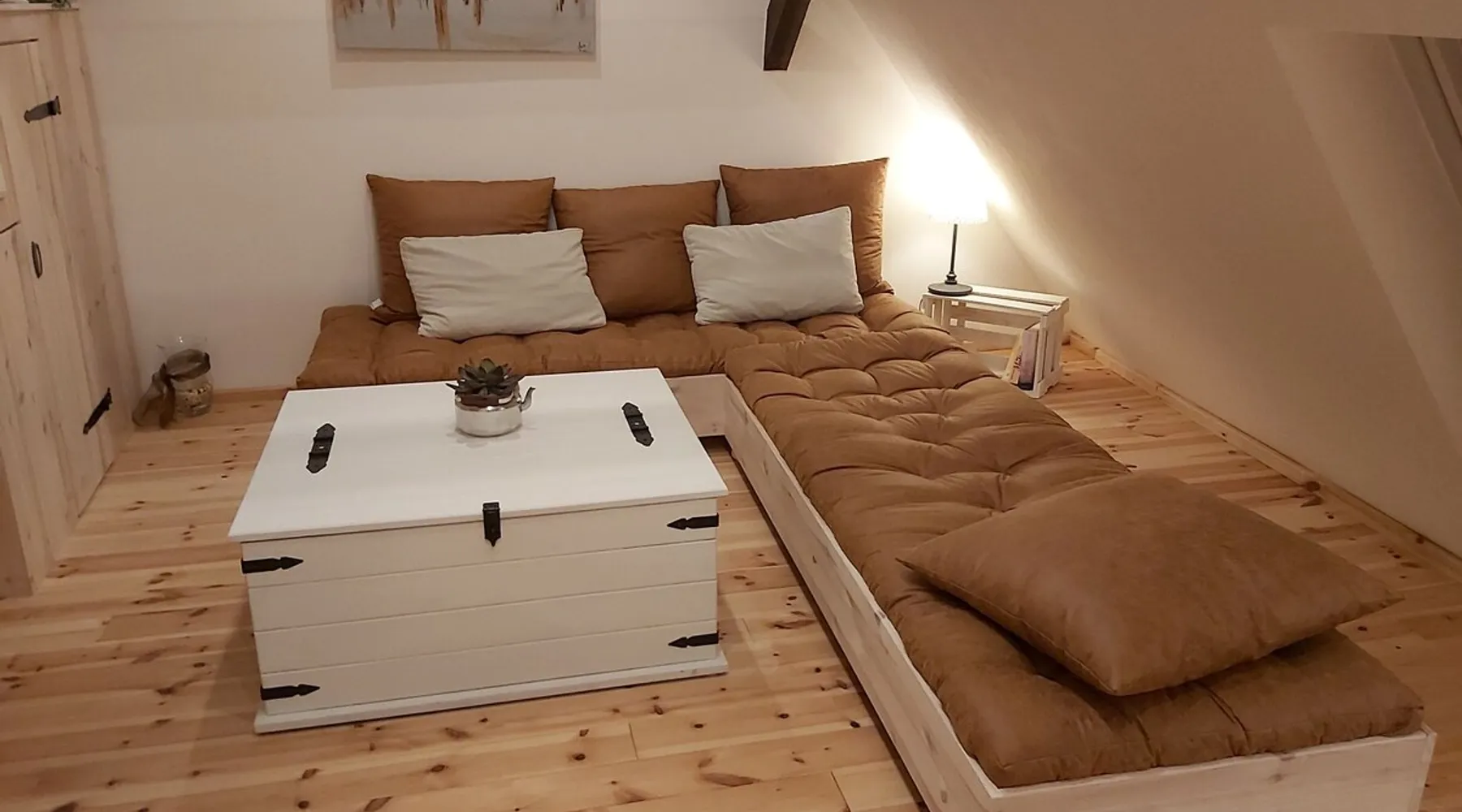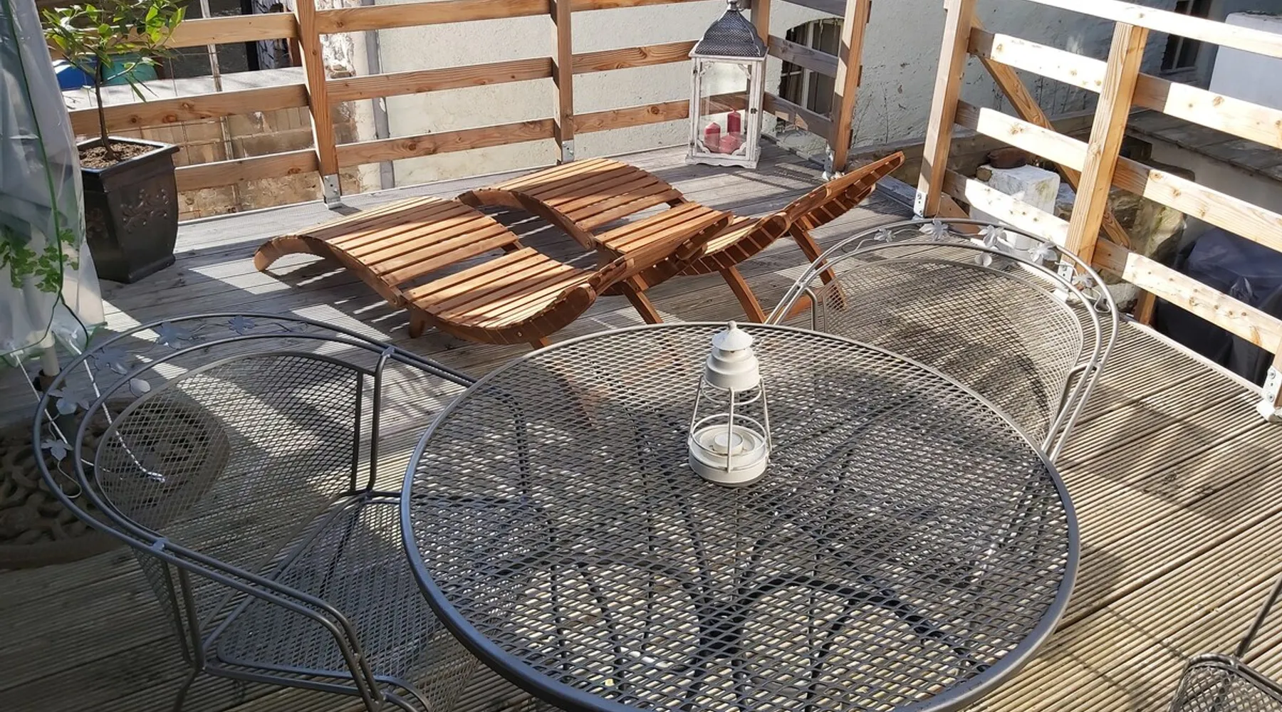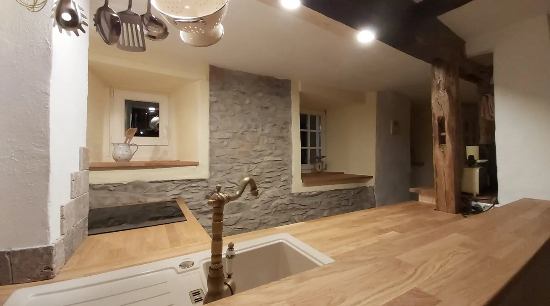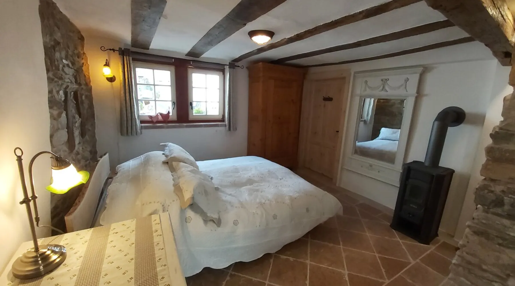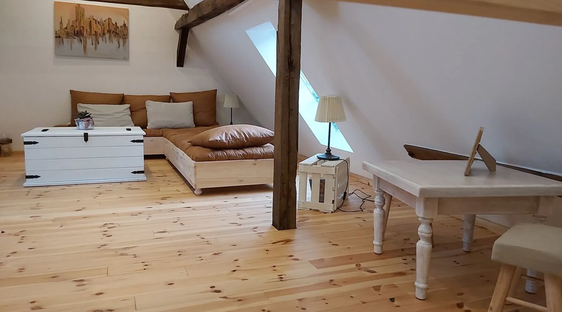 Treat yourself to a visit to our half-timbered house Anno 1690, renovated in 2019, in the very quiet old town of Stromberg, right by the Schlossbrunnen fountain below the 3 castles. The kitchen on the 2nd floor is excitingly located in the former battlement of the city wall. The medieval building still has the typical steep oak stairs and the ceiling height is outside the norm. Cozy stay in the house and as a starting point for hikers & bikers....for relaxation and adventure... The space First floor: Entrance area with access to the courtyard and sun terrace on the historic vaulted cellar. NEW!!! Another bedroom with a French double bed behind the 1.5-meter-thick city wall. NEW!!! Toilet on the first floor. 2nd floor: Kitchen, dining and living area with fireplace: The good room 3rd floor: Bedroom with separate dressing area, hallway with secretary. In addition, the marble bathroom with sitting and shower tub. 3rd floor: Attic studio can be used as a living room as well as a bedroom. Guest access You have the entire living area and the sun terrace all to yourselves. Other things to note Beds are available for 6 people; 2 bedrooms with double beds and in the living room 2 sofa beds as single beds.