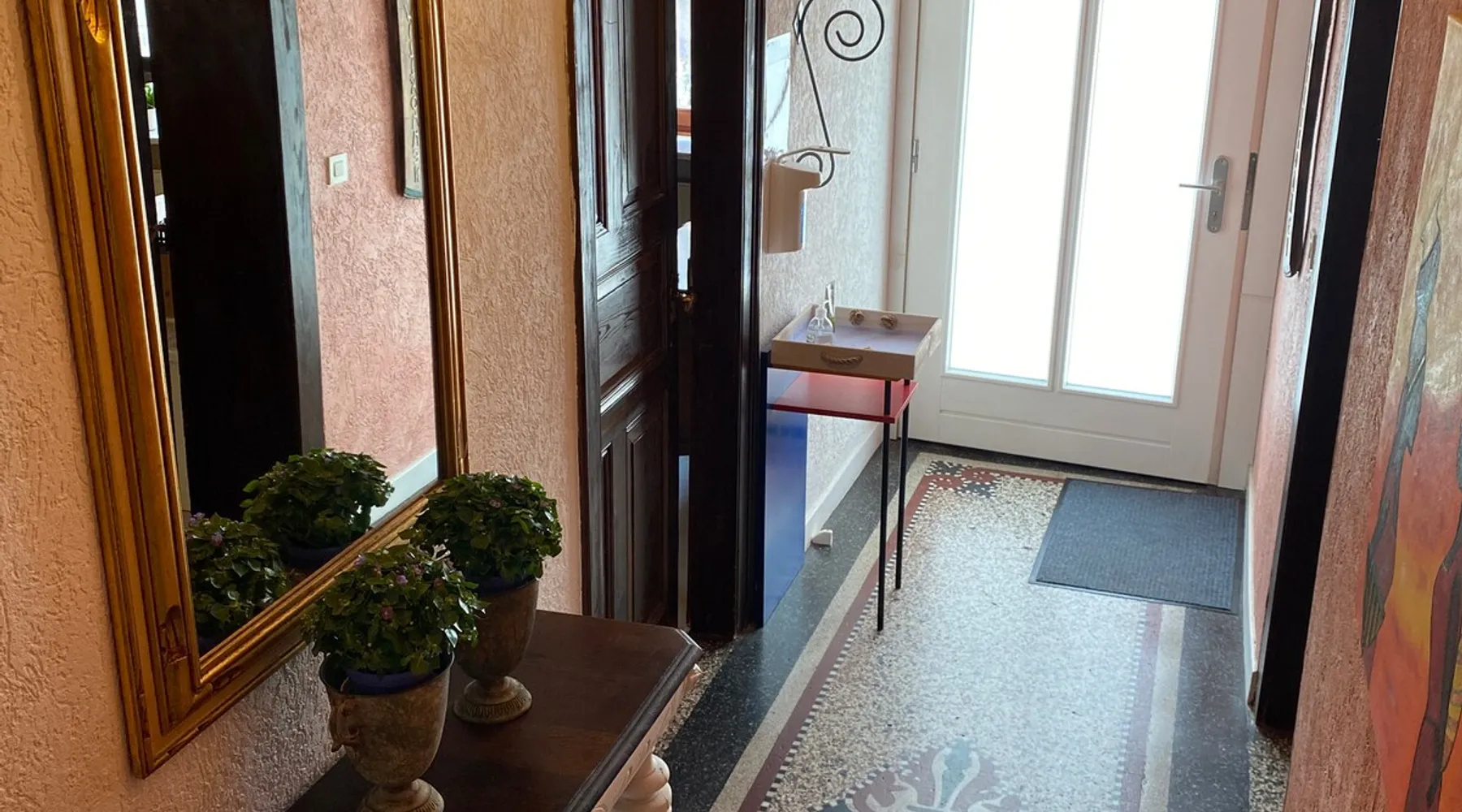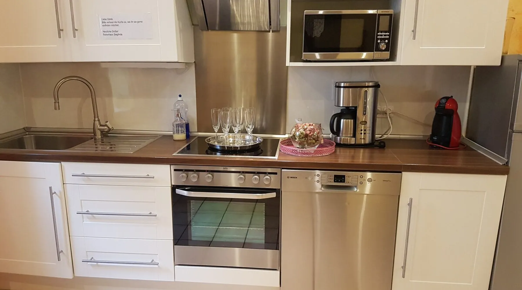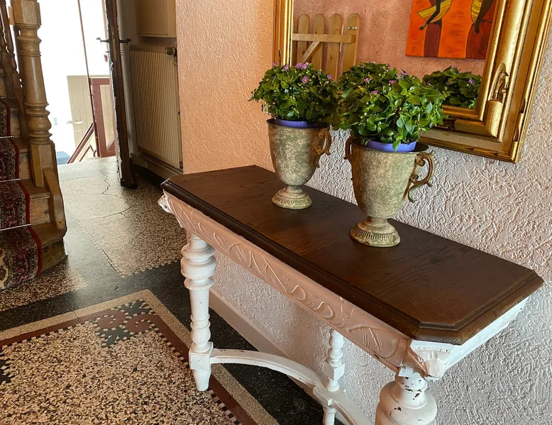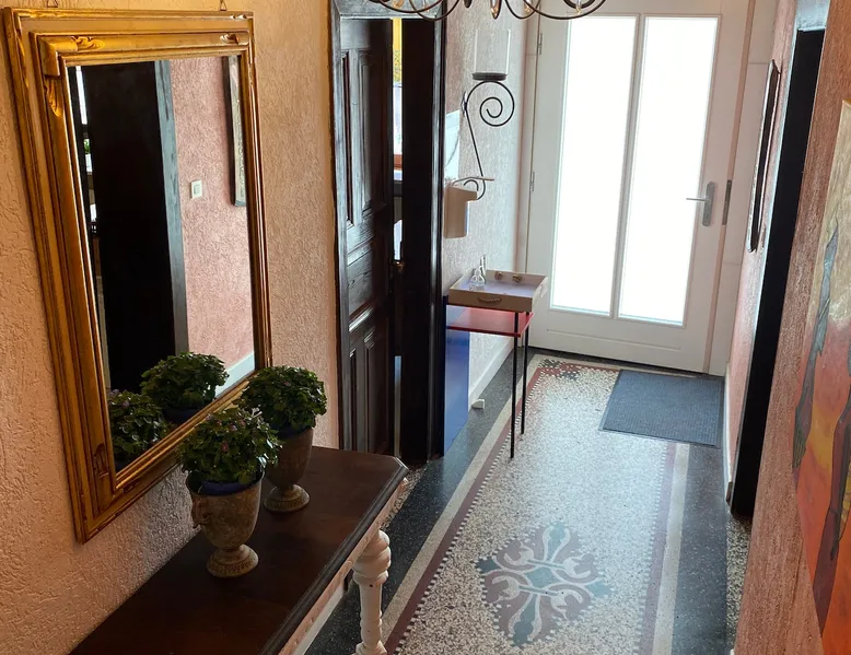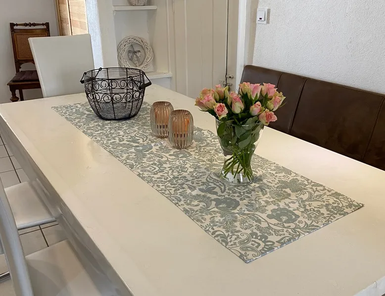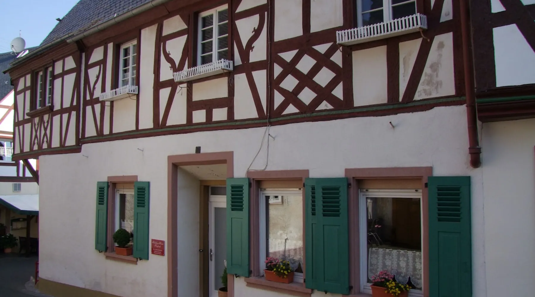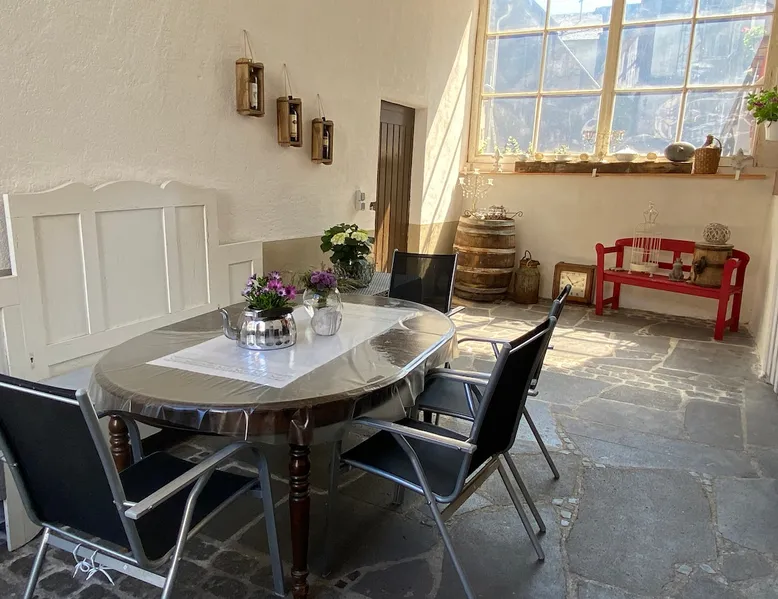 Our timbered house is almost 300 years old.Lovely renovated Romantisches 300 jähriges Fachwerkhaus an der Mittelmosel. In der Nähe von Bernkastel, Trier und Cochem. Unser Ferienhaus bietet Ihnen auf 170m2 und 2 Etagen viel Platz. Im Windgeschützten Hof / Terasse können Sie gerne relaxen mit einer Flasche Wein. Ein Grill steht für Sie bereit! Für große und kleine Kinder befindet sich ein Kicker im Hof und freies WI FI. Wir sind gut eingerichtet für Kinder (Babybett, Hochstuhl, Wickelkommode). Our timbered house is almost 300 years old. Lovely renovated, it will soon make you forget your everyday stress. The house offers about 170 sqm on 2 floors. On the ground floor you can find an open and well-equipped kitchen, including a dining table; a comfortable living room furnished with a lounge and a bathroom with tub and WC. On the first floor the house offers you 2 larger bedrooms with double-beds as well as 2 single bedrooms with single beds and a daybed. A bathroom with shower and WC is also part of the first floor. Additionally, a wind-protected patio, paved with virgin stone, lets you have wonderful relaxing moments. The small fountain rounds up the pleasure of having a bottle of wine outside. Only a few steps apart, you can find the Moselle promenade and enjoy the great view over the vineyards and the huge rocks. The entire house is available to our guests with a beautiful sheltered courtyard.Parking is also available at the house. Dear guests, we are a mixed german-african family. You can always feel free to contact us in English. In order to offer you the most comfortable stay possible, we will always support you whenever you have questions or if you want to plan a trip. We just live few meters from the Holiday Home. No matter if you wish to rent a bike, to be supplied by a bakery or to receive a nice bottle of wine – we are always there for you! We are looking forward to your arrival and we happily welcome you to our family-friendly home. Our neighbors are very friendly. Ingrid and Olaf Melcher have an excellent restaurant opposite. They are very Tourists friendly and speak perfect English. We are a small village community and all people are friendly and helpful. You can rent a car on the airport. We have special Buslines in Summer. Erden - our home town and its sights Our home “town” is located at the Central Moselle („Mittelmosel“). Erden is a traditional wine growing village that offers a number of possibilities for tourists. Its about 440 inhabitants are always ready to have a small talk in the streets. They underline the village centre's cosy atmosphere of the narrow cobblestoned streets in between the timbered houses. Romantic patios round up the charm of the „good old times“ that is still alive here and that takes the visitor to a journey through time. It is the name of our village that already takes you back to the past – the original name „Arduena“ refers back to a Celtic foundation meaning „steep ridge“. The first wine press to be found in Erden originates from the third century AD. It proves the wine growing activities of the Romans who were the first to produce wine at Erden's most famous wine growing site, the „Erdener Treppchen“ (little Erden stairs). Two Roman wine presses could be exposed and thus offer the possibility of experiencing Erden's early history It is to the fame of the site „Erdener Treppchen“ that our village owes its popularity. Its grapes grow on the steep slopes of shale on the opposite bank of the Moselle. Furthermore, Erden houses the wine-growing sites „Bußlay“, „Herrenberg“ and „Prälat“. Erden - our area and possible activities The river Moselle offers magnificent bike tours through the attractive landscape of its valley. On its way trough Erden it covers a distance of 118 km before it flows into the Rhine at the „German Corner“ (Deutsches Eck) in Coblenz. This part of the Central Moselle offers a Mediterranean climate, the reason for its abundant wildlife. Thanks to this, not only your cultural interests can be met, but also your wanderlust, your love for camping or for bike tours. Starting in Erden, the Moselle-biketour leads you up the river through Zeltingen-Rachtig and Graach towards the small town of Bernkastel-Kues. Down the river, you can ride through Lösnich and Kinheim-Kindel towards Traben-Trarbach. At Kinheim-Kindel you can cross the Moselle and continue your trip direction Kröv. Beautifully developed routes lead hikers through the Moselle Valley and through vineyards. The recently constructed climbing route is our highlight: A breathtaking view over the Moselle Valley accompanies all ramblers across ladders and narrow paths through the steep slopes of the Erdener Treppchen and the Prälat. The tour offers you an impressive panorama of vineyards. Additionally, day-trips to Treves, to Idar-Oberstein - the town of precious stones in the Hunsrück mountains - , to Luxembourg and to further cultural destinations are offered in Erden.
