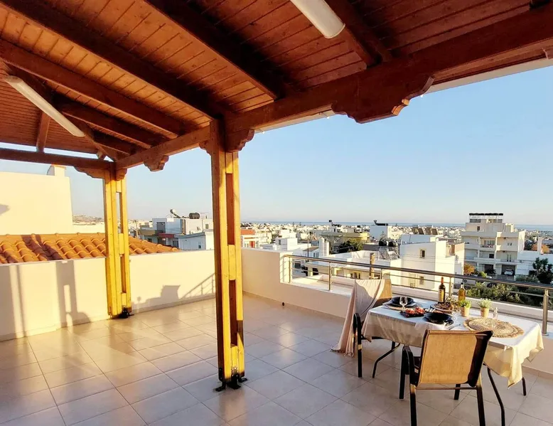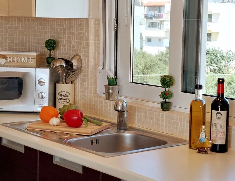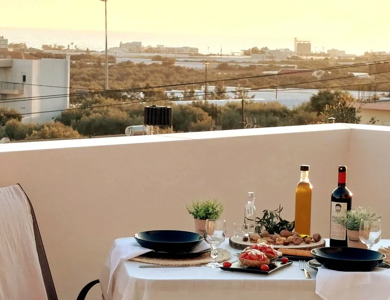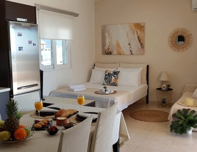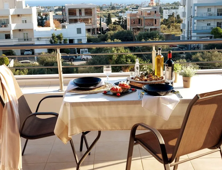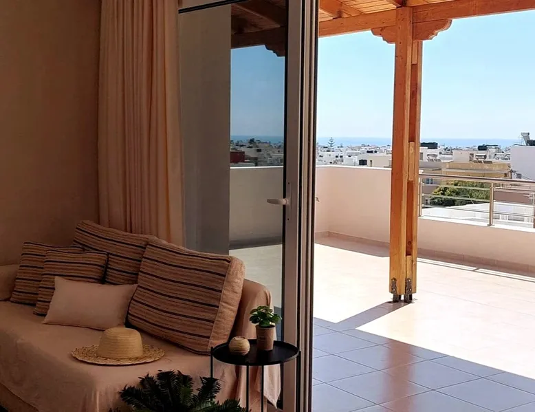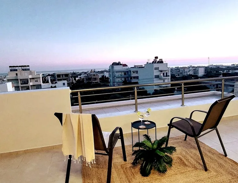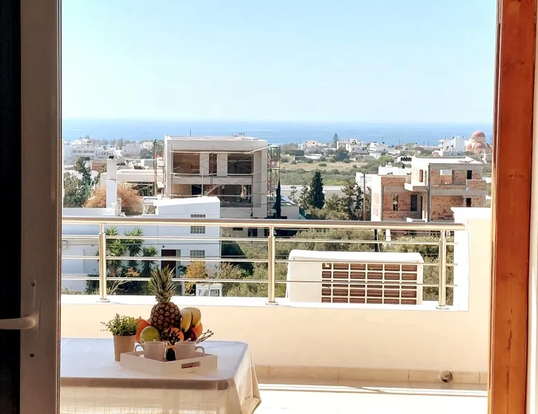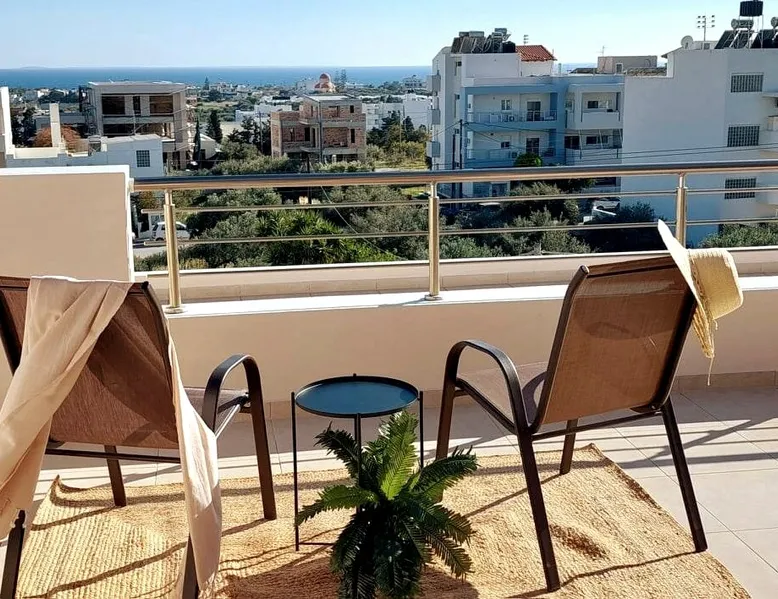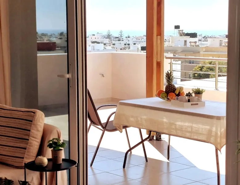 Enjoy your stay in Ierapetra in this newly built apartment with perfect view. Fully furnished a short distance from the city center.Beautiful and bright,guests can relax on the comfortable terrace overlooking the Libyan sea.Ierapetra combines montain and sea,it is the city of relaxation and tranguility.Every Saturday there is a bazaar where you can buy fresh fruit and souvenirs.It has great beaches,cafes and restaurants. We wish you a great time in our city.!!! The space The apartment is self-contained, the interior consists of a living room with a comfortable bed - smart TV and bar, air condition. The kitchen area includes a dining area, electric cooker a filter coffee machine and all the equipment is on the shelves to cook as desired. The bathroom is comfortable with shower, hair dryer and clean towels. The sleeping area is comfortable with a double bed with an anatomic mattress. On the terrace there is the dining room where you can enjoy your romantic meals with the perfect view. Guest access The apartment is located in a guiet neighborhood,with two mini markets nearby where you can buy fresh bread and fruit.It is a suitable area for walking and there is plenty of parking space on the street. Other things to note We would like to inform our potential guests that we have taken all the necessary steps and following all the Health Protocols implied by the Greek Government’s Act of Legislative Content regarding the prevention of Coronavirus, the cleaning guidelines recommended by the ECDC (European Centres of Disease Control and Prevention) as well as the United States of America CDC (Centers of Disease Control and Prevention). We are monitoring this situation closely in order to ensure that we keep all the guidelines up to date. Registration details 00000612330