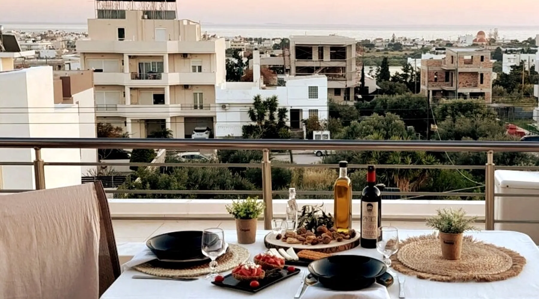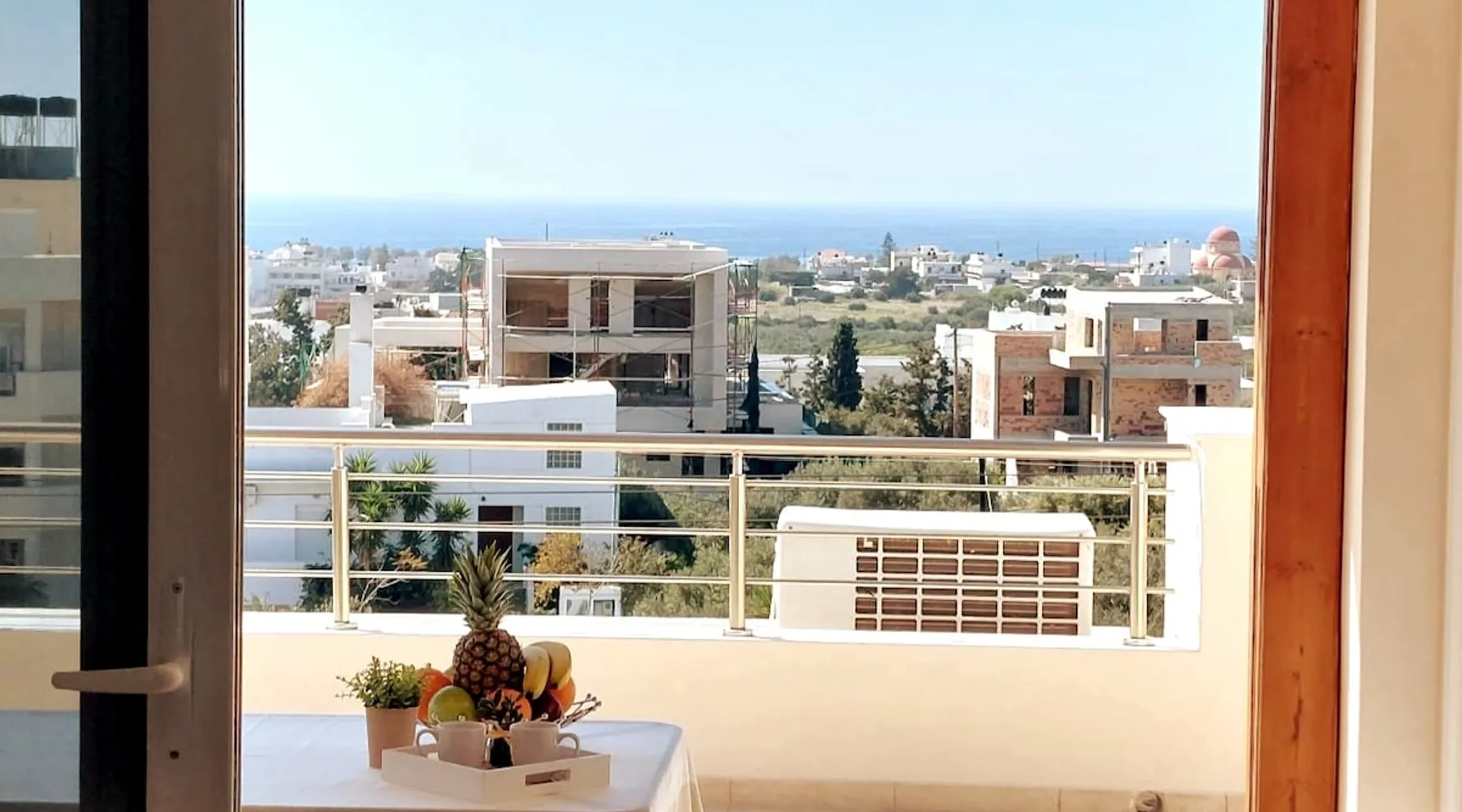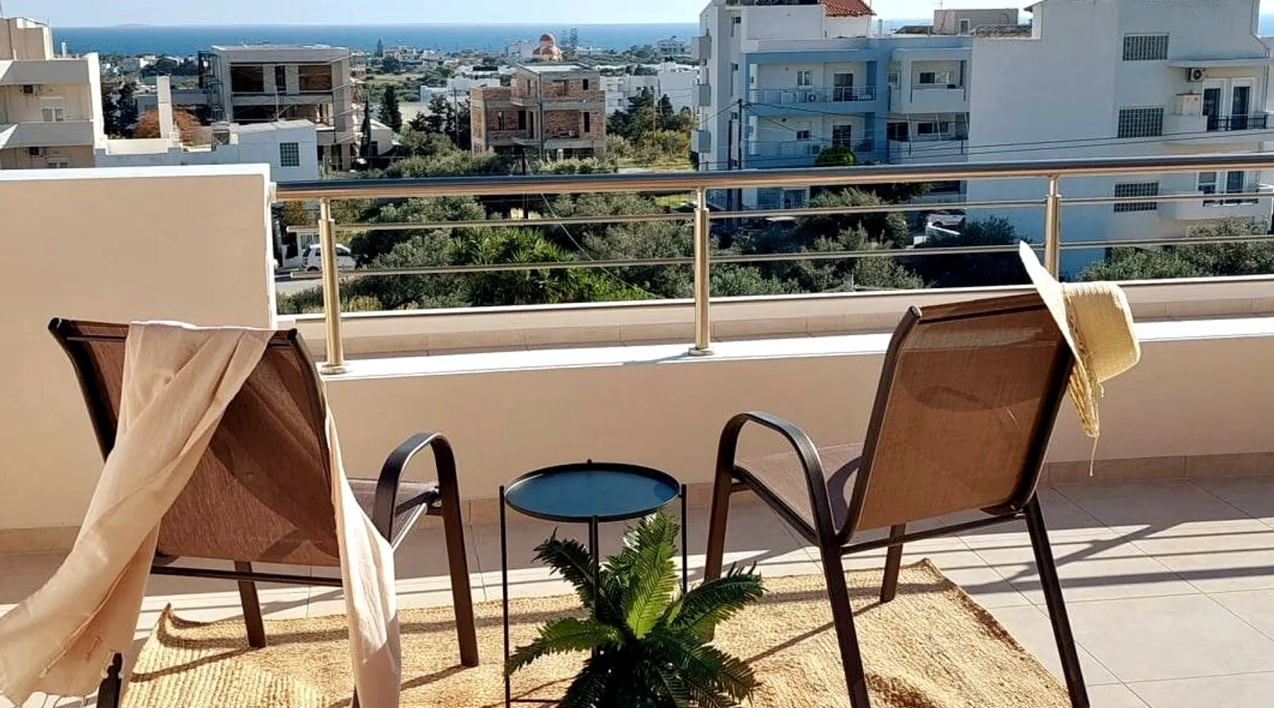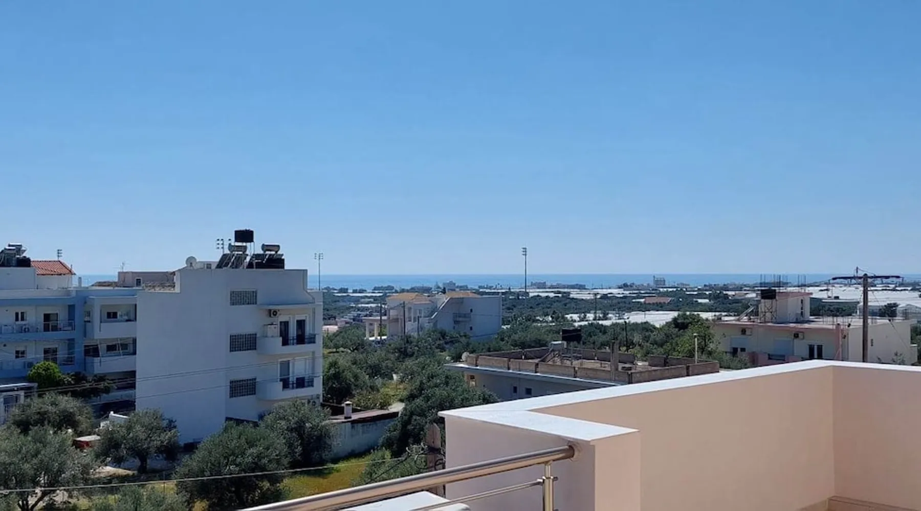 Enjoy your stay in Ierapetra in this newly built apartment with perfect view. Fully furnished a short distance from the city center.Beautiful and bright,guests can relax on the comfortable terrace overlooking the Libyan sea.Ierapetra combines montain and sea,it is the city of relaxation and tranguility.Every Saturday there is a bazaar where you can buy fresh fruit and souvenirs.It has great beaches,cafes and restaurants. We wish you a great time in our city.!!! The space The apartment is self-contained, the interior consists of a living room with a comfortable bed - smart TV and bar, air condition. The kitchen area includes a dining area, electric cooker a filter coffee machine and all the equipment is on the shelves to cook as desired. The bathroom is comfortable with shower, hair dryer and clean towels. The sleeping area is comfortable with a double bed with an anatomic mattress. On the terrace there is the dining room where you can enjoy your romantic meals with the perfect view. Guest access The apartment is located in a guiet neighborhood,with two mini markets nearby where you can buy fresh bread and fruit.It is a suitable area for walking and there is plenty of parking space on the street. Other things to note We would like to inform our potential guests that we have taken all the necessary steps and following all the Health Protocols implied by the Greek Government’s Act of Legislative Content regarding the prevention of Coronavirus, the cleaning guidelines recommended by the ECDC (European Centres of Disease Control and Prevention) as well as the United States of America CDC (Centers of Disease Control and Prevention). We are monitoring this situation closely in order to ensure that we keep all the guidelines up to date. Registration details 00000612330