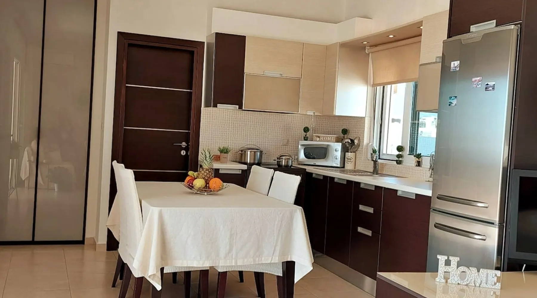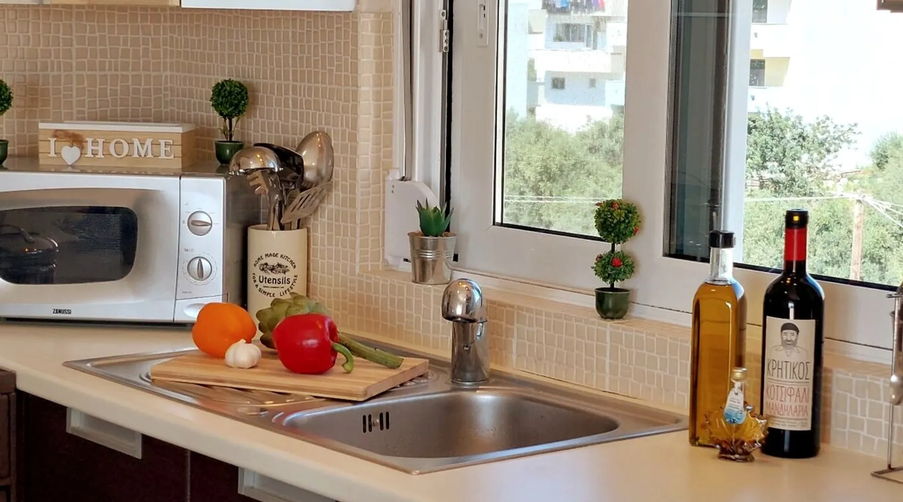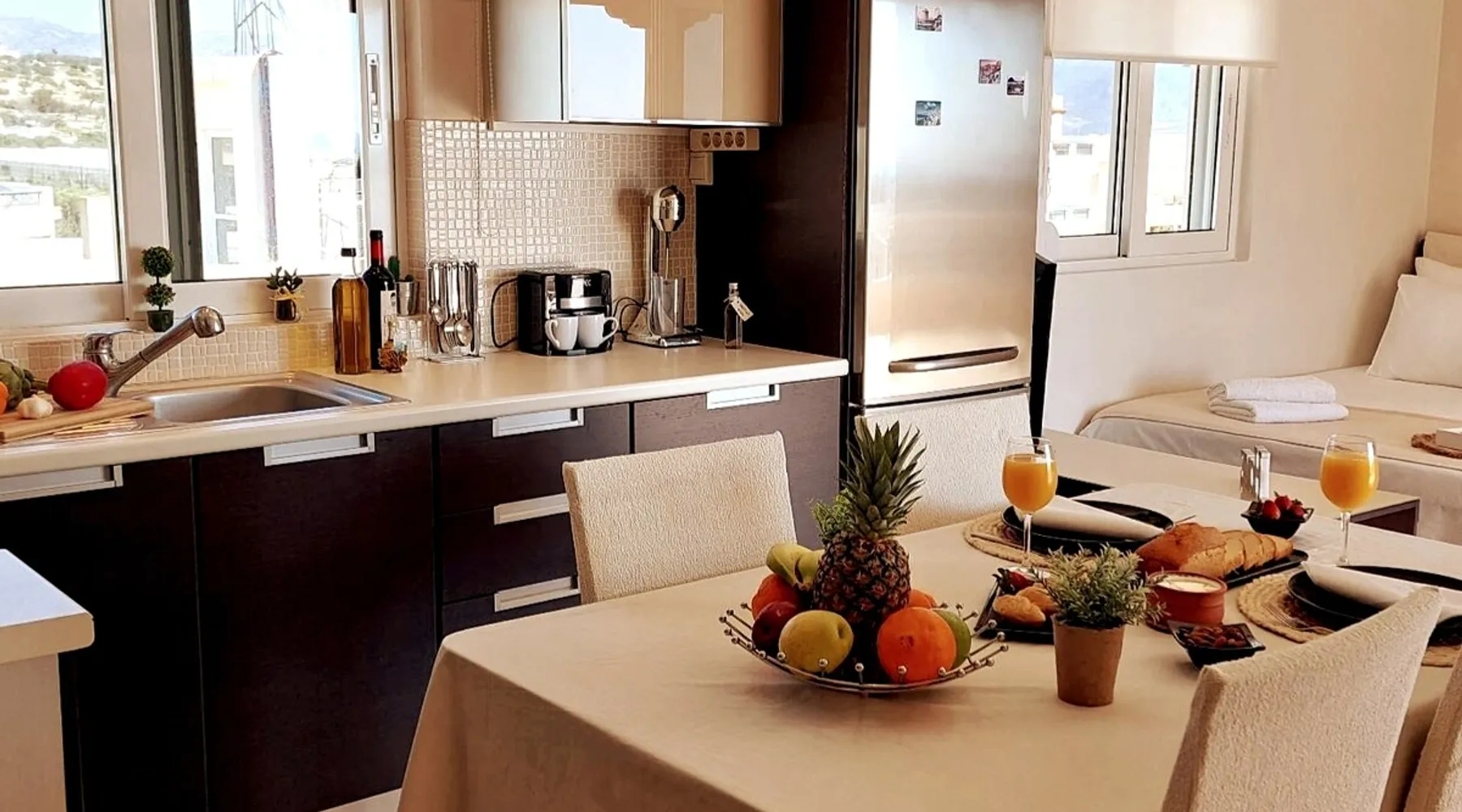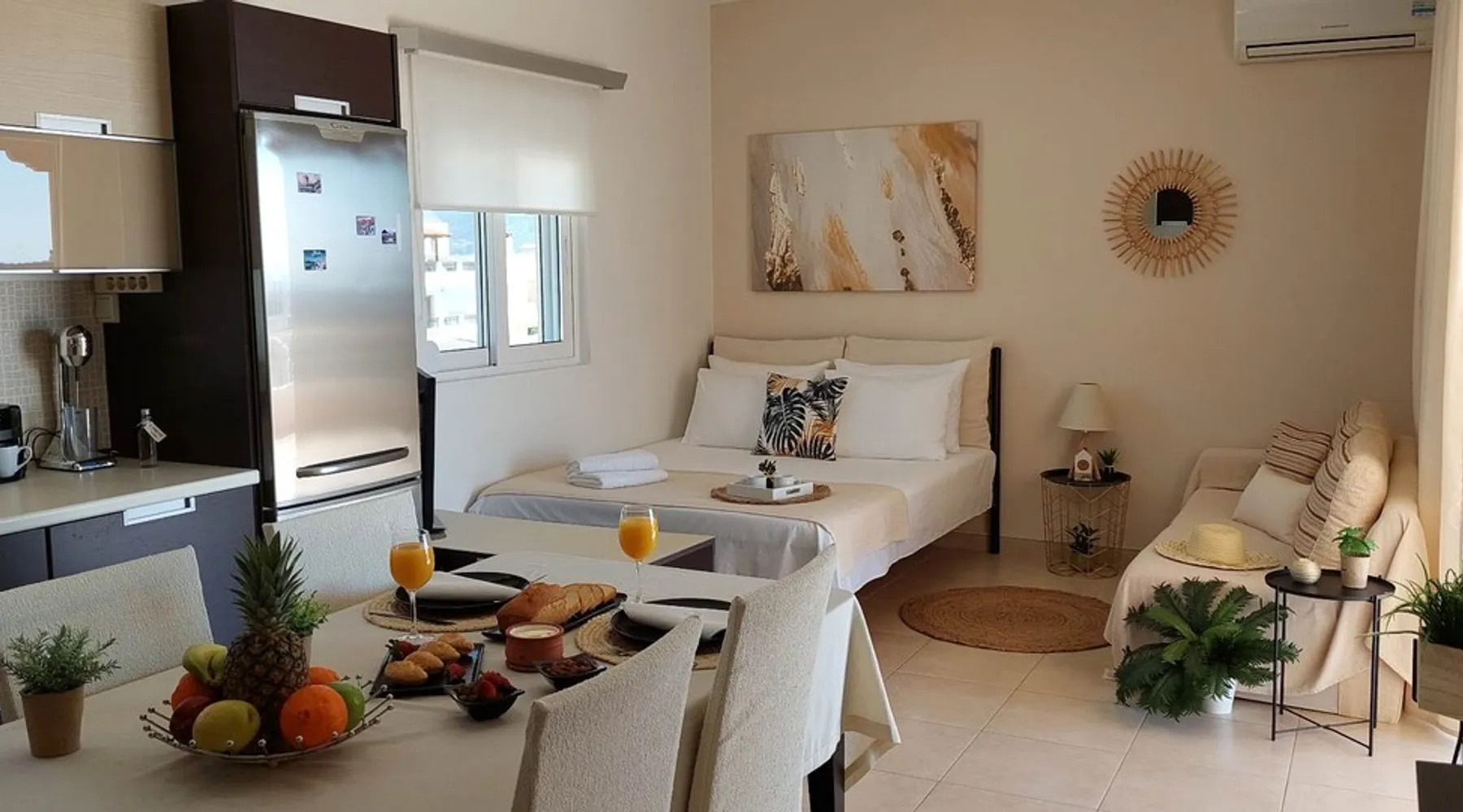 Enjoy your stay in Ierapetra in this newly built apartment with perfect view. Fully furnished a short distance from the city center.Beautiful and bright,guests can relax on the comfortable terrace overlooking the Libyan sea.Ierapetra combines montain and sea,it is the city of relaxation and tranguility.Every Saturday there is a bazaar where you can buy fresh fruit and souvenirs.It has great beaches,cafes and restaurants. We wish you a great time in our city.!!! The space The apartment is self-contained, the interior consists of a living room with a comfortable bed - smart TV and bar, air condition. The kitchen area includes a dining area, electric cooker a filter coffee machine and all the equipment is on the shelves to cook as desired. The bathroom is comfortable with shower, hair dryer and clean towels. The sleeping area is comfortable with a double bed with an anatomic mattress. On the terrace there is the dining room where you can enjoy your romantic meals with the perfect view. Guest access The apartment is located in a guiet neighborhood,with two mini markets nearby where you can buy fresh bread and fruit.It is a suitable area for walking and there is plenty of parking space on the street. Other things to note We would like to inform our potential guests that we have taken all the necessary steps and following all the Health Protocols implied by the Greek Government’s Act of Legislative Content regarding the prevention of Coronavirus, the cleaning guidelines recommended by the ECDC (European Centres of Disease Control and Prevention) as well as the United States of America CDC (Centers of Disease Control and Prevention). We are monitoring this situation closely in order to ensure that we keep all the guidelines up to date. Registration details 00000612330