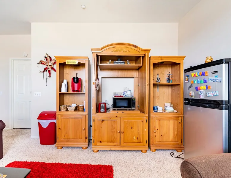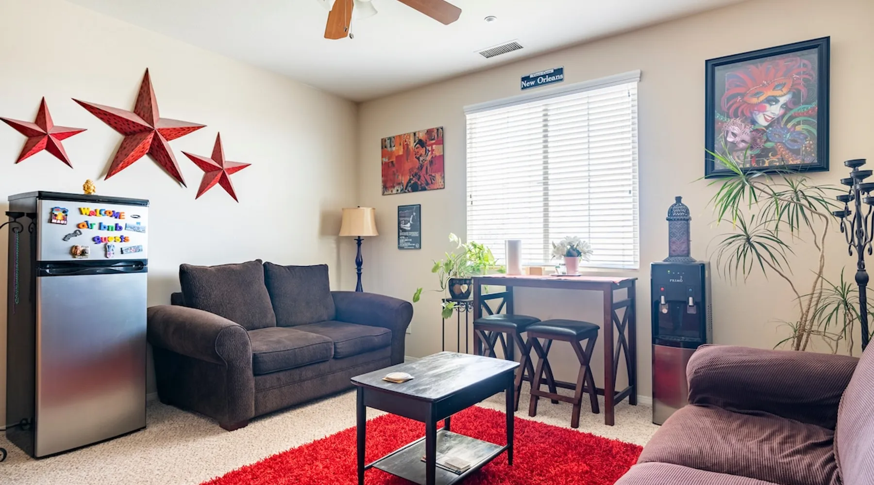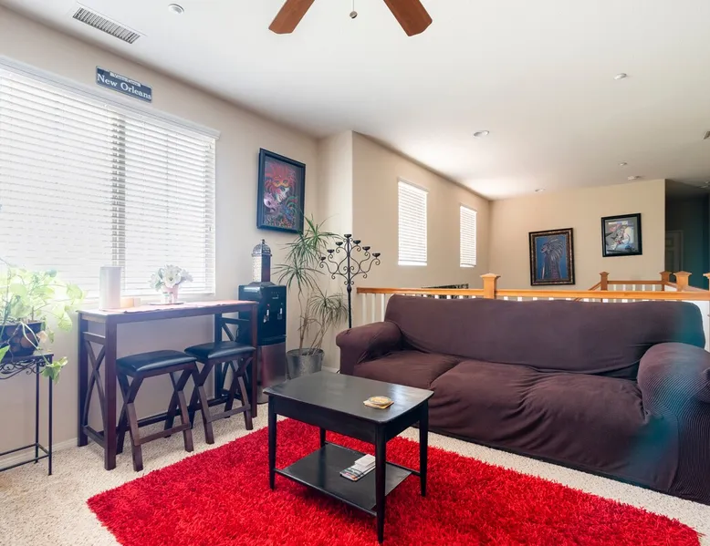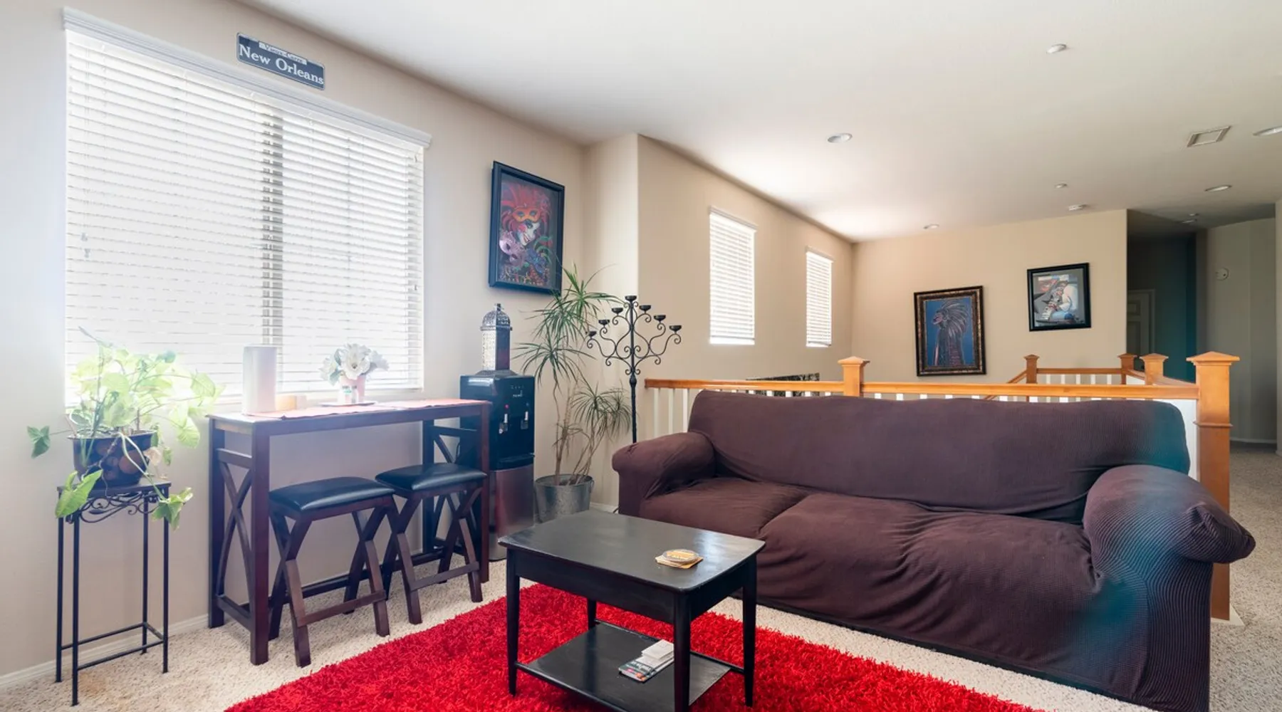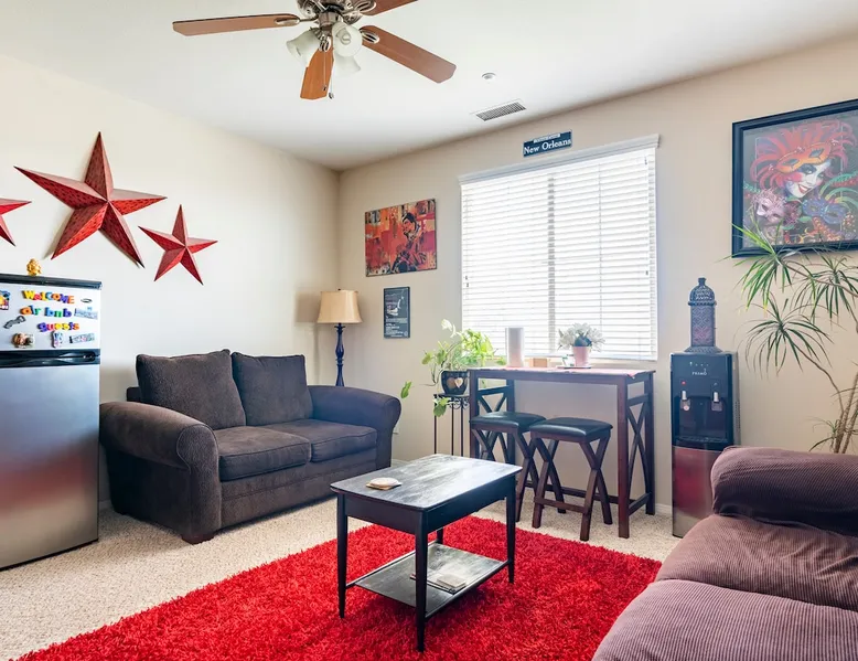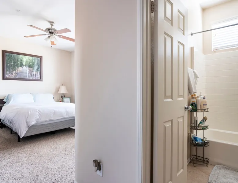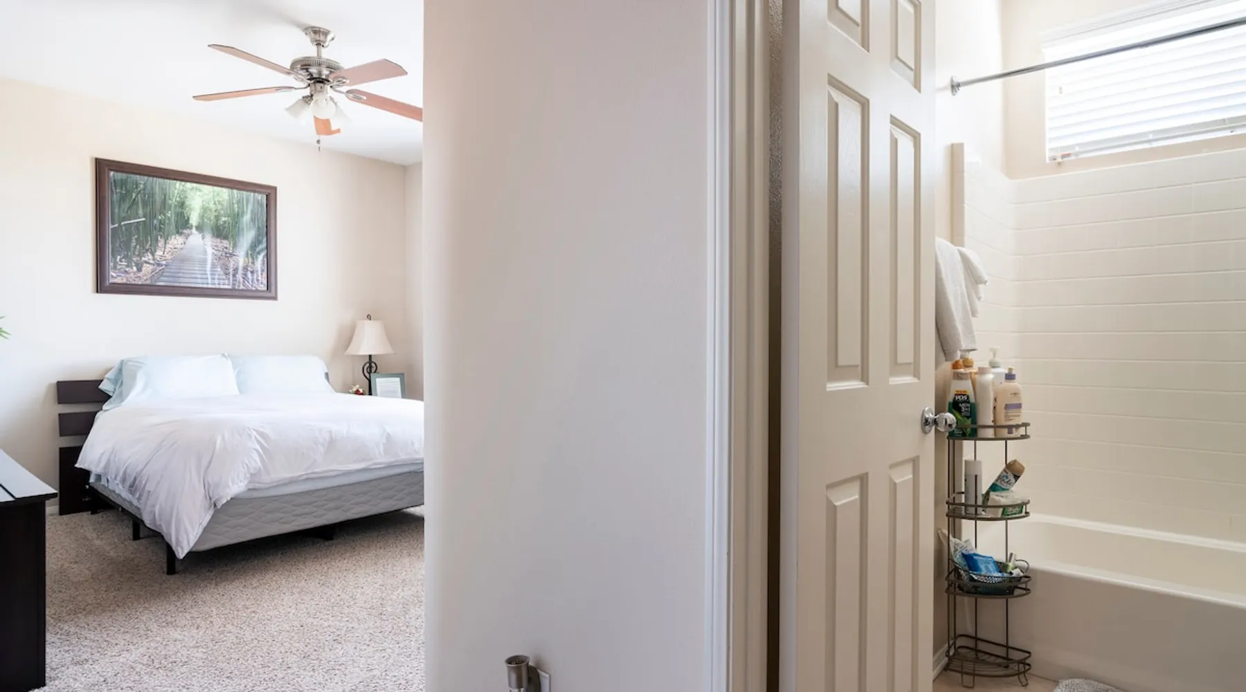 One upstairs bedroom w/ private bathroom inside the room. Includes queen bed, small refrigerator, and TV with streaming services. 24-hour check-in available. I respond to inquires immediately. **We have a roommate who has allergen to animal dander and shares living space with Airbnb guests, therefore we are unable to host any animals in the upstairs guest areas at this time since doing so will create a medical emergency for our roommate.** The space Large one bedroom with a dreamy soft queen bed, private bathroom, TV with streaming services, and mini refrigerator inside room, and comfy new amenities. Guest access Please read house rules before booking. There is a kitchenette in upstairs loft is with refrigerator, K-cup coffee maker, microwave, toaster oven. There is no kitchen access. During your stay I may not be home due to my hectic schedule, but I'm always available by text if you have questions. I respect your privacy so I won't be all in your business, but if you are social I enjoy interacting with guests to talk about food, music, or travels. Other things to note There is a TV in your room with FireTV. We have streaming services available like Amazon, Netflix, Max, YouTube. We do not have cable or local channels.