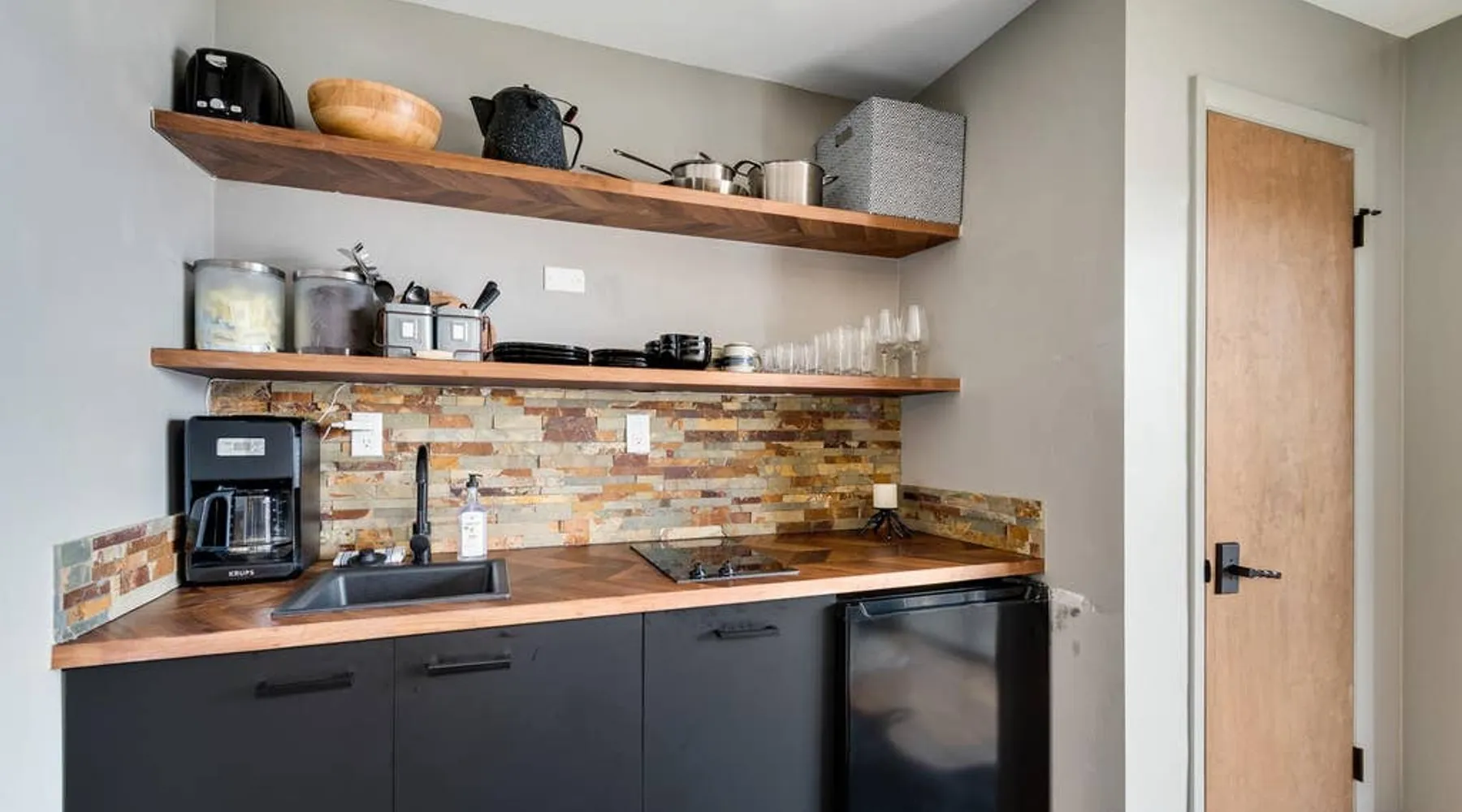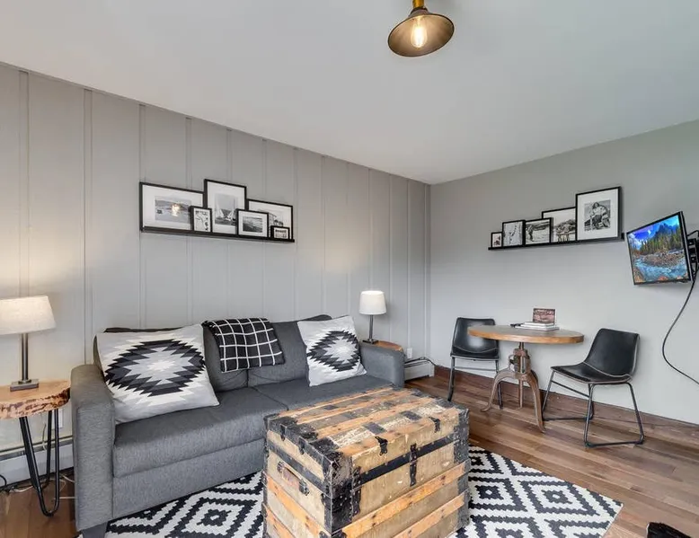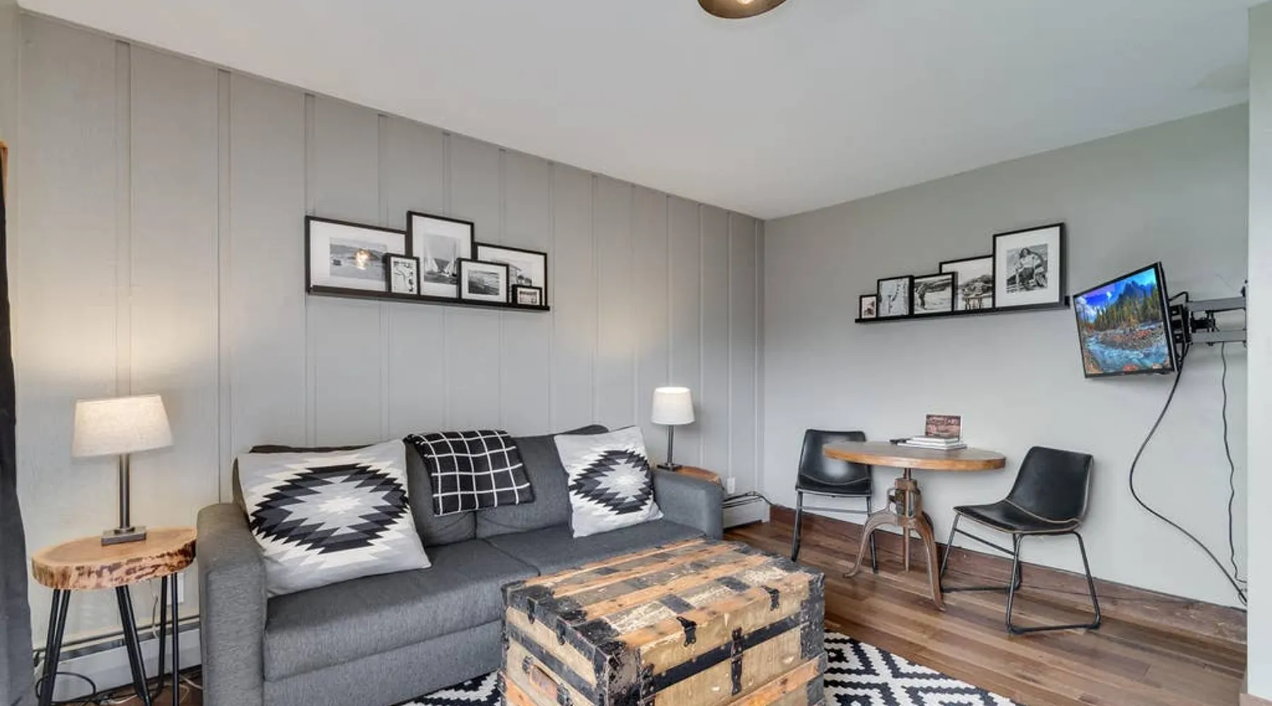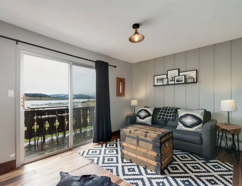 This one-bedroom unit has been recently remodeled in a hip, lake house-inspired style. It has absolutely amazing views across Lake Dillon to the Ten Mile Range. Watch the sunset from the balcony. Walk to the marina to rent a boat or paddleboard. Hop on your bike and hit the path that goes past your front door. Go down to the water's edge and throw out a line to catch your fish dinner. Cool design touches include wood floors throughout, rock sink, mountain-modern furniture, and vintage photos. The space There is one flight of stairs to a shared vestibule. The living area has a pull-out sofa bed, smart tv with cable, dining table, and a kitchenette which has a two-burner stove, mini-fridge, dishwasher, coffeemaker and microwave (no oven). We provide drip coffee, oil, and s/p. There is a small deck looking over the lake with a table and chairs. The bedroom has queen size bed, dresser, and closet. There is a full bathroom with tub/shower stocked with shampoo/conditioner/soap. Outside there is a large grassy area, volleyball court, picnic tables, charcoal grills, and direct lake access. Other things to note This is an old building and sound transfers. You will hear your neighbors and they will hear you. There is free onsite parking but it is limited. You only get one parking pass and it does not guarantee a space. On busy weekends if you arrive late at night, you may have to park 1/2 mile away in overnight parking in the Town of Dillon. It hasn't happens maybe once a year, but if you can't park at the building, we will buy you lunch or your uber ride (refund you $25 for your troubles). No pets (HOA rule so I cannot make exceptions).