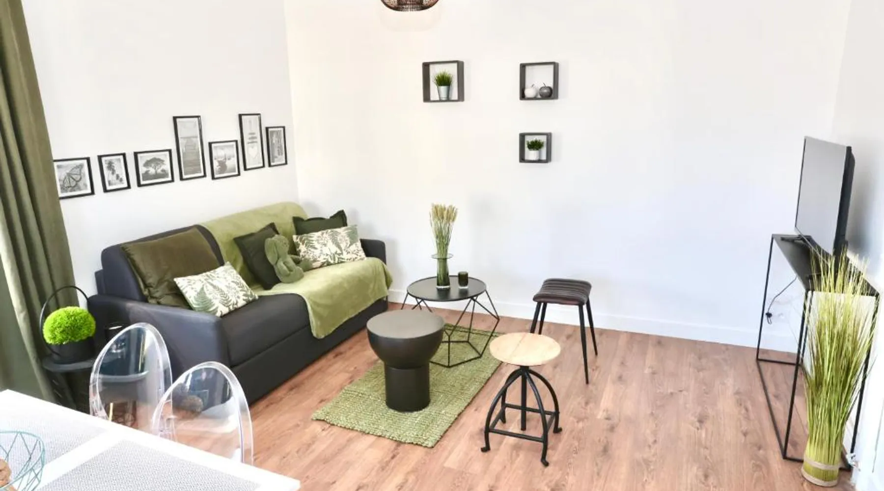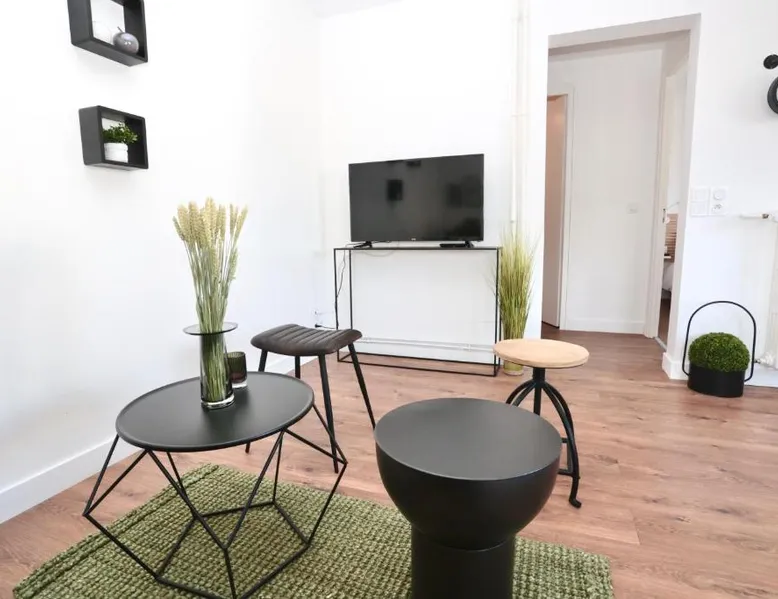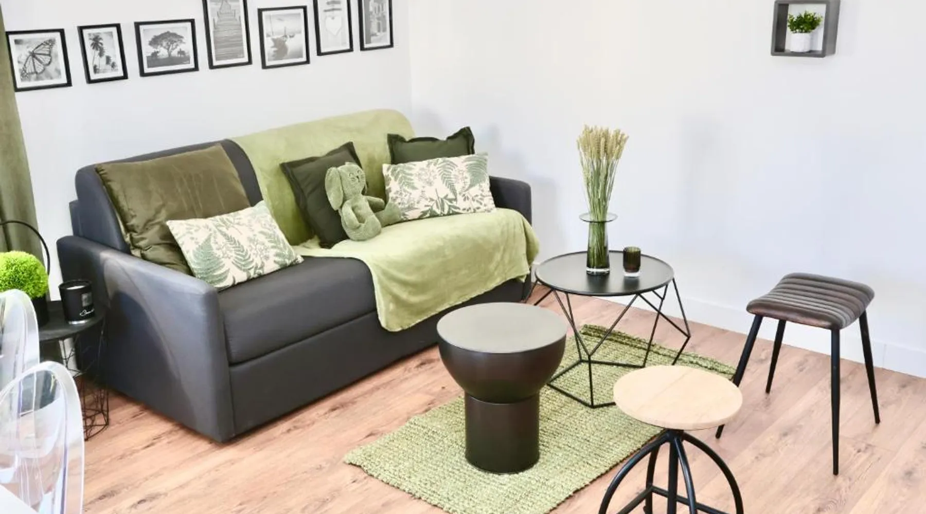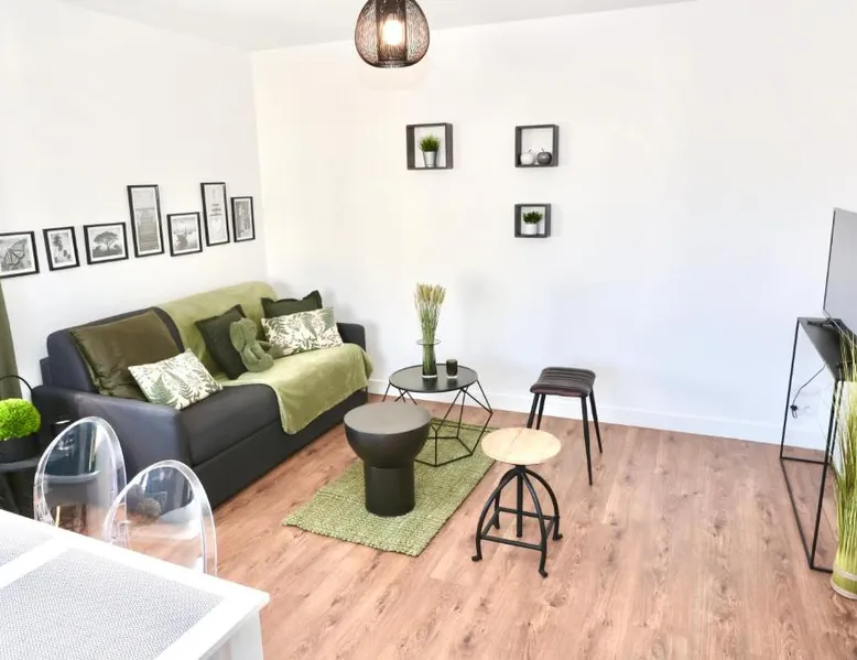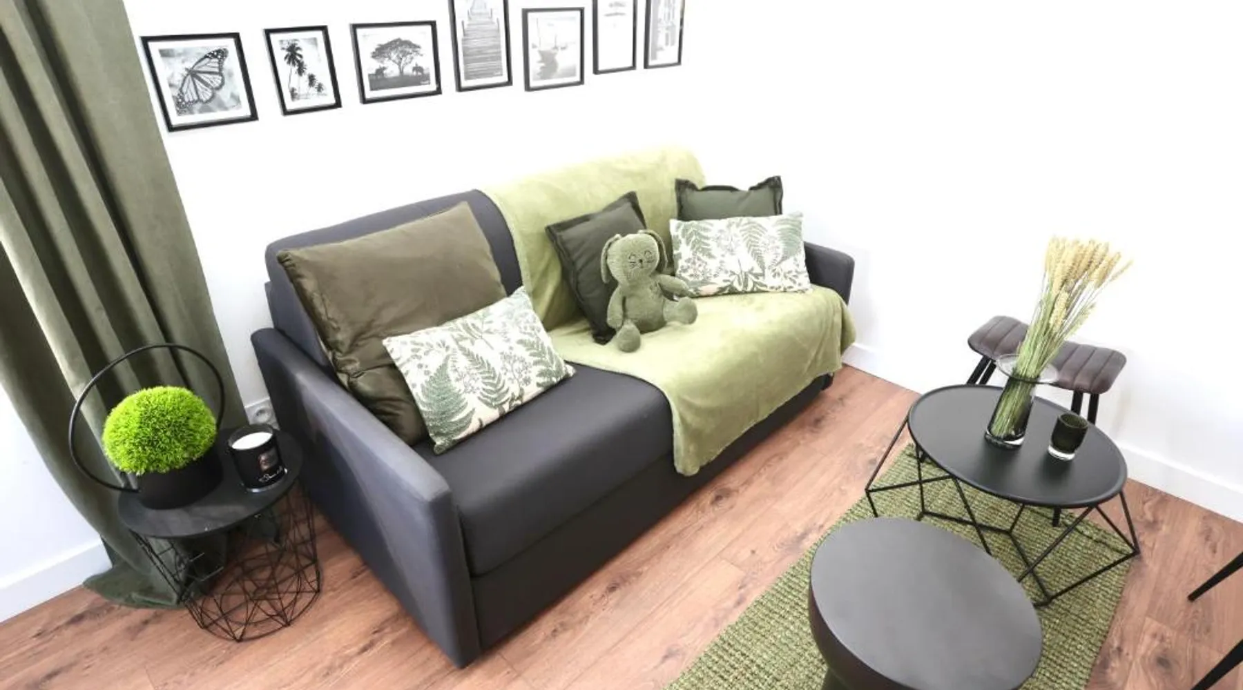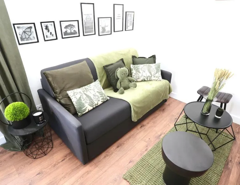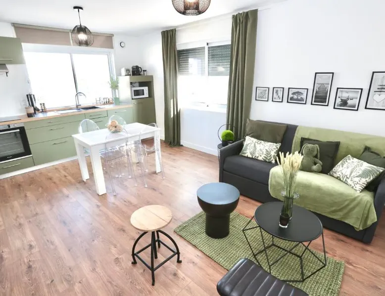 Comfortable Living Space: Cozy's Olivier in Larmor-Plage offers a one-bedroom apartment with a living room. The property features a fully equipped kitchen, washing machine, and free WiFi. Guests enjoy garden views and a private entrance. Modern Amenities: The apartment includes a walk-in shower, dishwasher, microwave, and parquet floors. Additional facilities include a dining table, sofa bed, and TV. Free toiletries and a hairdryer are provided for convenience. Convenient Location: Located less than 0.6 mi from Plage de Locqueltas and 5 mi from Lorient South Brittany Airport. Nearby attractions include Stade du Moustoir (3.7 mi) and Lorient Train Station (5.6 mi). Highly rated for room cleanliness and comfort. The well-equipped kitchen has a stovetop, a refrigerator, a dishwasher and kitchenware. The apartment features a flat-screen TV, a washing machine, a private entrance, a tea and coffee maker as well as garden views. The unit has 2 beds.