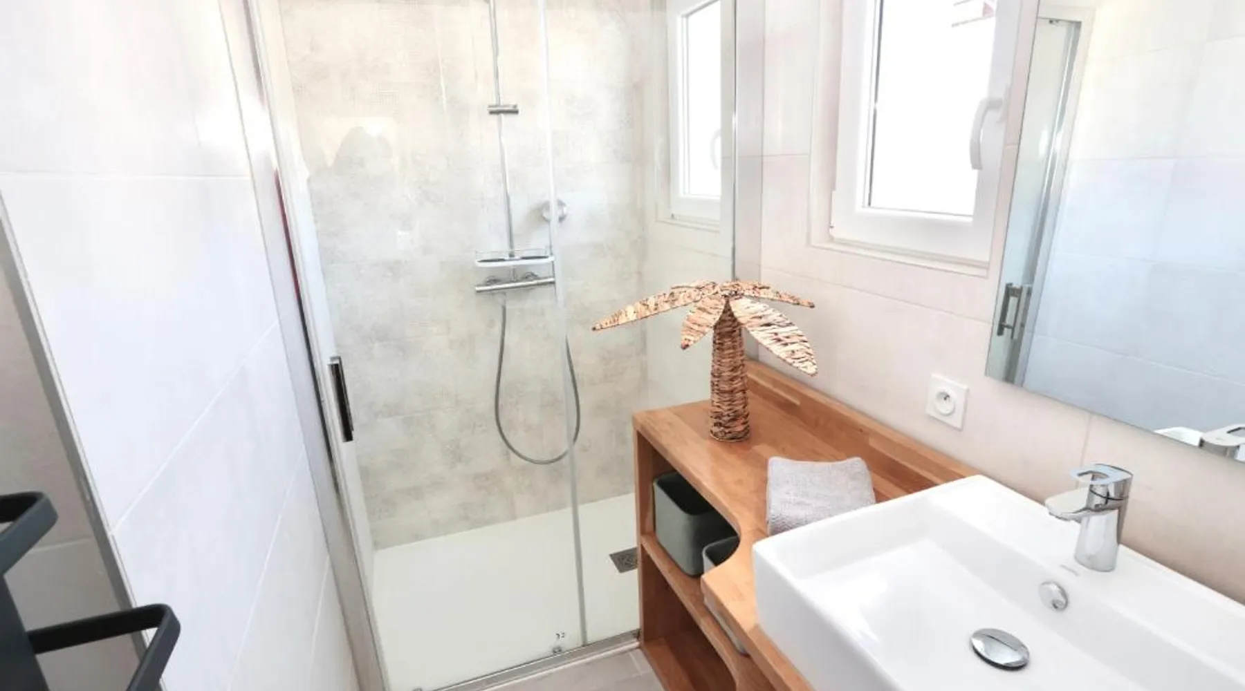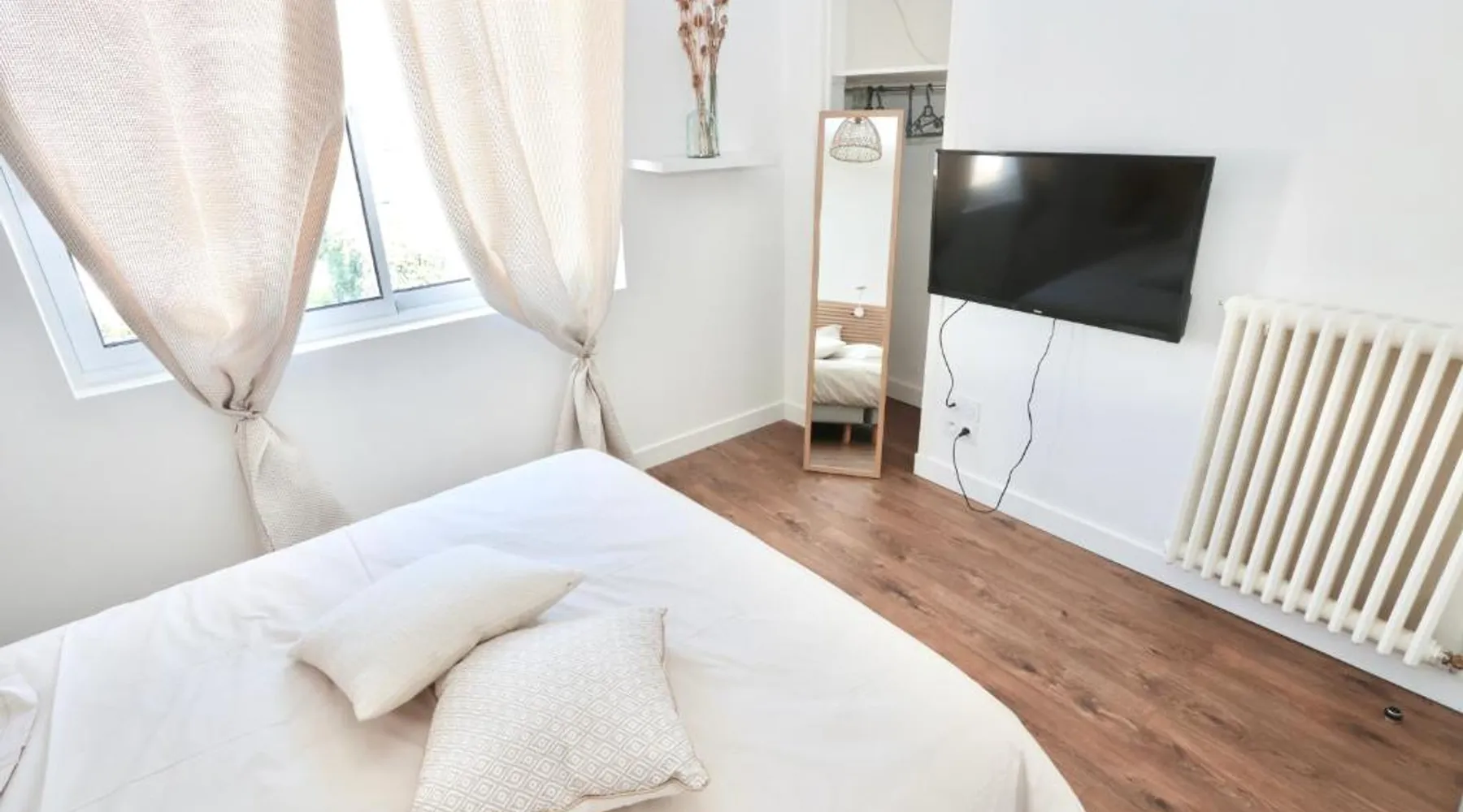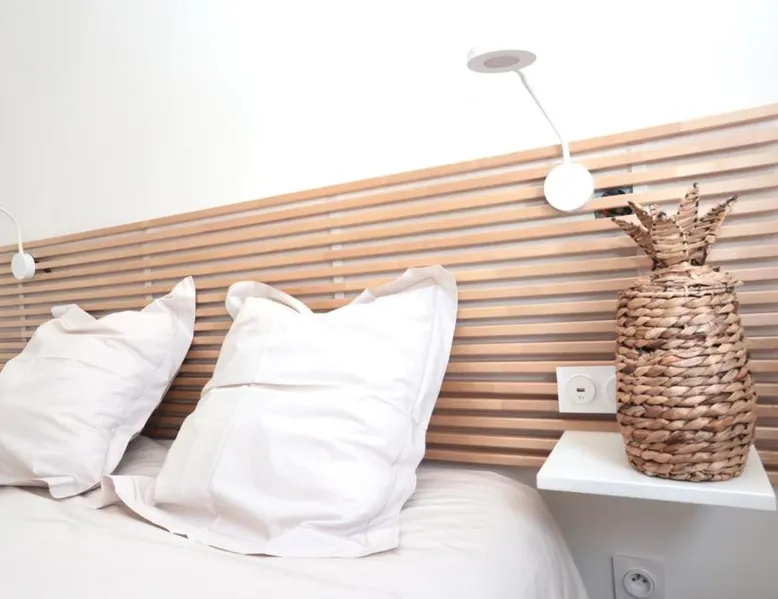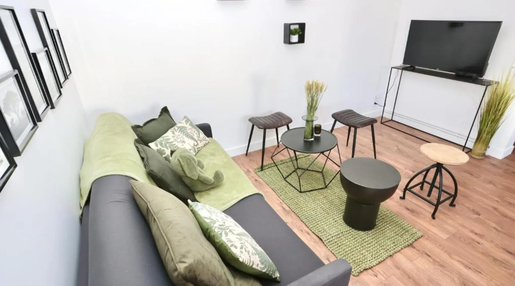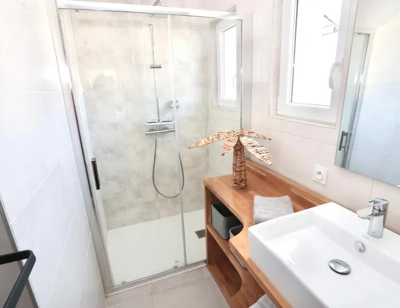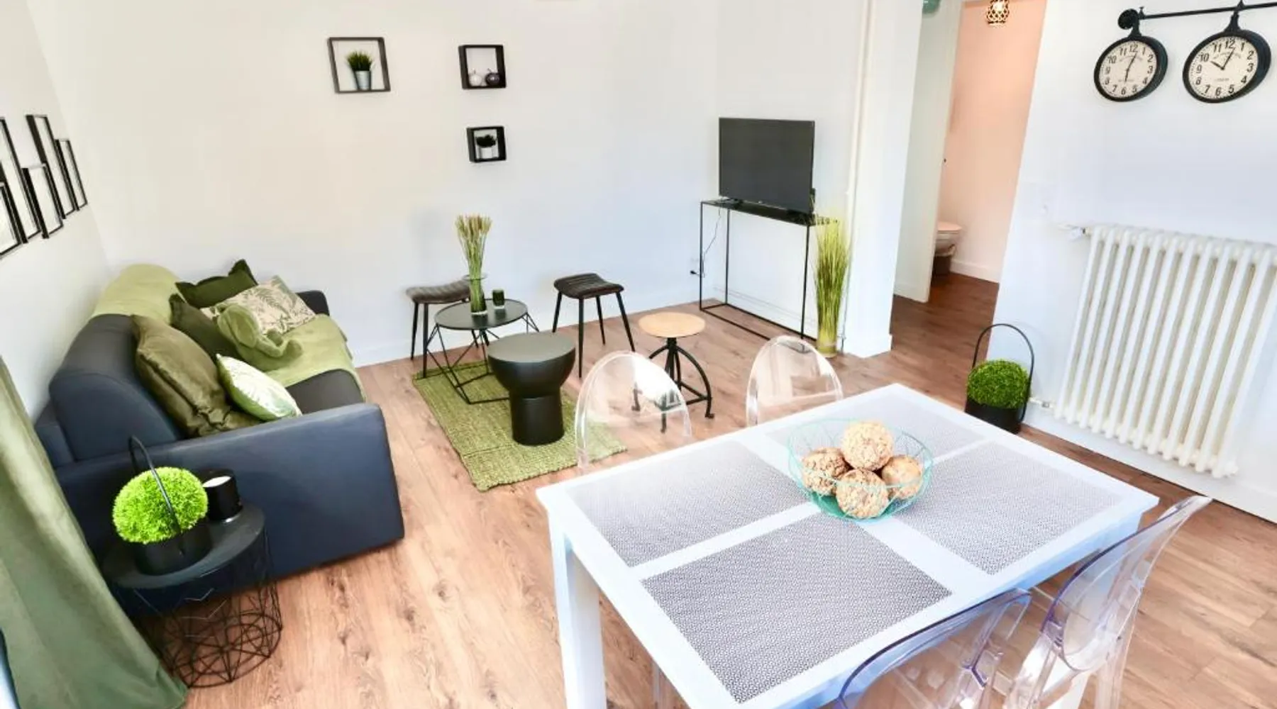 Comfortable Living Space: Cozy's Olivier in Larmor-Plage offers a one-bedroom apartment with a living room. The property features a fully equipped kitchen, washing machine, and free WiFi. Guests enjoy garden views and a private entrance. Modern Amenities: The apartment includes a walk-in shower, dishwasher, microwave, and parquet floors. Additional facilities include a dining table, sofa bed, and TV. Free toiletries and a hairdryer are provided for convenience. Convenient Location: Located less than 0.6 mi from Plage de Locqueltas and 5 mi from Lorient South Brittany Airport. Nearby attractions include Stade du Moustoir (3.7 mi) and Lorient Train Station (5.6 mi). Highly rated for room cleanliness and comfort. The well-equipped kitchen has a stovetop, a refrigerator, a dishwasher and kitchenware. The apartment features a flat-screen TV, a washing machine, a private entrance, a tea and coffee maker as well as garden views. The unit has 2 beds.