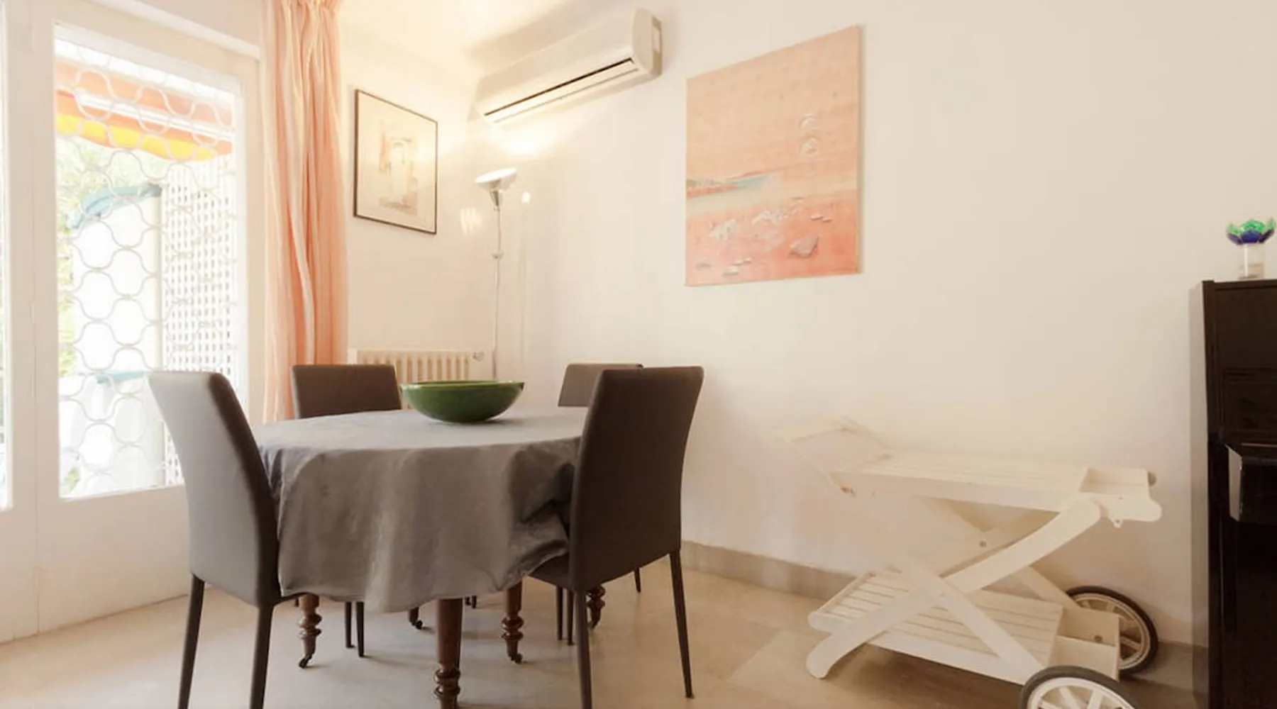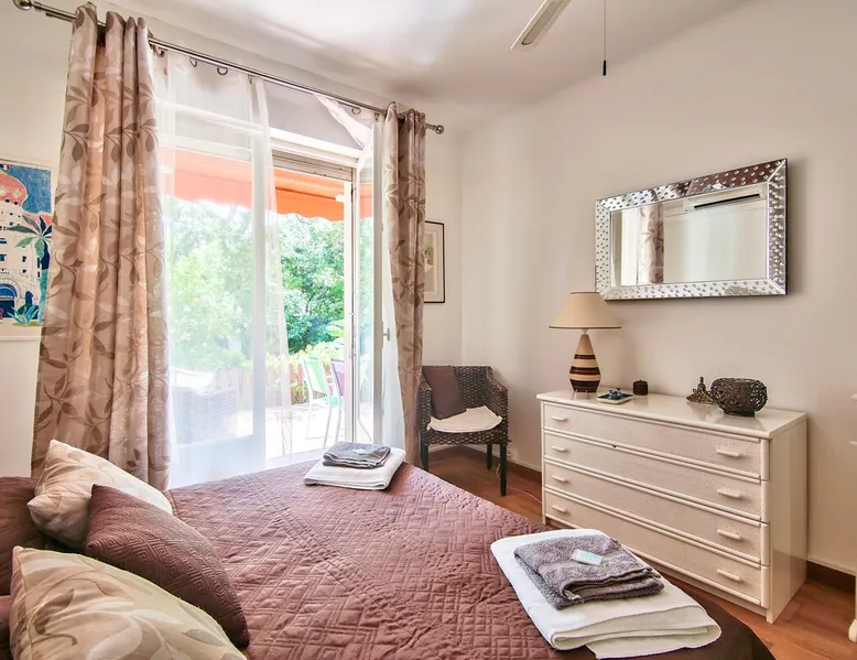 Very nice large apartment with three bedrooms, a terrace, and a garden. Less than ten minutes walk from the beach, and close to shops and the center of Cannes. If need be, free parking will also be available. The space Completely renovated in February 2015, the apartment includes: A large living room with: Television Dining area Sofa bed for 2 people Large bay windows with electric shutters overlooking terrace and garden Air conditioned room Three air conditioned bedrooms with separable double beds and dressing room in each room. A fully equipped kitchen with large selection of dishes. A renovated modern Italian shower with WC A bathroom with tub and WC. Small and quiet building. Small supermarkets, bakeries, pharmacy, caterers around the building The bus, at the foot of the building, takes you in 5 minutes to the city center. In a residential area, ideal to discover the south of France. Outside: Terrace and garden, equipped with beautiful dining table and deck chairs Registration Details 0000000000000