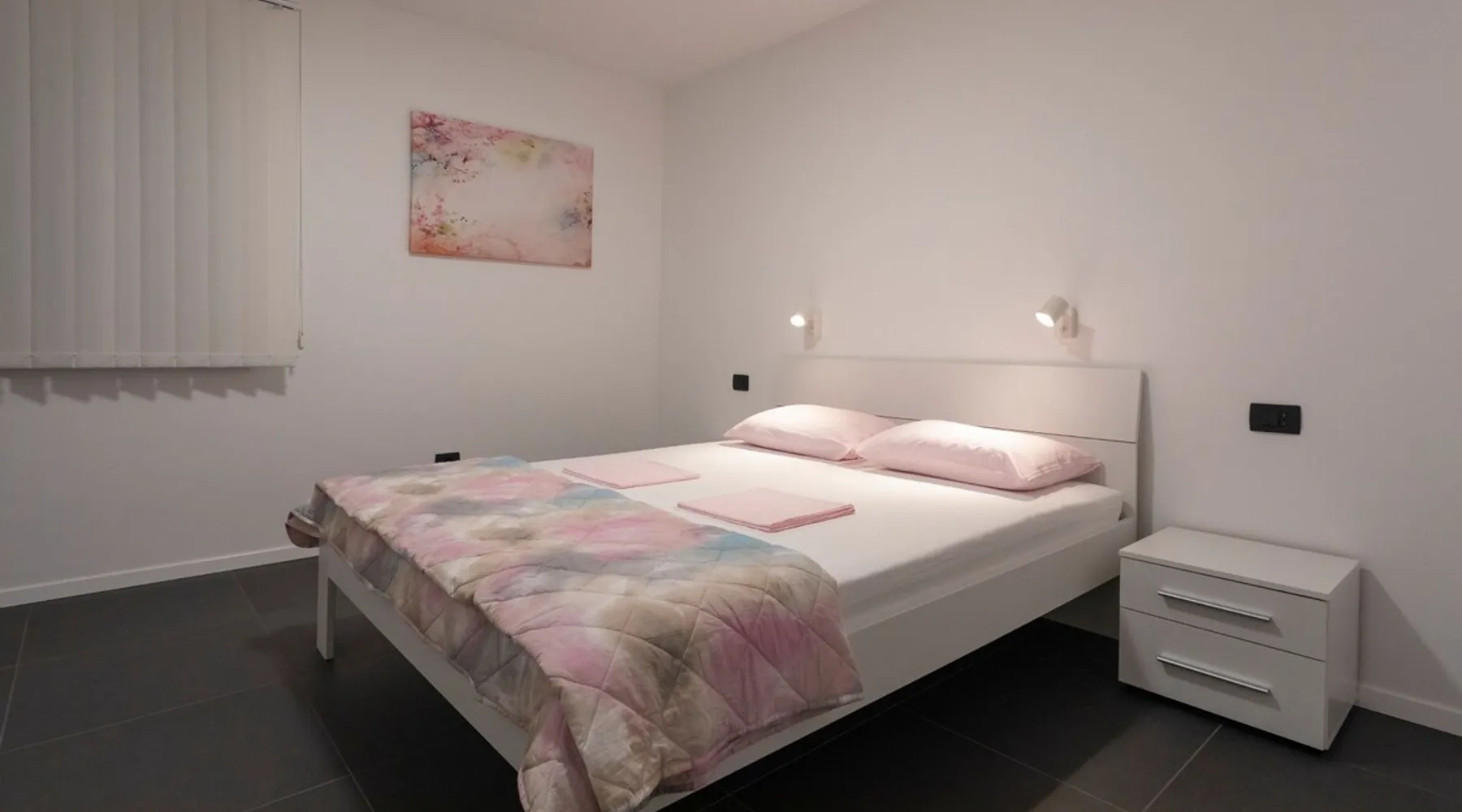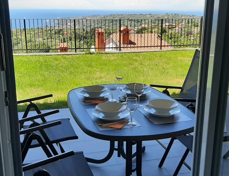 A new modern air conditioned apartment in the quiet village of Malija in the municipality of Izola. The large covered terrace with barbecue offers beautiful views of the sea, the Bay of Piran, Croatian and Italian coastline. Free WiFi. Parking space is built in, on the premises. For motorcycles, we offer a covered patio. Owner lives on site. The space The apartment is new and modernly equipped, with a ventilation system. The kitchen is fully equipped, has an induction hob, dishwasher, oven, microwave, coffee maker, kettle. It has one bedroom with a double bed and a sofa bed in the living area. The bathroom has a shower , bidet, and washing machine. Guest access Guests use the rental unit and the attached terrace. They are provided with a built-in parking space on the premises. Other things to note Child age restriction: Allowed ages of children from 8 years up.