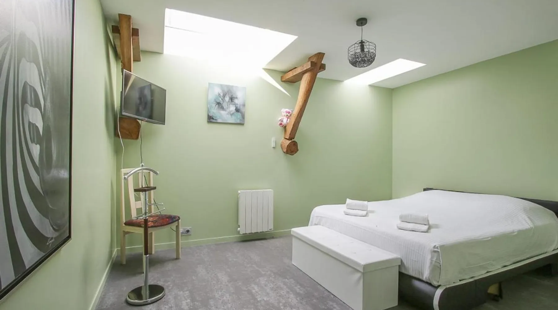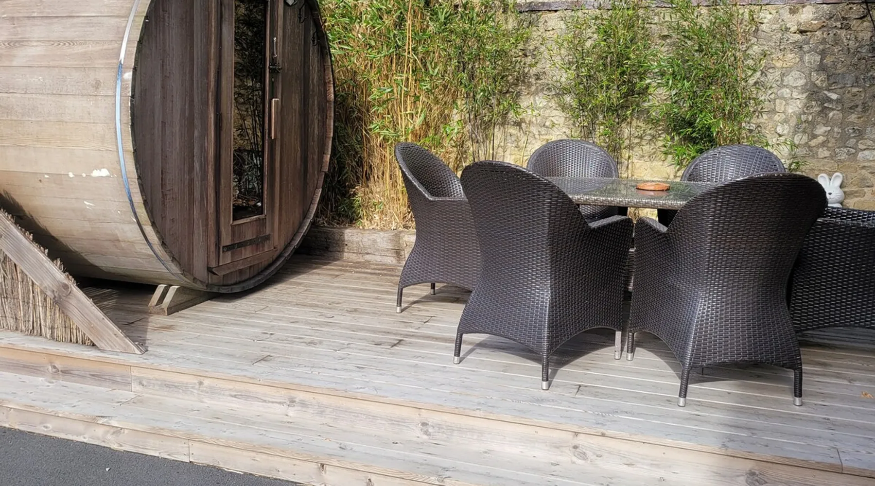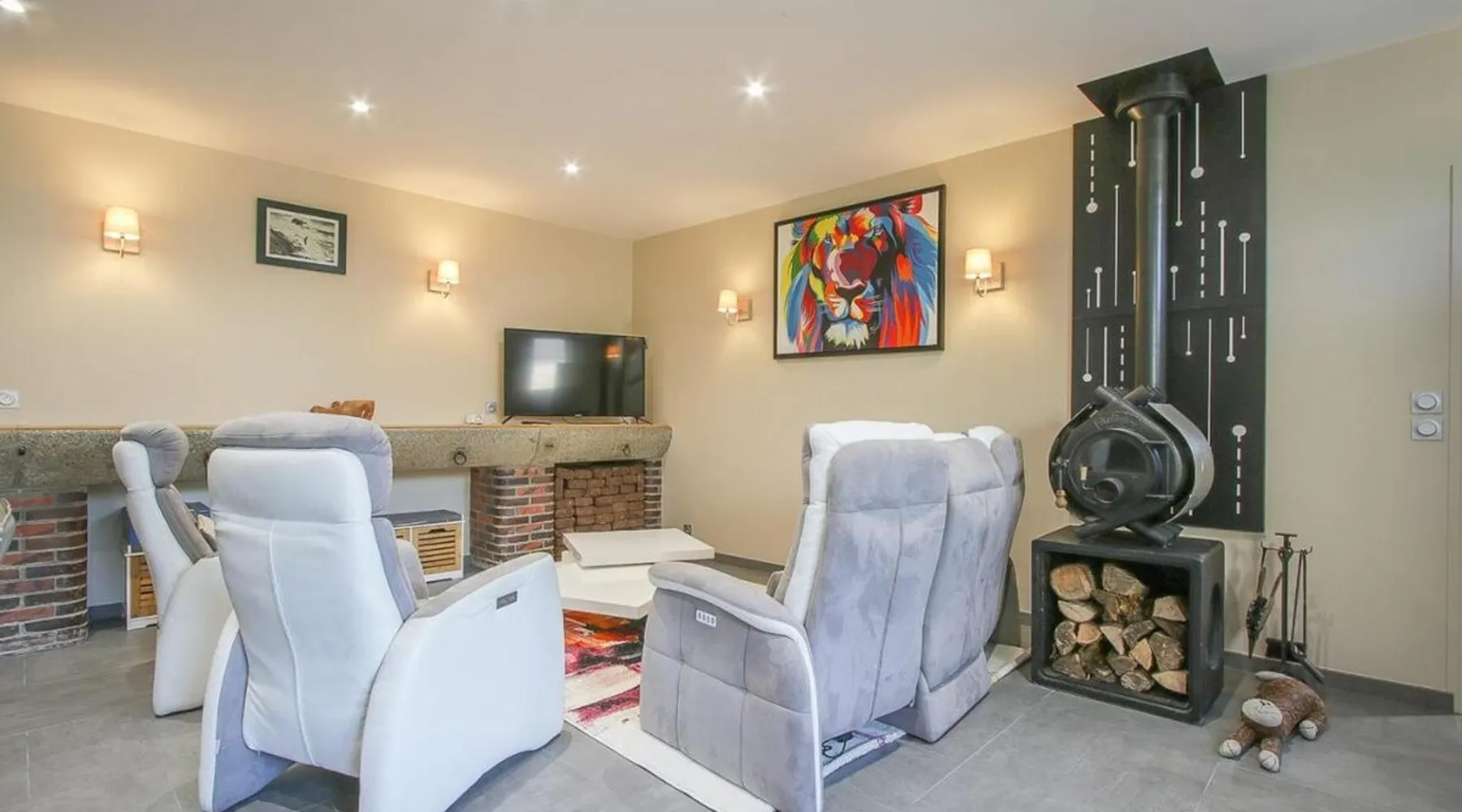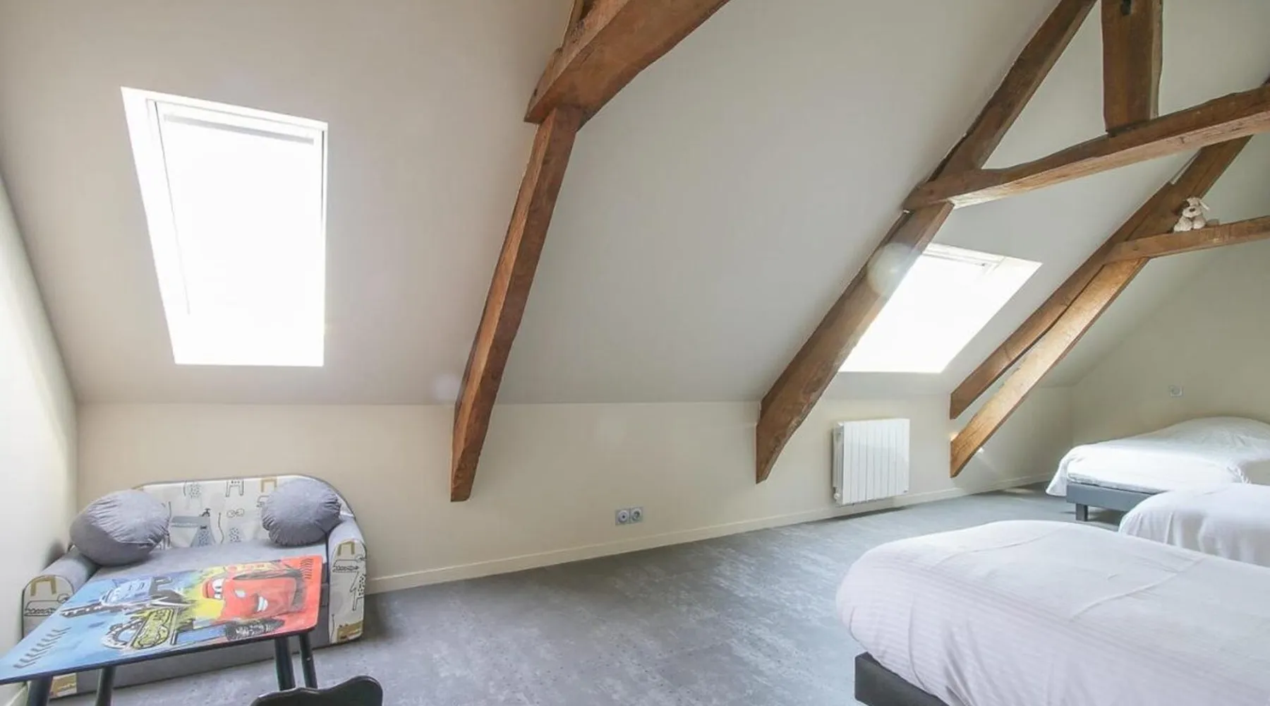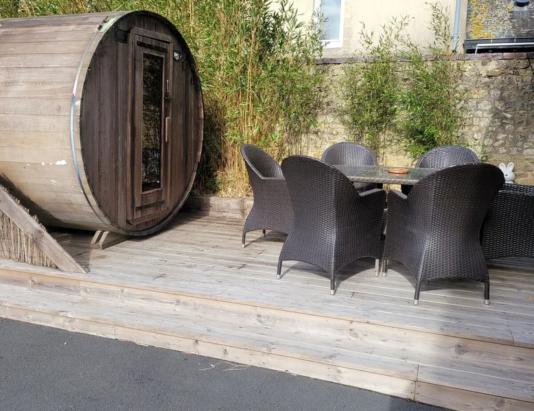 This cozy house for 7 to 11 people, 2 km from Bayeux, recently renovated, has a spacious living room with an equipped kitchen, composed of 3 bedrooms and a games and sports room, a sauna, an outdoor area as well as 2 parking spaces in the courtyard. For more than 7 people, the annex offers 2 additional bedrooms, a kitchenette and an additional bathroom to increase capacity to 11 people.