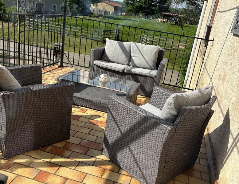 Apartment located on the ground floor completely refurbished with a beautiful terrace and a fully paved and secure courtyard allowing all types of vehicles to park. Fully equipped kitchen (hob, oven, dishwasher etc. ) a beautiful bedroom with double bed (160cmx200cm) and bunk bed, bathroom with shower and double vanity furniture. All pets live on the property 15 min Solvay and Tavaux airport The space ⛔️ All animals live on the property, they can be observed but their tranquility must be respected, so it is strictly forbidden to chase them or try to catch them ⛔️ PROHIBITION OF ENTRY INTO THE POULLAILLER 🚫 It is strictly forbidden to hang laundry outside Other things to note Baby equipment can be provided subject to availability ⚠️ Sheets provided but not bath towels. The beds will not be made on your arrival. ⚠️ Consumables provided (toilet paper, garbage bags, dishwasher tablets, etc.) for your arrival but not throughout the stay