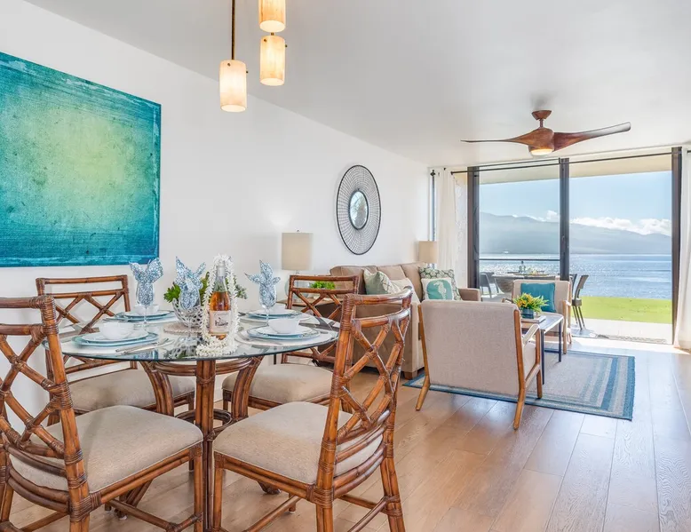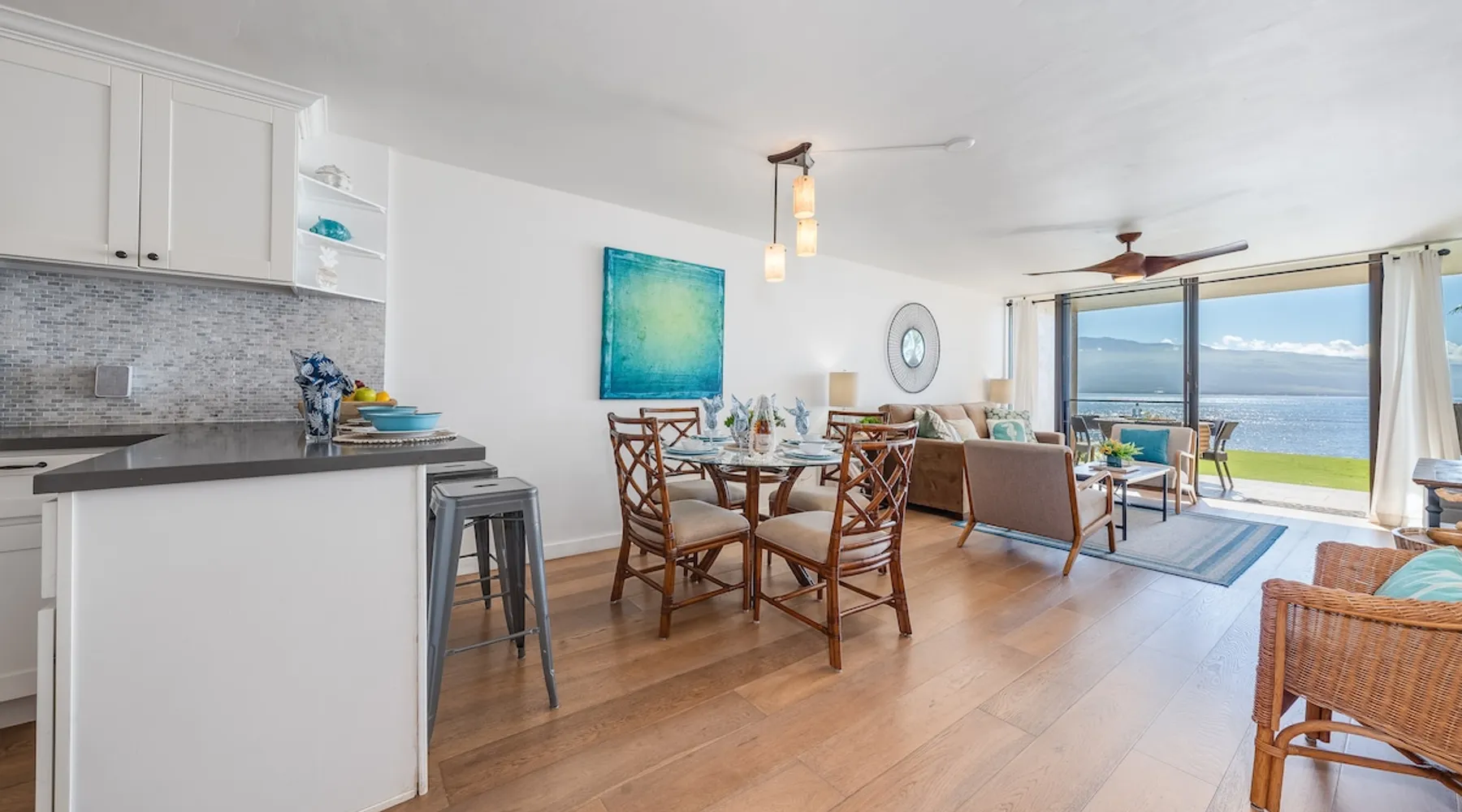 Lauloa 105 Spacious OceanFront 2Bedroom Ground Floor Condo with New Split AC System, BeachFront Pool, and Steps to The Ocean. The space FREE daily activities included with your stay value up to $554! Complimentary admission, every day of your stay*: Whale Watching (seasonal), Sunset Dinner Cruise, Molokini Snorkel Trip, Alpaca Farm Tour, Pineapple Farm Tour, and Tea Farm Tour. (S1) *One ticket per activity per day. Additional details provided after confirmed booking. Watch the sunset from the comfort of your patio. See the Honu (Sea Turtles) and Humpback Whales play just outside your door or watch the surfers on the legendary surf break "Freight Trains" (the world's fastest surfable wave). Lauloa 105 is a beautiful 2-bedroom, 2-bathroom condo. With two master suites, everyone will be comfortable! This is a ground floor unit, so you can walk right out to the ocean or to the oceanfront pool! Sugar Beach is a 3-5 minute walk away and is the longest stretch of sandy beach on Maui. With 5 miles of secluded beach to explore, every day here will bring new and exciting things! Condo Highlights: -2 Bedroom, 2 Bathroom ground floor condo, Sleeps 6 guests -Brand new split zone AC -Direct oceanfront view from the patio, living room, and first bedroom -King size bed in first bedroom -King size bed in second bedroom -Brand new sleeper-sofa in living room -Furnished patio with table for 4 -Ceiling fans throughout -Flat-screen TV in living room -Fully equipped kitchen with stainless steel appliances -Indoor dining table for 4, bar seating for 2 -2 Renovated bathrooms with step-in showers -In-unit washer/dryer Lauloa Resort is located right on the ocean at Maalaea Bay. Enjoy being near The Maui Ocean Center, Maalaea Boat Harbor, Sugar Beach, shops, and restaurants. Centrally located between Lahaina and Kihei, this condo is the perfect place for you to explore all that Maui has to offer. Resort Highlights: -Oceanfront pool -BBQ area -Lush grounds -Elevators -On-site parking included No Mail Allowed: We are unable to receive USPS mail, including letters and packages at this rental. For medical-related items, please contact our Reservations Team for assistance. Minimum age of primary renter: 25 We provide the following in every unit: -First Aid Kit -High Speed Internet -Linens and towels -Iron and ironing board -Hair dryer -Beach towels, Beach chairs, and Hard sided cooler -Starter Kit: Starter supply of shampoo, conditioner, body wash, lotion, hand soap, dish soap, laundry detergent, dishwasher tabs, toilet paper, paper towels, trash bags *We don’t provide beach umbrellas, toys, or gears, such as snorkeling, due to safety, health, and hygiene risks. BEACHES & CRITTERS: The beach size in Hawaii varies month to month due to weather, heavy surf, strong currents, and tides. Due to Maui’s rural setting, you may experience the occasional rooster, as well as harmless geckos. Geckos are friendly, eat insects, and are considered good luck in Hawaii. Please don’t kill them. Although the HOA schedules regular professional pest control services, pests such as ants, roaches and rodents simply cannot be completely controlled in the tropics. Maui is in a tropical climate. If our guest spot more than the normal expected pests, we always make our best efforts to contact and work with the HOA to minimize your interactions with these pests. Any contact with such pests within or outside the unit does not constitute a breach of this Agreement or give Guest any right to any refund or rental adjustment. **We make no guarantee that properties adjacent to the Unit will be free from disturbances, including but not limited to noise or inconvenience from construction, traffic or other guests or neighbors. Any such disturbance shall not constitute a breach of this Agreement or give Guest any right to any refund or rental adjustment. By booking your stay with us, you accept that Host is not liable for any inconveniences arising from any temporary defect or stoppage in supply of water, electricity, air conditioning or plumbing that is beyond their control. Host is not liable for any loss or damage to Tenants’ personal property caused by weather conditions, natural disasters, or other events beyond their control. Tenants accept that the cable and internet service at the Rental can be sporadic and unreliable at times, and Tenant shall not be entitled to any refund of the rental fee in the event either of these services are unavailable or not operating properly during Tenants’ stay. Registration Details 380140160004, TA-166-803-7120-01