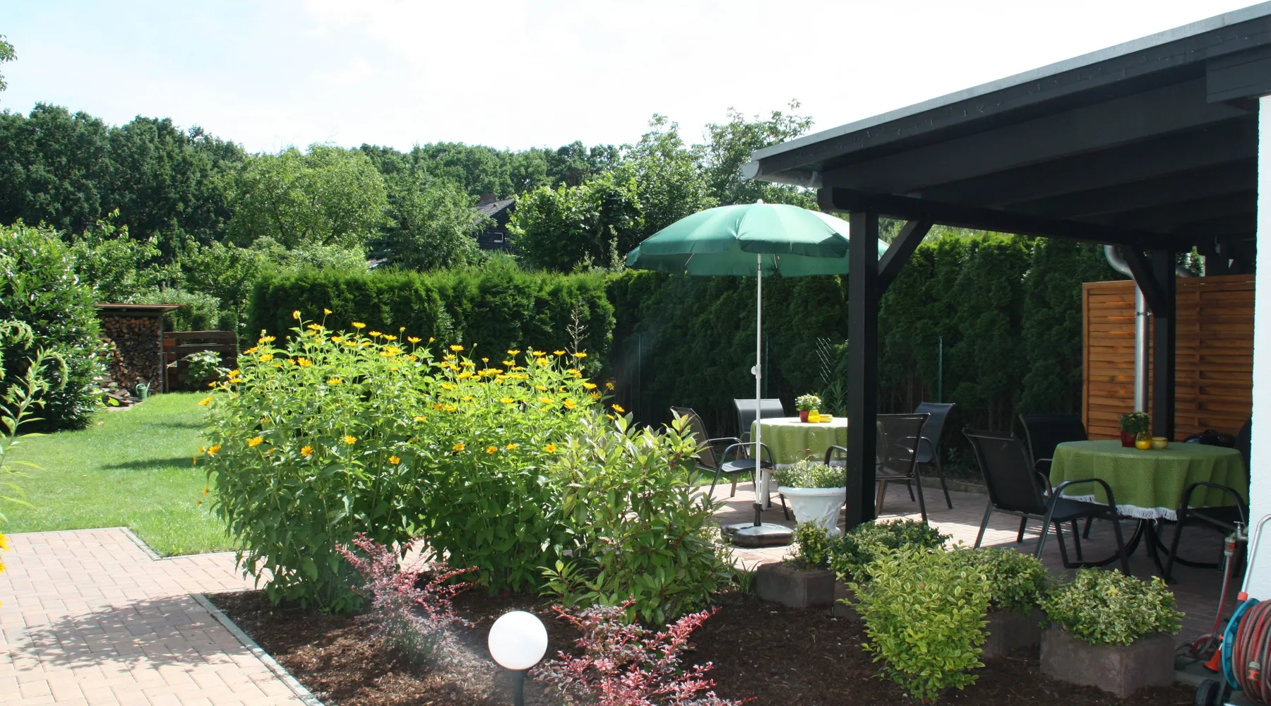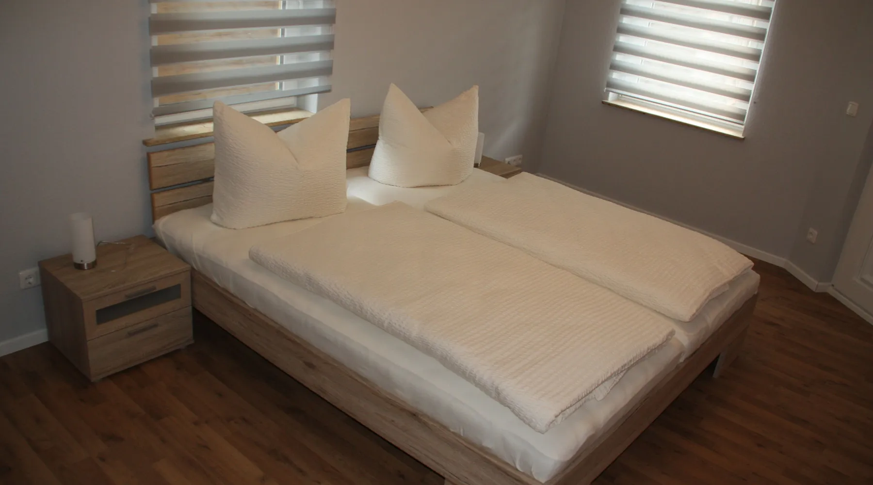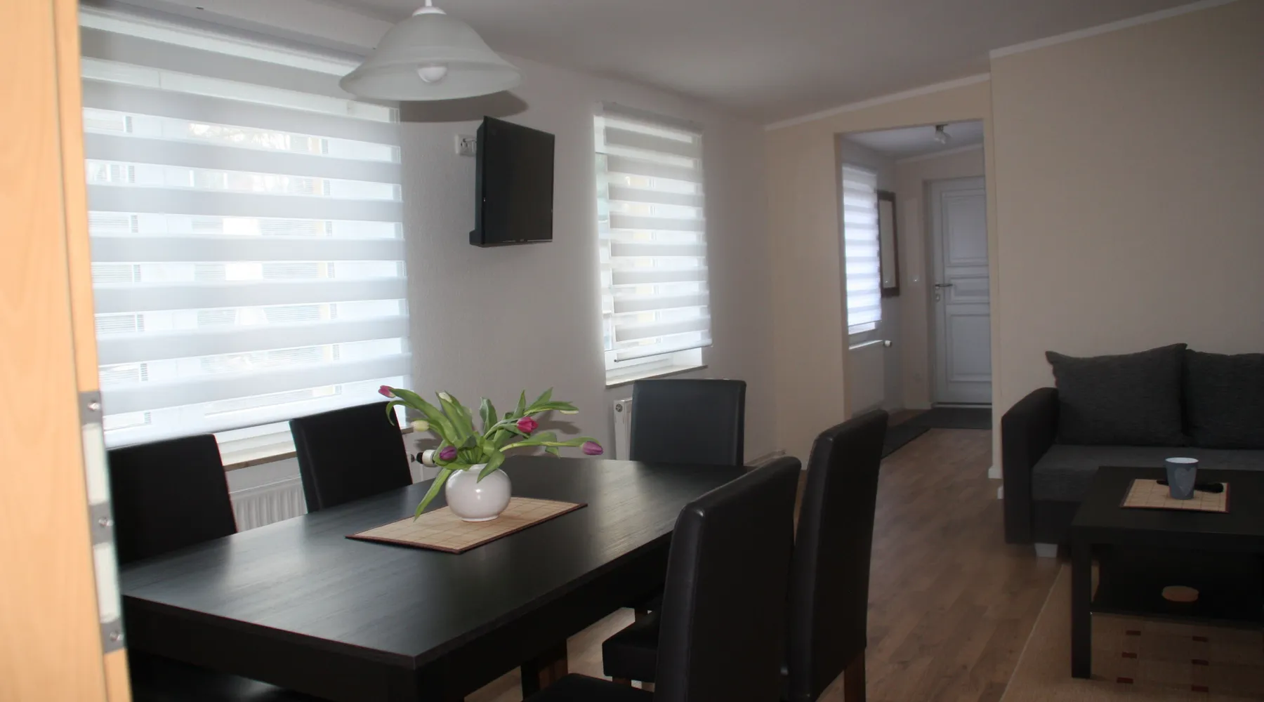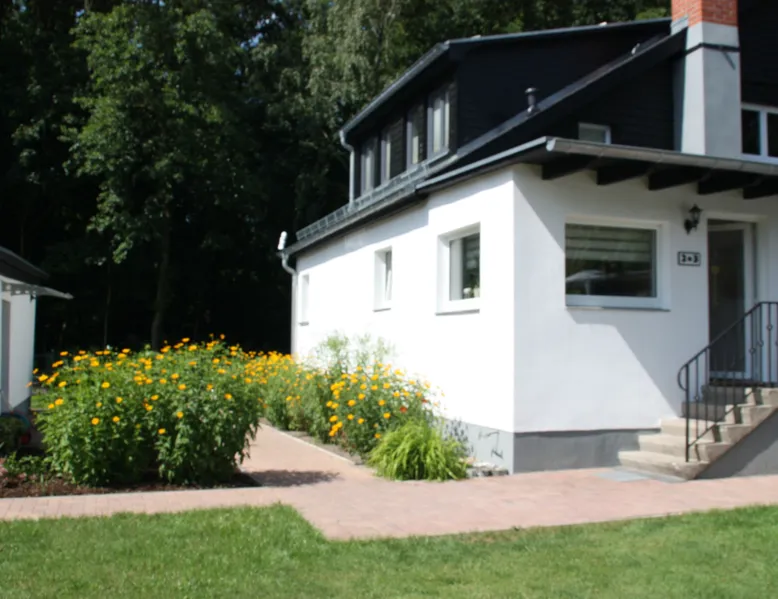 Our apartment has a size of about 60 square meters and was completely renovated and refurbished in 2016. It can accommodate 4 people and has two bedrooms with double beds (foot end open). On request, an extra bed in the living room for another person is possible. A surcharge of € 25.00 is charged for the additional bed, which is not included in the rental price and is payable in cash on arrival. The living room is furnished with a comfortable corner couch, a dining area with a large dining table and satellite TV. The bathroom has a shower. In the well-equipped kitchen there is a stove with ceramic hob and oven, a fridge with freezer and sink, coffee machine, kettle and toaster. There are seating in the garden. A covered bicycle parking space is also available. The garden can be used, seating is available. A covered bicycle parking space is also available. It is about 4.5 km to the city center and can be easily reached by bus and train. The Rehbrücke train station can be reached on foot in about 15 minutes, from where you can take the regional train to Berlin. In the nearby Waldstadt Center you have good shopping opportunities. Here are some shops and a large supermarket.