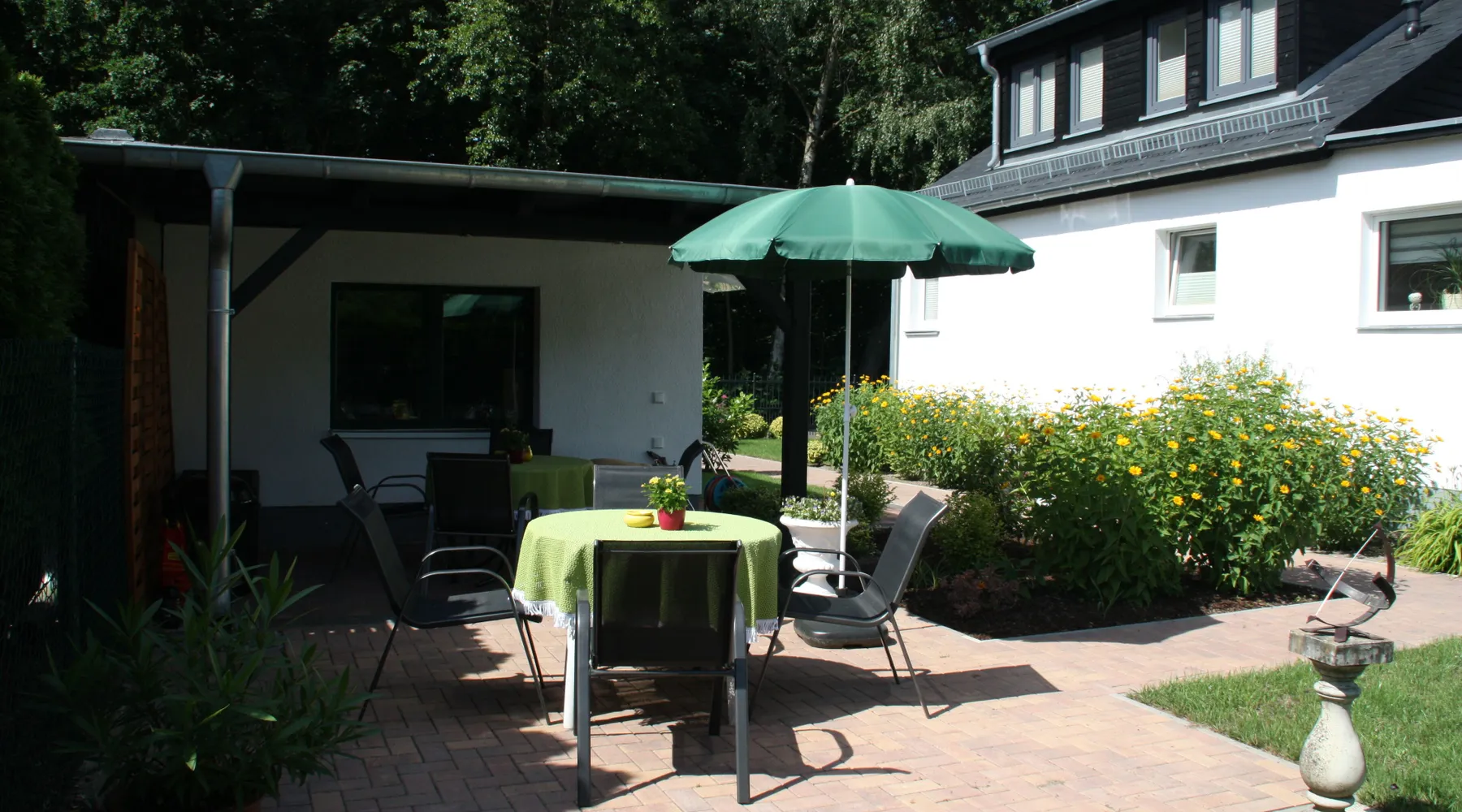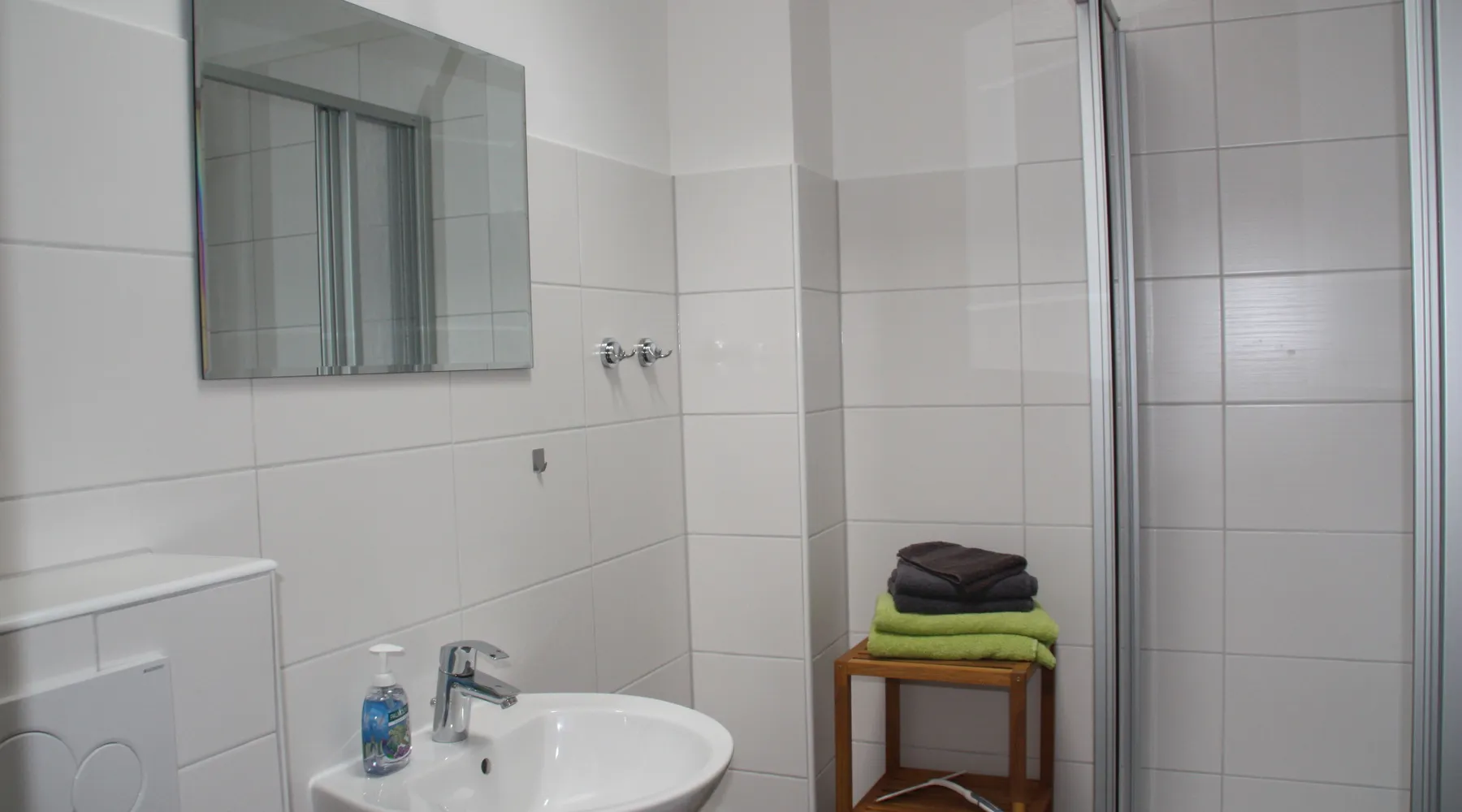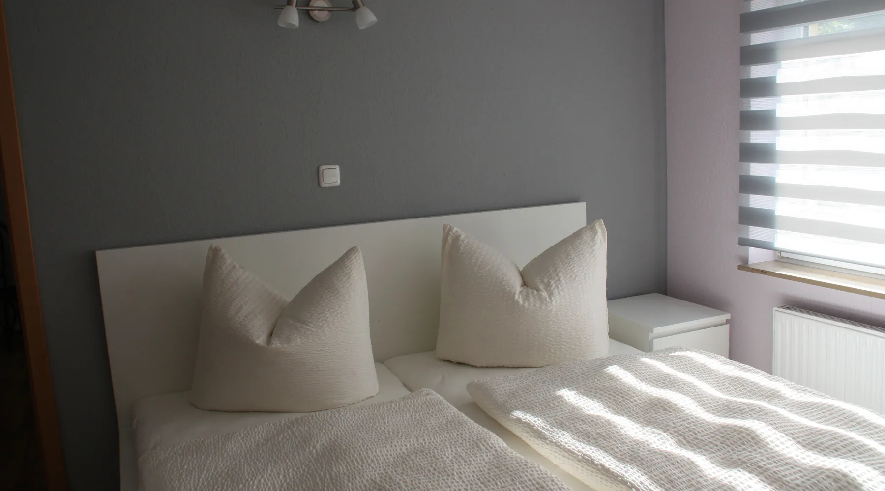Our apartment has a size of about 60 square meters and was completely renovated and refurbished in 2016. It can accommodate 4 people and has two bedrooms with double beds (foot end open). On request, an extra bed in the living room for another person is possible. A surcharge of € 25.00 is charged for the additional bed, which is not included in the rental price and is payable in cash on arrival. The living room is furnished with a comfortable corner couch, a dining area with a large dining table and satellite TV. The bathroom has a shower. In the well-equipped kitchen there is a stove with ceramic hob and oven, a fridge with freezer and sink, coffee machine, kettle and toaster. There are seating in the garden. A covered bicycle parking space is also available. The garden can be used, seating is available. A covered bicycle parking space is also available. It is about 4.5 km to the city center and can be easily reached by bus and train. The Rehbrücke train station can be reached on foot in about 15 minutes, from where you can take the regional train to Berlin. In the nearby Waldstadt Center you have good shopping opportunities. Here are some shops and a large supermarket.