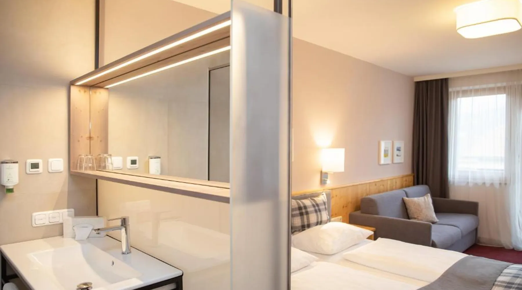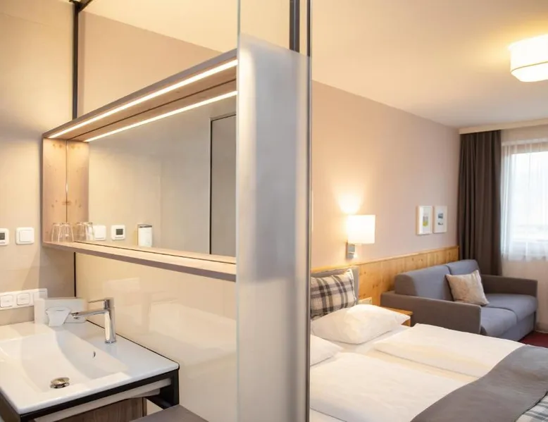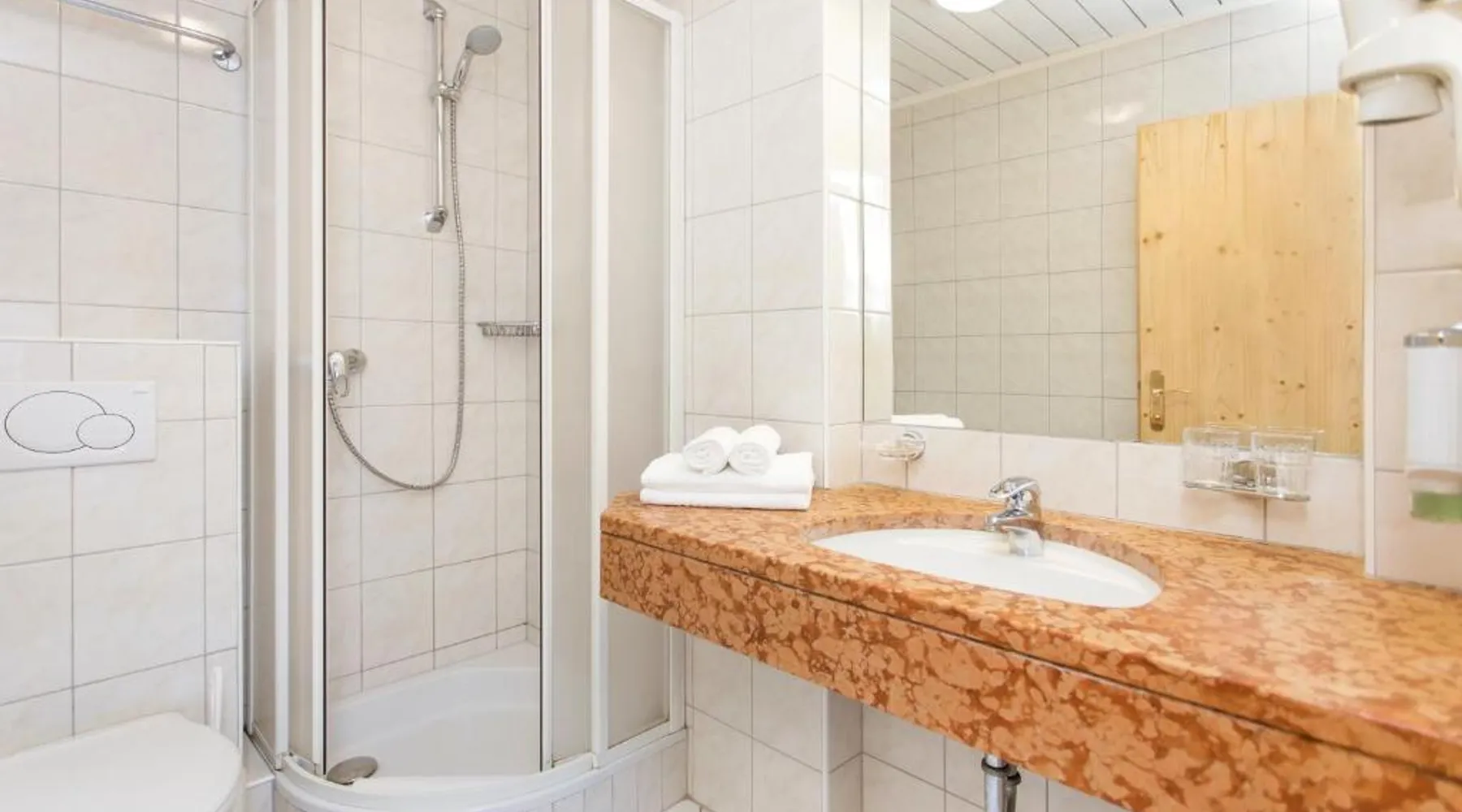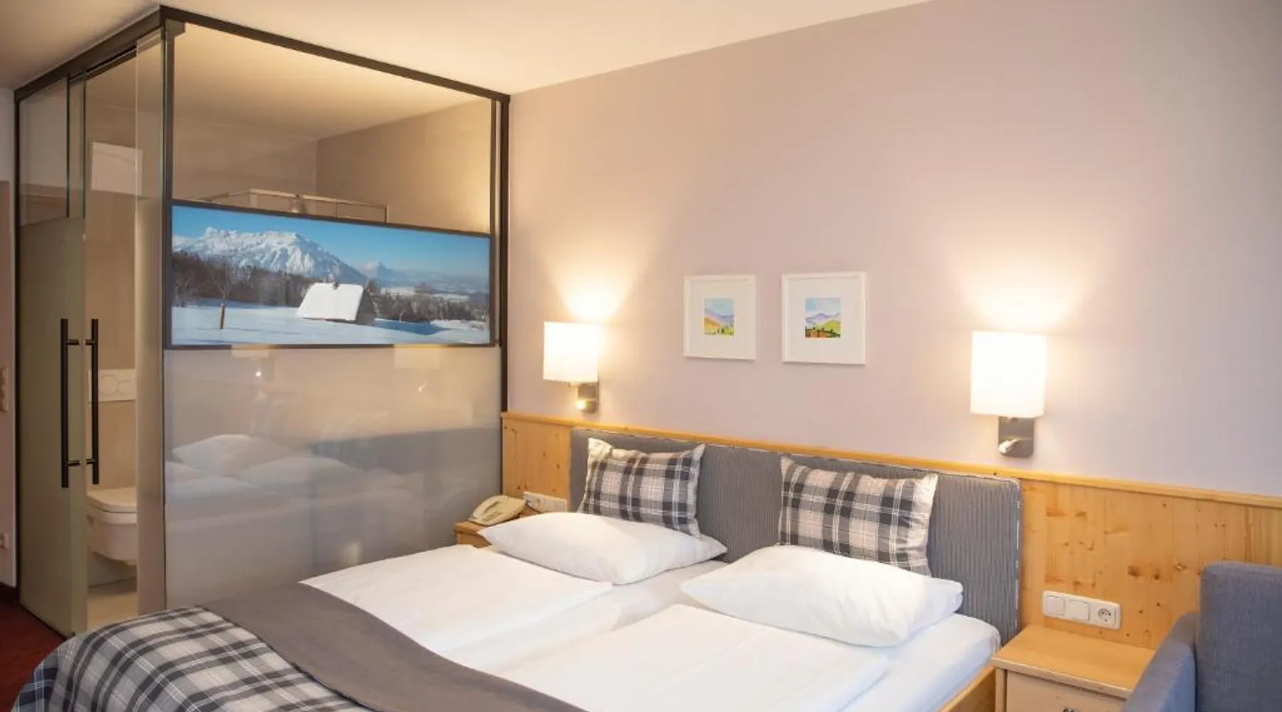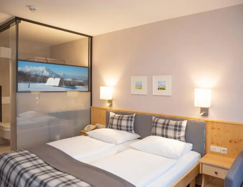 Located in Puch, a small village near Salzburg, Hotel Gasthof Zum Kirchenwirt offers an ideal location for sightseeing and enjoying the many activities available. This traditional, family-run hotel has comfortable rooms and a cozy restaurant. There is also a number of function rooms. The restaurant serves local and international dishes. The Kirchenwirt also features a wonderful spa area and offers free WLAN in the whole hotel. The surrounding area has several cycling and hiking trails leading through a beautiful natural landscape. In winter you can enjoy many different winter sports in the nearby ski regions. The city center of Salzburg is easy to reach by bus or train within 15 minutes. Room with satellite TV and a bathroom with a shower.