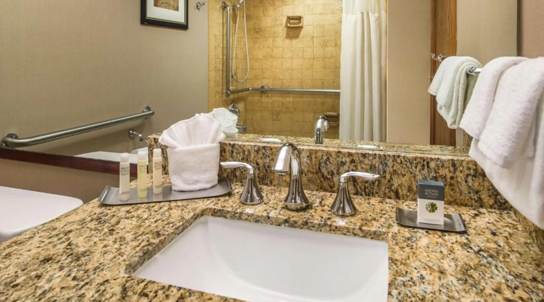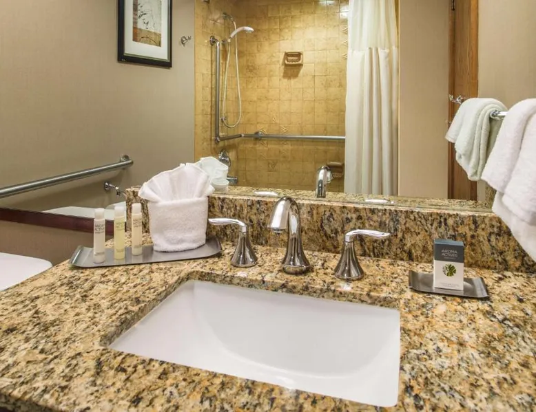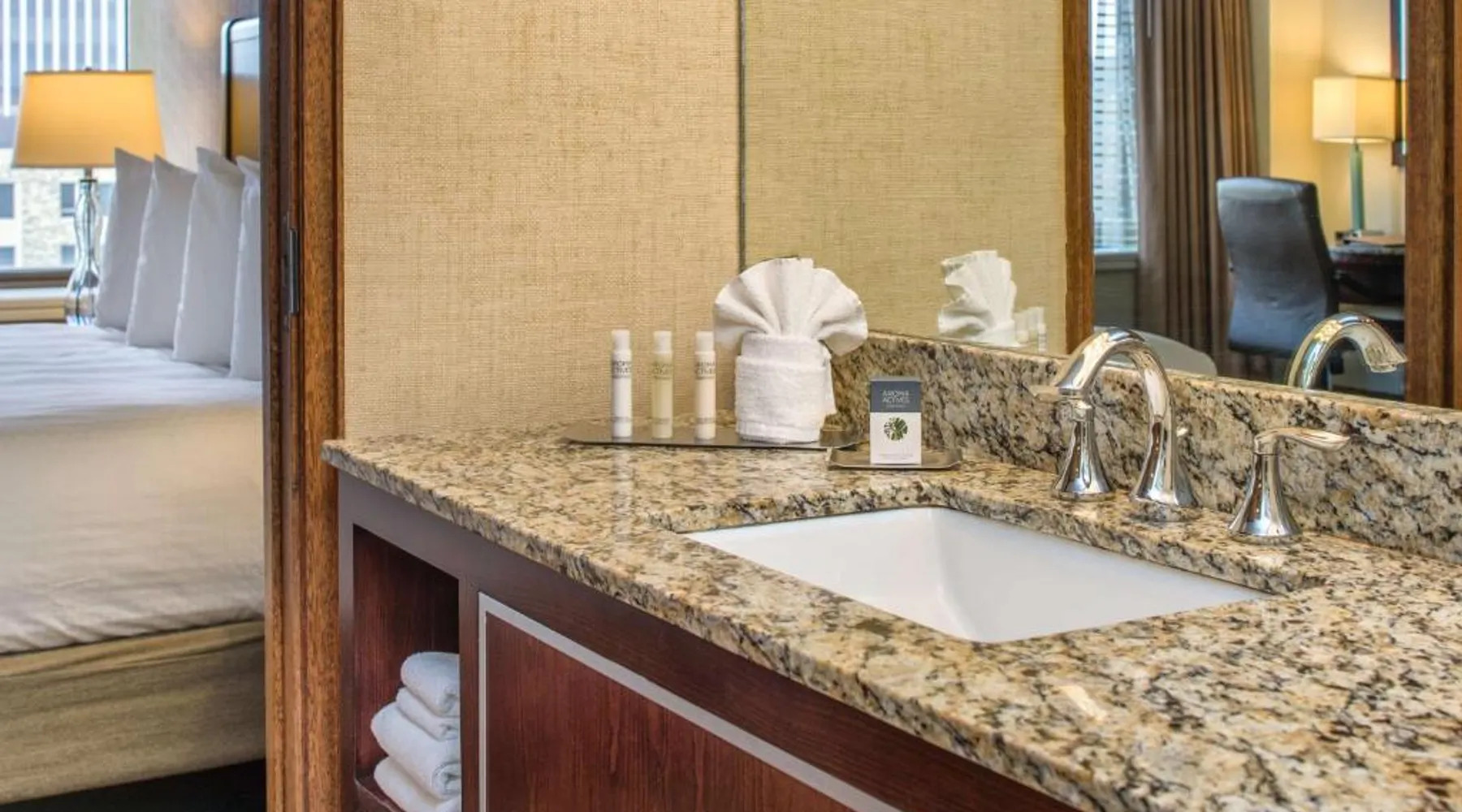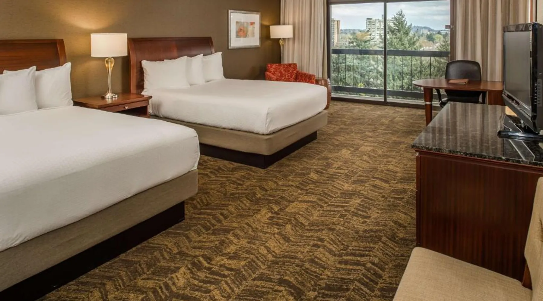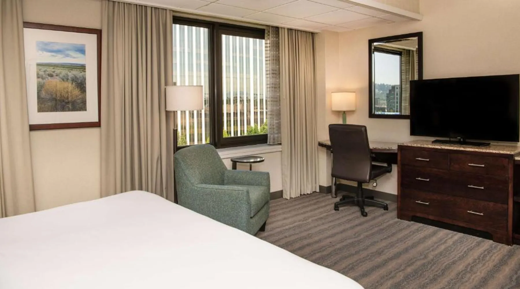 This environmentally friendly hotel features 2 on-site restaurants and an outdoor seasonal pool. Rooms offer a flat-screen cable TV. The Moda Center is 5 minutes’ drive away. The air-conditioned rooms at the DoubleTree by Hilton Portland feature a work desk. The private bathroom offers a hairdryer. Some rooms boast views of the Portland skyline or Mt. Hood. Gather Food and Drink offers small plates featuring local Northwest flavors. Multnomah Grille prides itself on fresh, local, organic, and sustainable ingredients. Guests can enjoy comfort food with many vegan and vegetarian options. Room service is available. A 24-hour fitness center and a 24-hour business center are both available for guest convenience at the Portland DoubleTree by Hilton. The Oregon Convention Center is 10 minutes’ walk from the hotel. And Lloyd Center Mall is across the street. Located on the 14th and 15th floors, this spacious suite features city views, a seating area with a parlor section, and a private bathroom with a spa bath. Connecting rooms can be booked separately to create a two-bedroom suite.