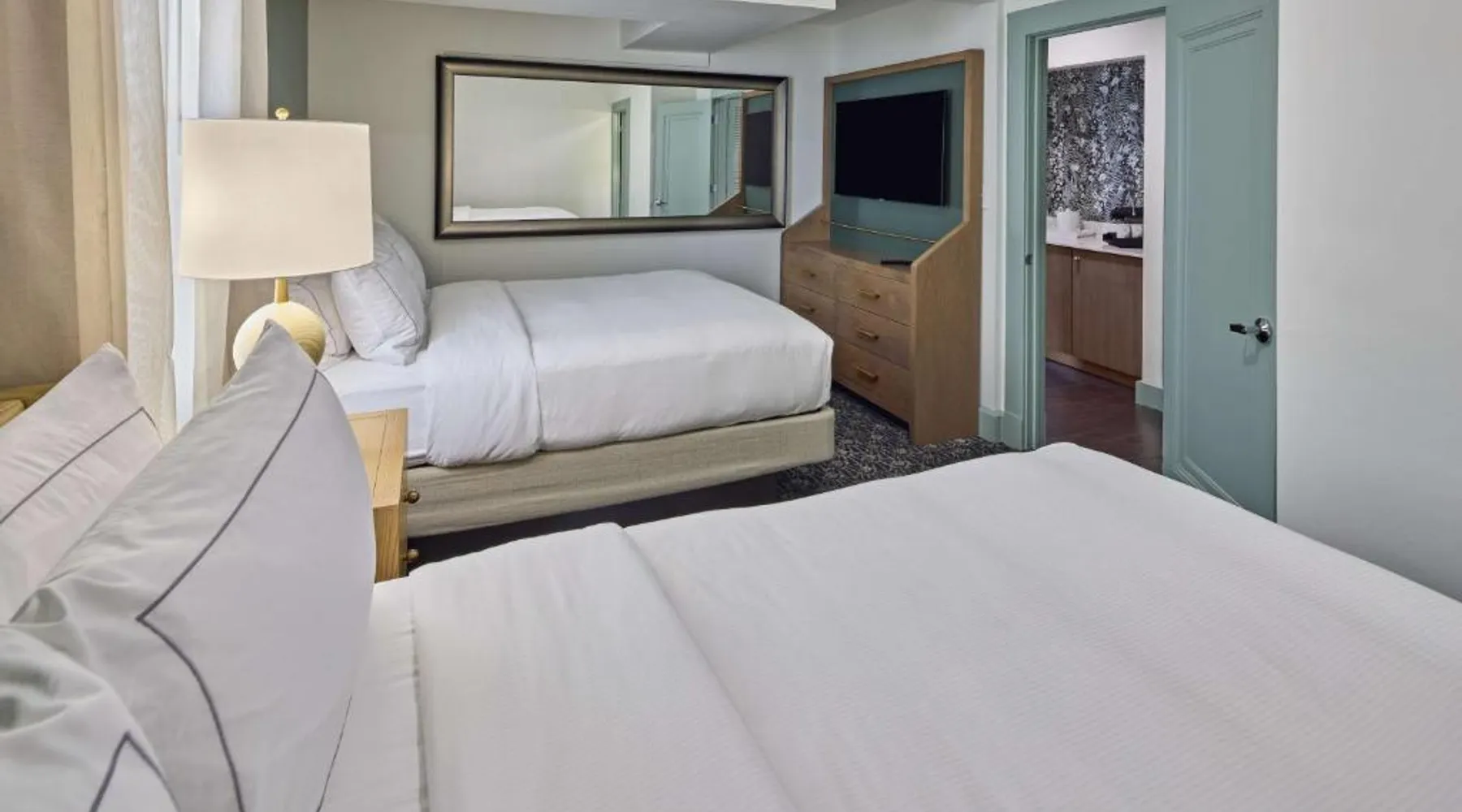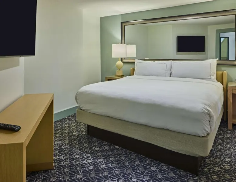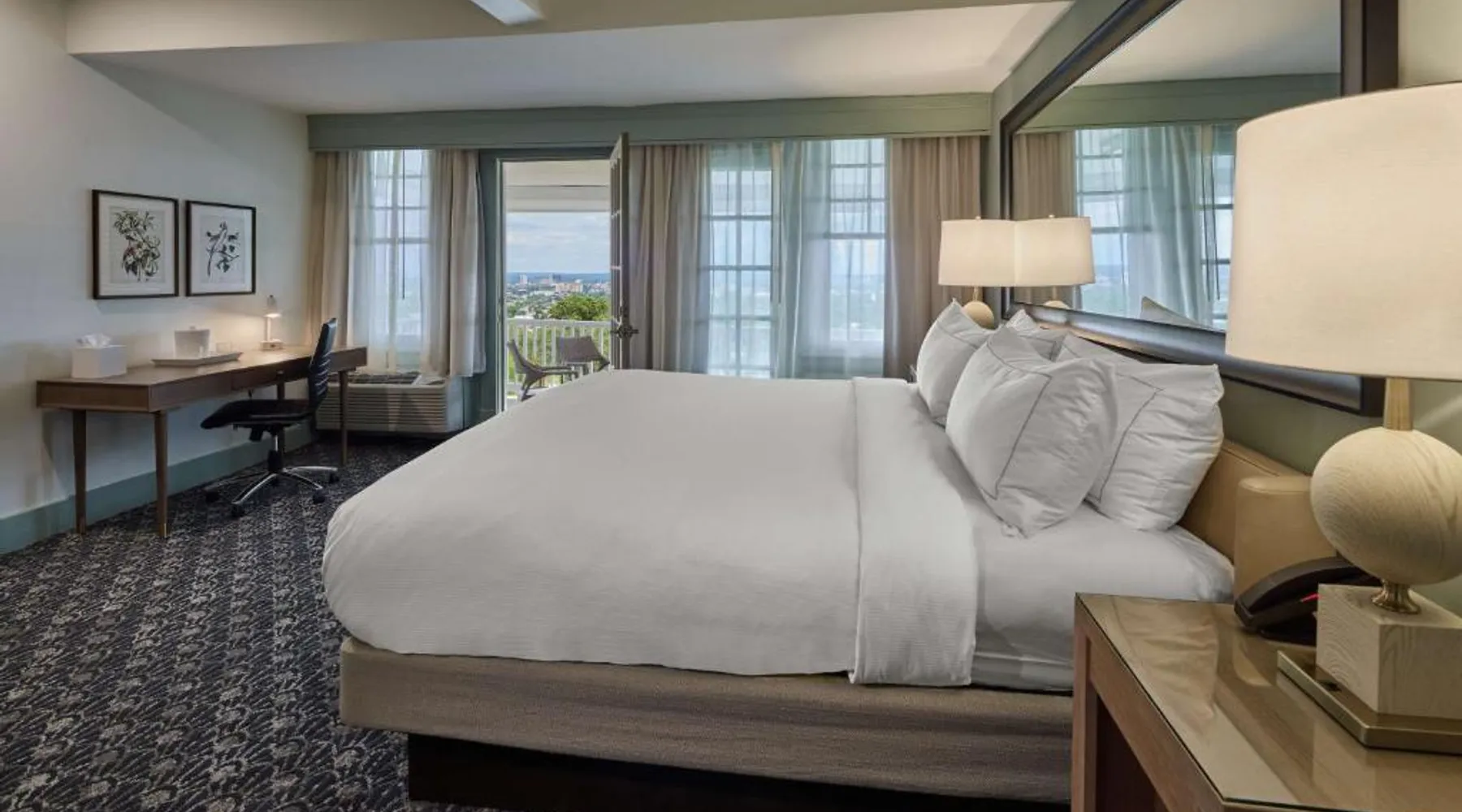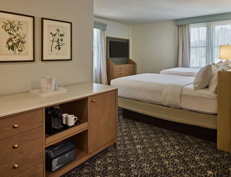 Comfortable Accommodations: The Partridge Inn Augusta, Curio Collection by Hilton in Augusta offers family rooms with air-conditioning, balconies, and free WiFi. Each room includes a work desk, refrigerator, and TV. Dining and Leisure: Guests can enjoy a traditional restaurant serving American cuisine with vegetarian, vegan, gluten-free, and dairy-free options. The bar provides a relaxing atmosphere for evening entertainment. Facilities and Services: The hotel features a fitness center, outdoor swimming pool, and a 24-hour front desk. Additional amenities include a business area, electric vehicle charging station, and paid on-site private parking. Location and Attractions: Located 8.7 mi from Augusta Regional Airport and 1.1 mi from Augusta State University, the property is near Augusta Golf Club (2.7 mi) and Augusta National Golf Club (3.7 mi). Guests appreciate the attentive staff and comfortable beds. This room features a 42-Inch flat-screen HD TV and a well-lit work area with an en-suite coffee-making facilities.