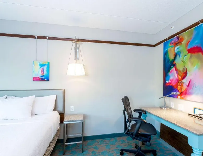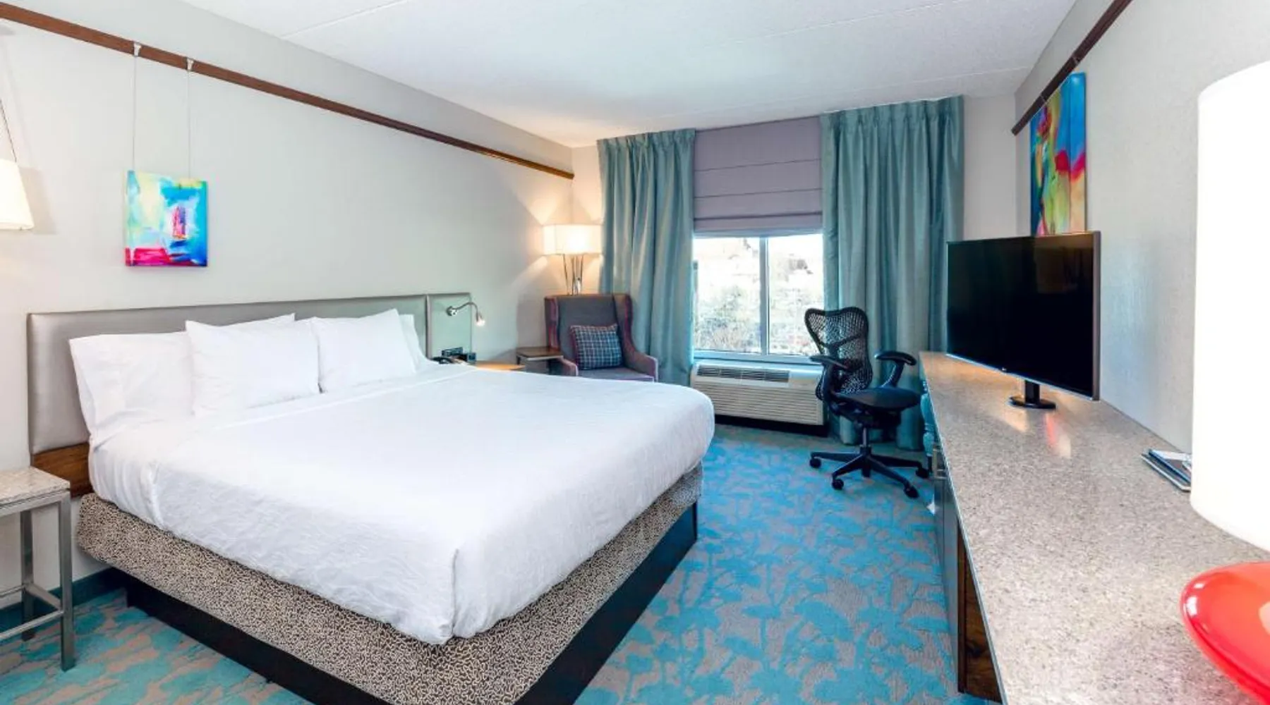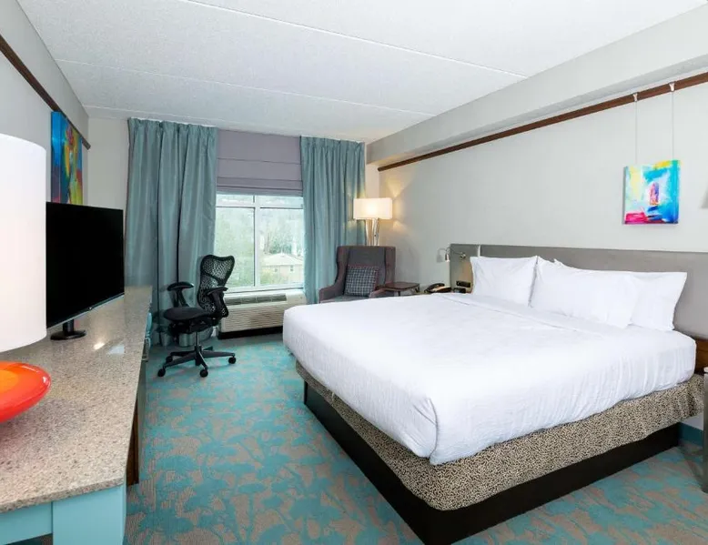 Featuring free WiFi throughout the property, Hilton Garden Inn Asheville Downtown is located in Asheville, 1.4 mi from Biltmore Square. Guests can enjoy the on-site bar. Each room at this hotel is air conditioned and is equipped with a flat-screen TV. Every room includes a private bathroom. For your comfort, you will find free toiletries and a hair dryer. There is a 24-hour front desk at the nonsmoking property. Biltmore Estate is 2.1 mi from HGI Asheville Downtown, while Innsbruck Mall is 0.6 mi away. The nearest airport is Asheville Regional Airport, 11 mi from Hilton Garden Inn Asheville Downtown. This room features a 43-inch TV, work desk, small refrigerator, coffee machine, and free WiFi.