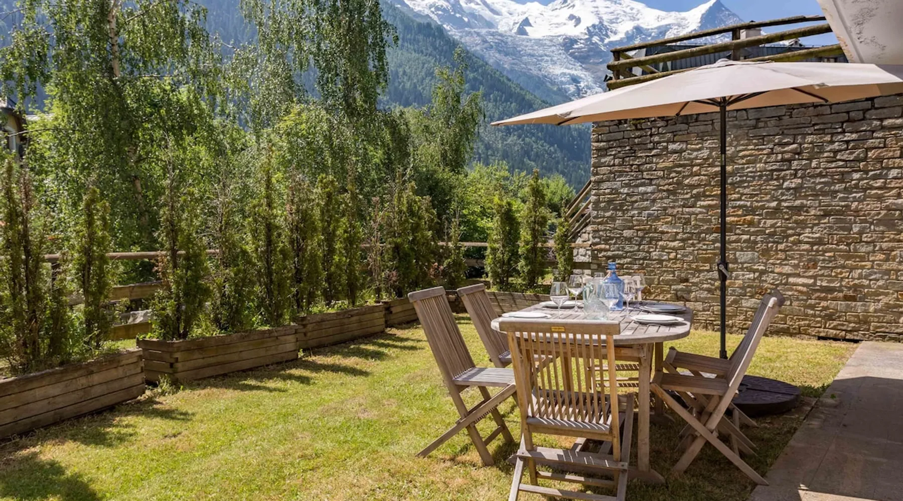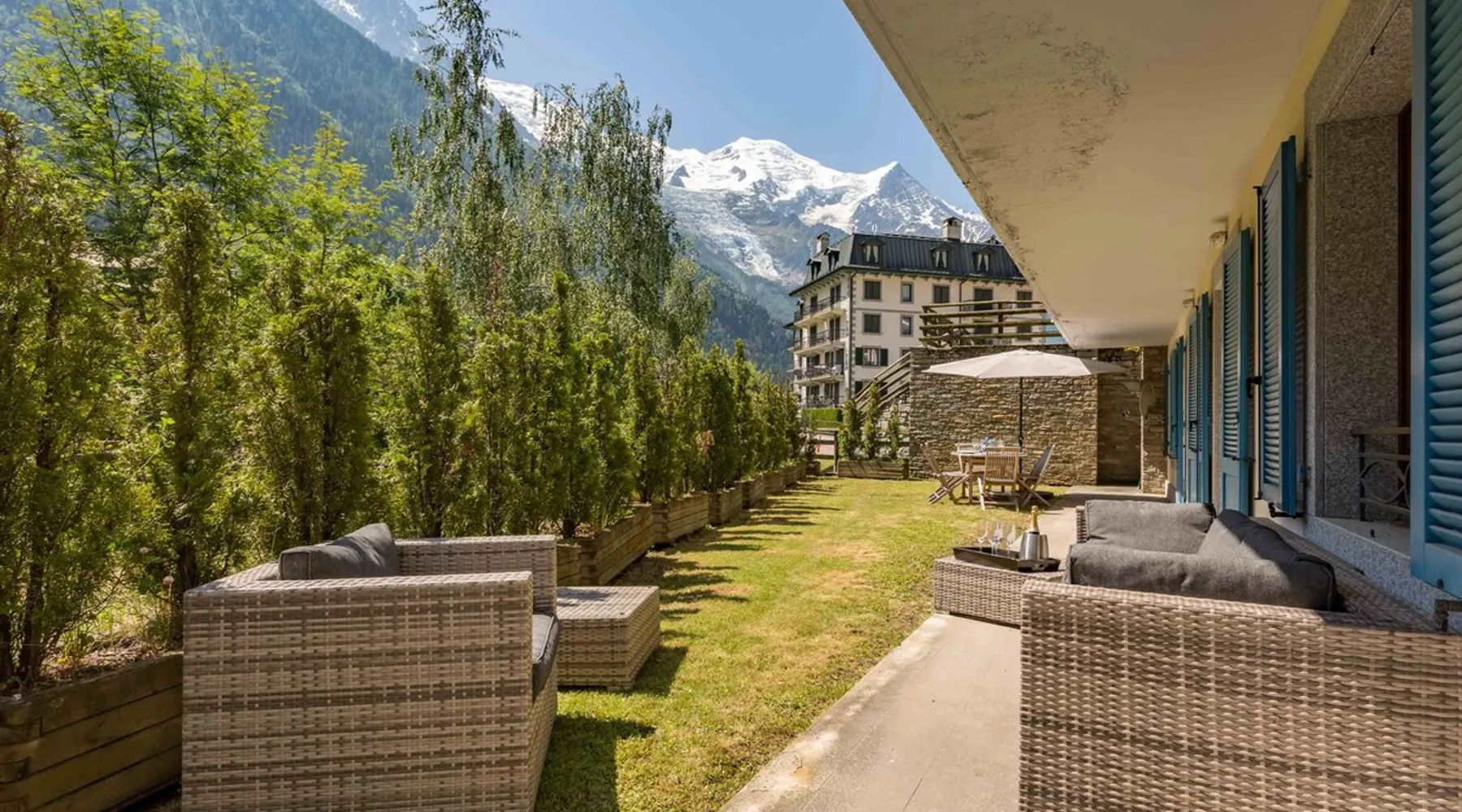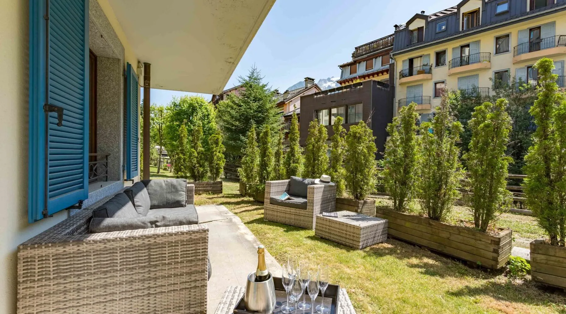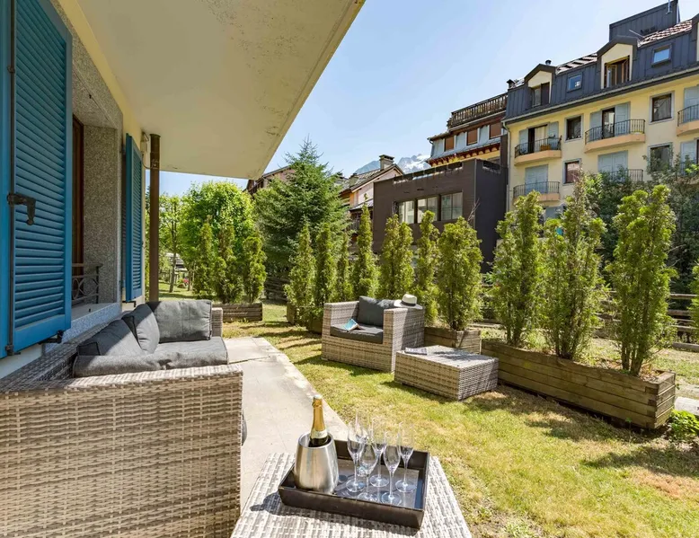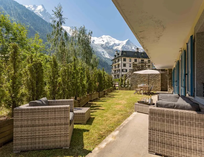 Pothecary apartment in Chamonix's town centre has 3 bedrooms / 2 bathroom, sleeps 6-8 & benefits from private garden overlooking the river with Mont Blanc views, parking, Fibre internet, smart TV. The Pothecary apartment in downtown Chamonix has 3 bedrooms, 2 bathrooms for 6 à 8 people, with private gardené, view of Mont Blanc, parking, fiber optic, TV, DVD and chaî English nes. See more info or click 'Book online' for réserver. The space Located in possibly the most enviable location in Chamonix, with garden overlooking the river Arve and facing Mont Blanc, and in the middle of all the shops, restaurants and bars, Pothecary apartment is one of our most popular apartments in Chamonix. It is is extremely spacious at 120 sqm, with a huge living room including 3 full size sofas and two matching armchairs, a newly installed modern kitchen, an entertainment area with 43 inch flatscreen TV (Sky TV, surround sound, DVD player etc) and an ipod dock, Fibre internet access and a second TV and DVD player too. Pothecary apartment has 3 good sized bedrooms (one double, one twin / king bedroom and a 3rd twin bedroom ) as well as one of the sofas in the living room which converts into a sofabed in the living room, therefore sleeping 8 people very comfortably. The sunny, private garden of this apartment in Chamonix backs onto the river and has table and chairs and splendid views of Mont Blanc. If you want to be slap bang in the middle of town but have your own private terrace, and secure parking, plus stay in a truly spacious accommodation, then Pothecary apartment is the perfect retreat for you. Key Features 120 sqm Sleeps 6-8 1 double bedroom with double bed and wardrobes, and patio doors leading out to the garden & views of river 2nd bedroom with zip & link beds (can be twin or king bed) 3rd twin bedroom Family bathroom comprising bath with shower & WC 2nd bathroom with shower Separate WC Open plan living room with 3 sofas & 2 large armchairs Double sofa bed 2 TV's (Sky and IPTV with multiple language channels) Fibre internet Kitchen with oven, microwave, dishwasher & Nespresso coffee machine Dining table and 6 chairs Patio doors from living room leading out to the garden / terrace Washing machine Ski locker Underground parking available Other things to note Check-in times Normal check-in time is from 5pm, if you are arriving after 10pm please let us know in advance. Check-out times Normal check-out time is by 10am. Flexible check-in / check-out times If these times don’t suit your holiday arrangements, you can book our flexible early check-in / late check-out service (subject to availability). This must be booked with us in advance, and may be subject to a fee of 40€ for apartments and 80€ for chalets so that we can prepare the property in time. Late check-in after hours Check-in is possible until midnight, but please try to arrive before 9pm. For those arriving after 9pm there is a 40€ late check-in fee, which must be paid on arrival at your Chamonix Accommodation. Children Travel cots & high chairs / booster seats can be hired through us for 35€ to include cot mattress, bed linen and a towel. You can add this to your booking at the time of booking. What's included One set of bed linen and towels is provided at your accommodation for your stay. If you are staying for 2 weeks or more you will have a mid-stay linen change. Tourist guest cards will be left in the property for you on arrival to give you free travel on the local train and buses and more. End of stay cleaning is included at your accommodation, but we do expect you to follow our check out instructions on departure. If you prefer you can book an additional cleaning service. Cards accepted Chamonix All Year Resort Shop Order everything you need for your Chamonix holiday now via our Chamonix Resort Shop: Geneva Airport transfers Chamonix lift passes Discounted ski hire Additional Accommodation Details Pets Pets are welcome at this property but permission must be obtained in advance and a charge will be applied at time of booking. The additional fee is 40€. Bike storage Bikes can be stored in the underground parking area on the private parking space allocated to the apartment. Registration Details 74056002144ZA