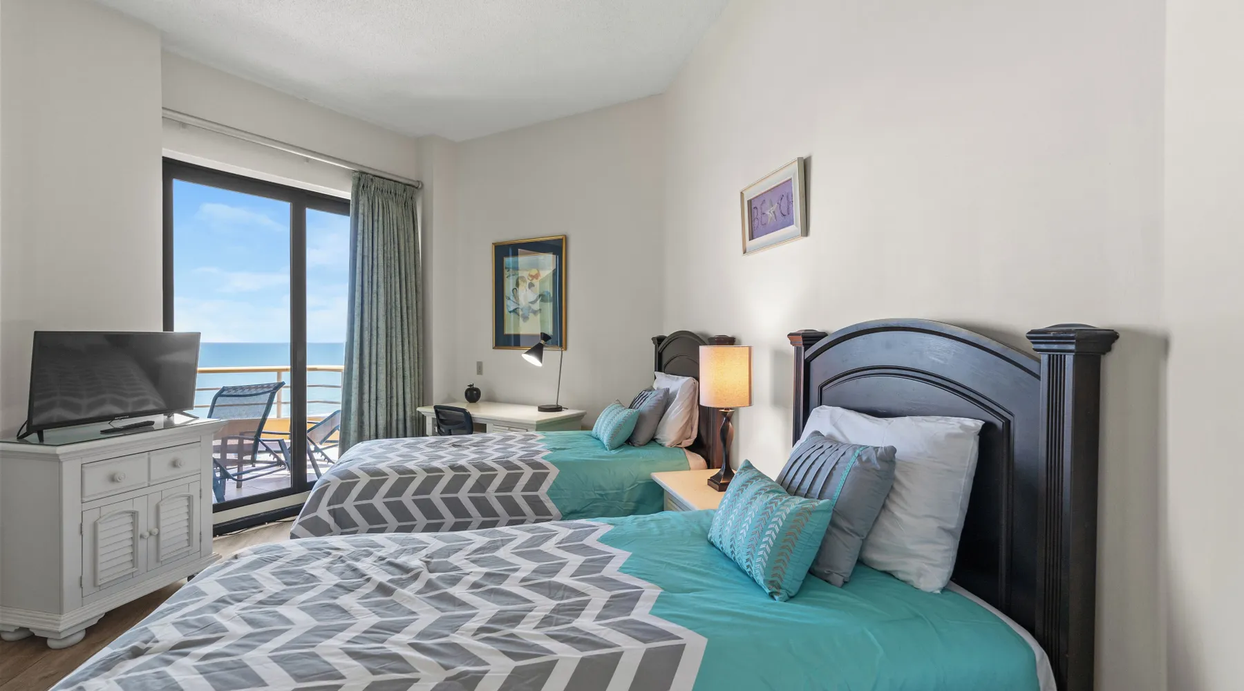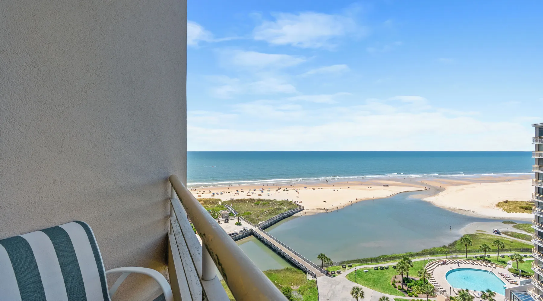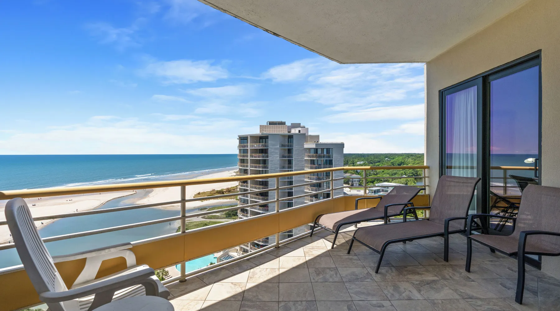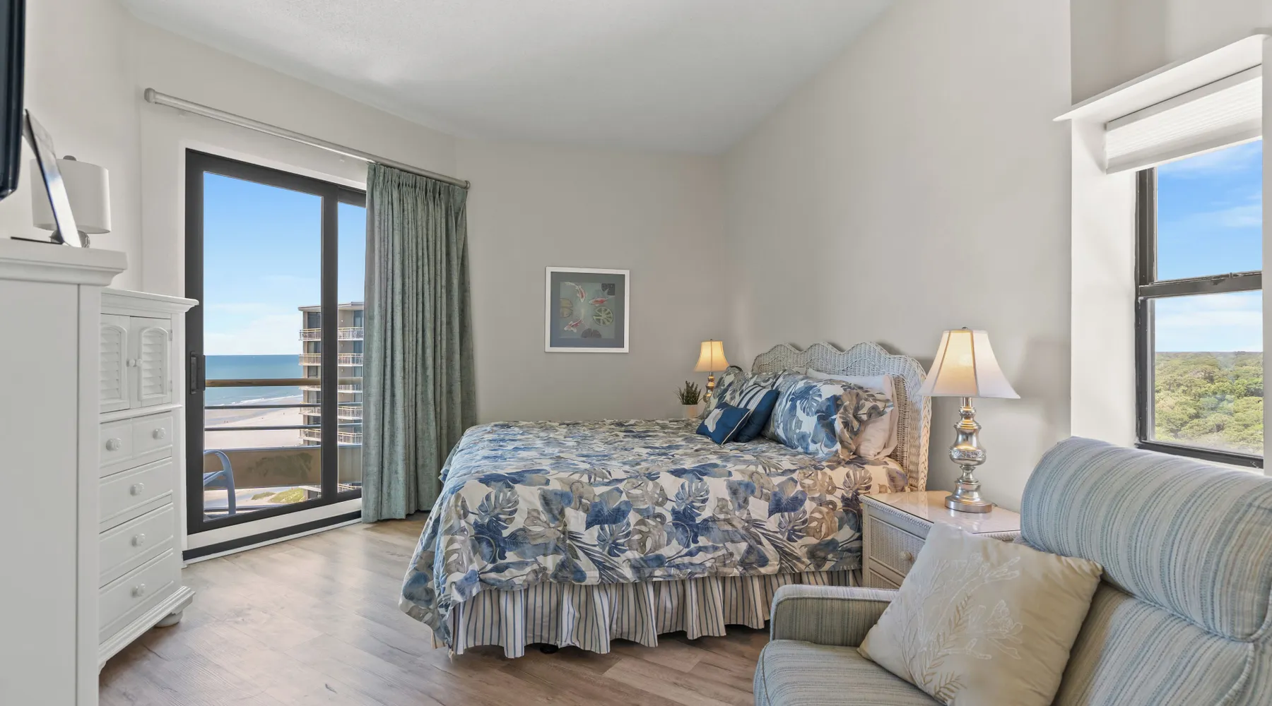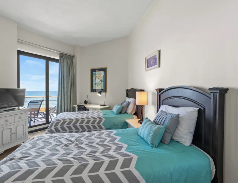 This spacious 2 bedroom, 2 bathroom penthouse condo has wonderful views of the ocean from your penthouse level, private oceanfront balcony. This unit in the North Tower of Ocean Creek Resort can accommodate a total of 4 guests with 1 king in the master bedroom and 2 twins in the 2nd bedroom. The unit features all new flooring and furniture, a washer & dryer, fully equipped kitchen, free Wi-Fi & cable TV. Ocean Creek Resort is a beautiful oceanfront property located on the north end of Myrtle Beach situated directly across from Barefoot Landing shopping and entertainment center. Located on 57-acres, this Myrtle Beach resort features 24-hour gated security, beautiful grounds perfect for biking and walking, multiple pools, on-site dining and more. Enjoy the outdoors at the on-site tennis court (additional charge), putting green, beach volleyball court and children’s playground. Known for its spectacular views, the towers at Ocean Creek Resort provides amazing views of the sunset as it dips beyond the dunes just past the natural creek that rises and falls with the tide. Free Fun Included Every Day! To enhance your vacation experience, North Beach Vacations has partnered with Xplorie, which means your stay includes over $250.00 in complimentary activities, per day. Just for booking with us, you’ll receive free tickets, every day of your stay to top activities like golfing, water parks, dinner shows, and more!!! ***ONLY VALID FOR SHORT TERM STAYS 27 NIGHTS OR LESS*** NO MOTORCYCLES, BOATS, RV'S, GOLF CARTS OR TRAILERS ALLOWED ONSITE! WE DO OFFER FREE PARKING AT OUR LOCAL RENTAL OFFICE IF YOU PLAN TO BRING A MOTORCYCLES, BOAT, RV, GOLF CART, TRAILER AND/OR EXCEED THE NUMBER OF VEHICLES PERMITTED PER UNIT. PARK AT YOUR OWN RISK. NO SMOKING IN UNIT OR ON BALCONY! NO PETS! 25 YEAR AGE REQUIRMENT! FOR ALL NON-FAMILY GROUPS, EVERYONE MUST MEET THIS AGE REQUIRMENT AT THE TIME OF CHECK-IN!